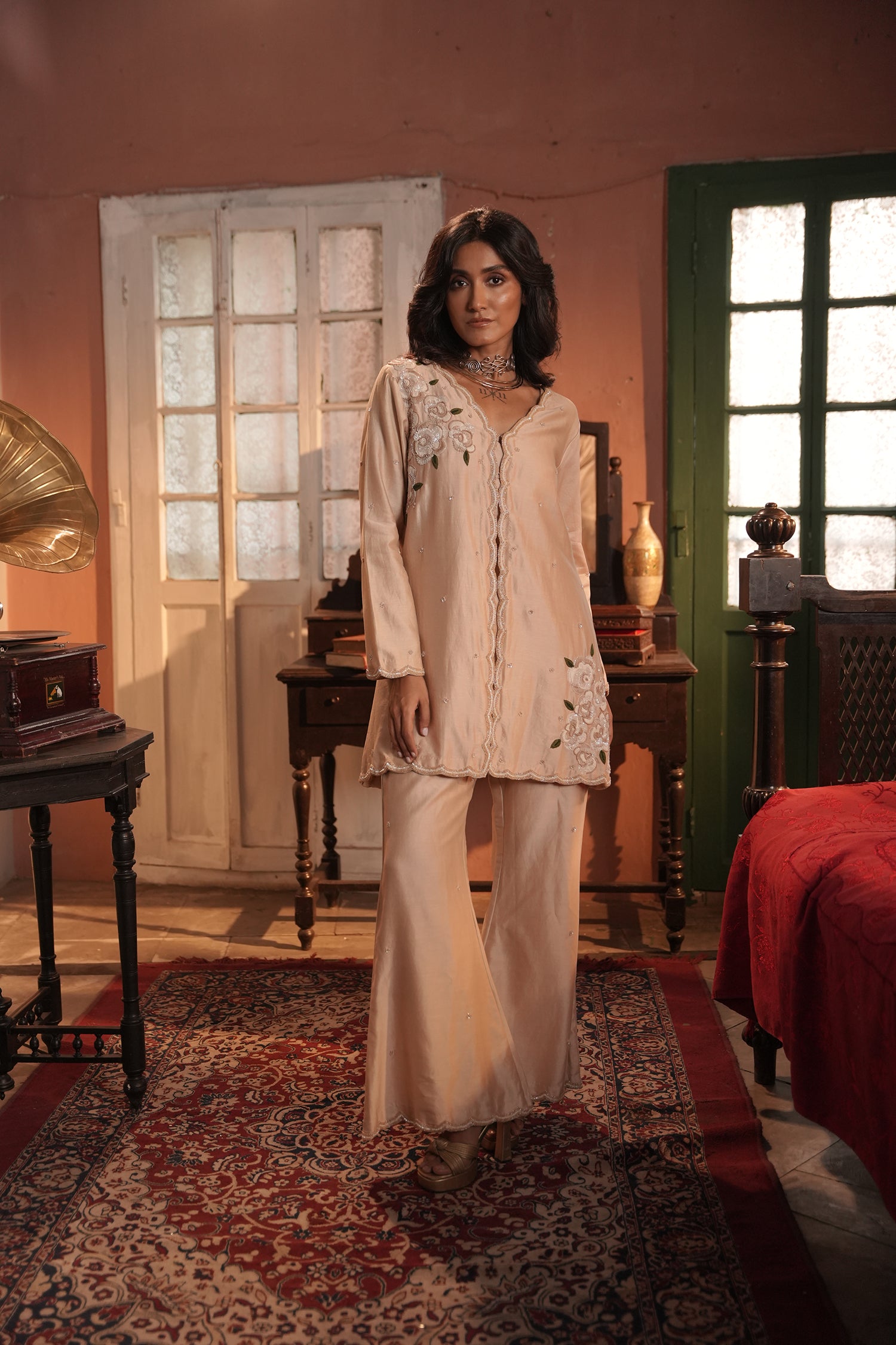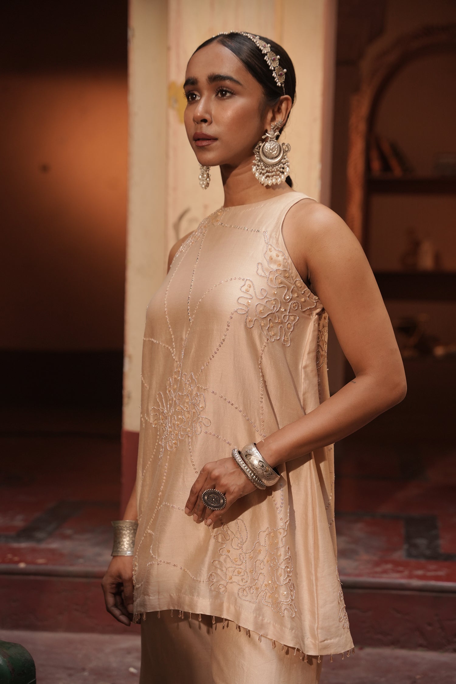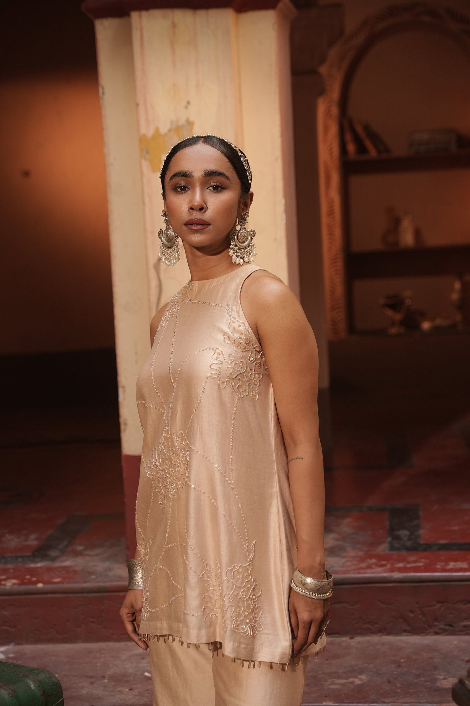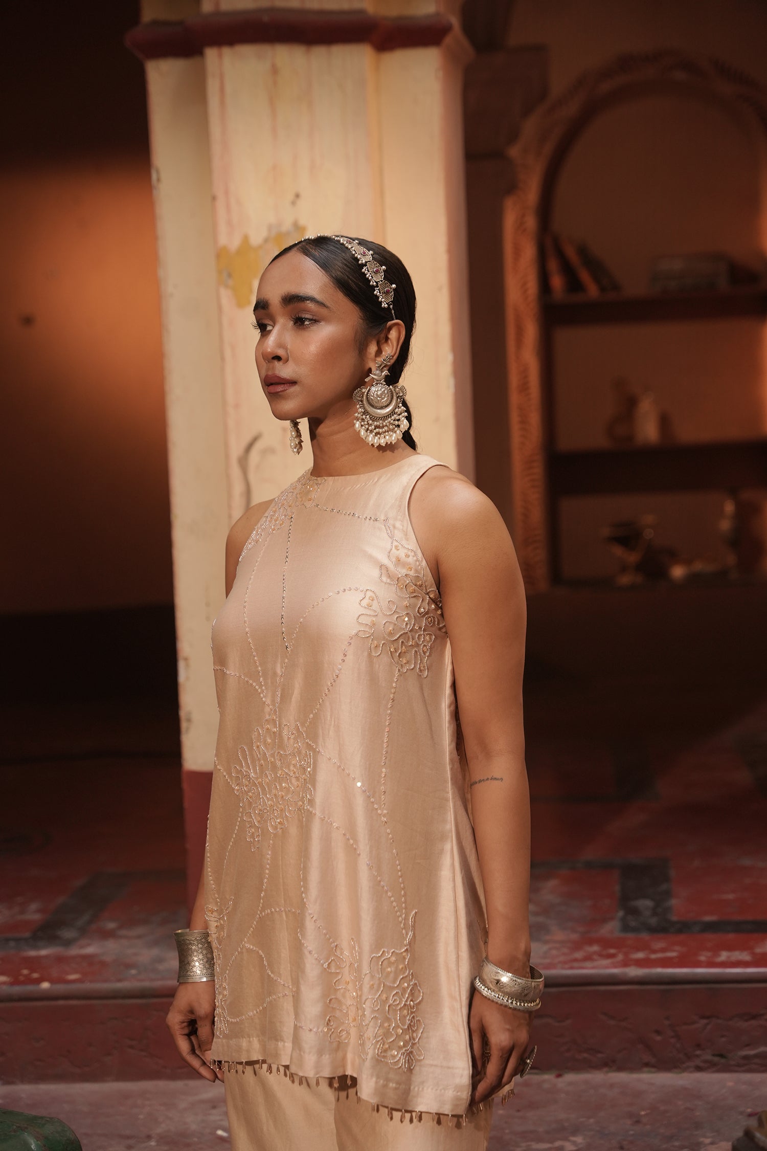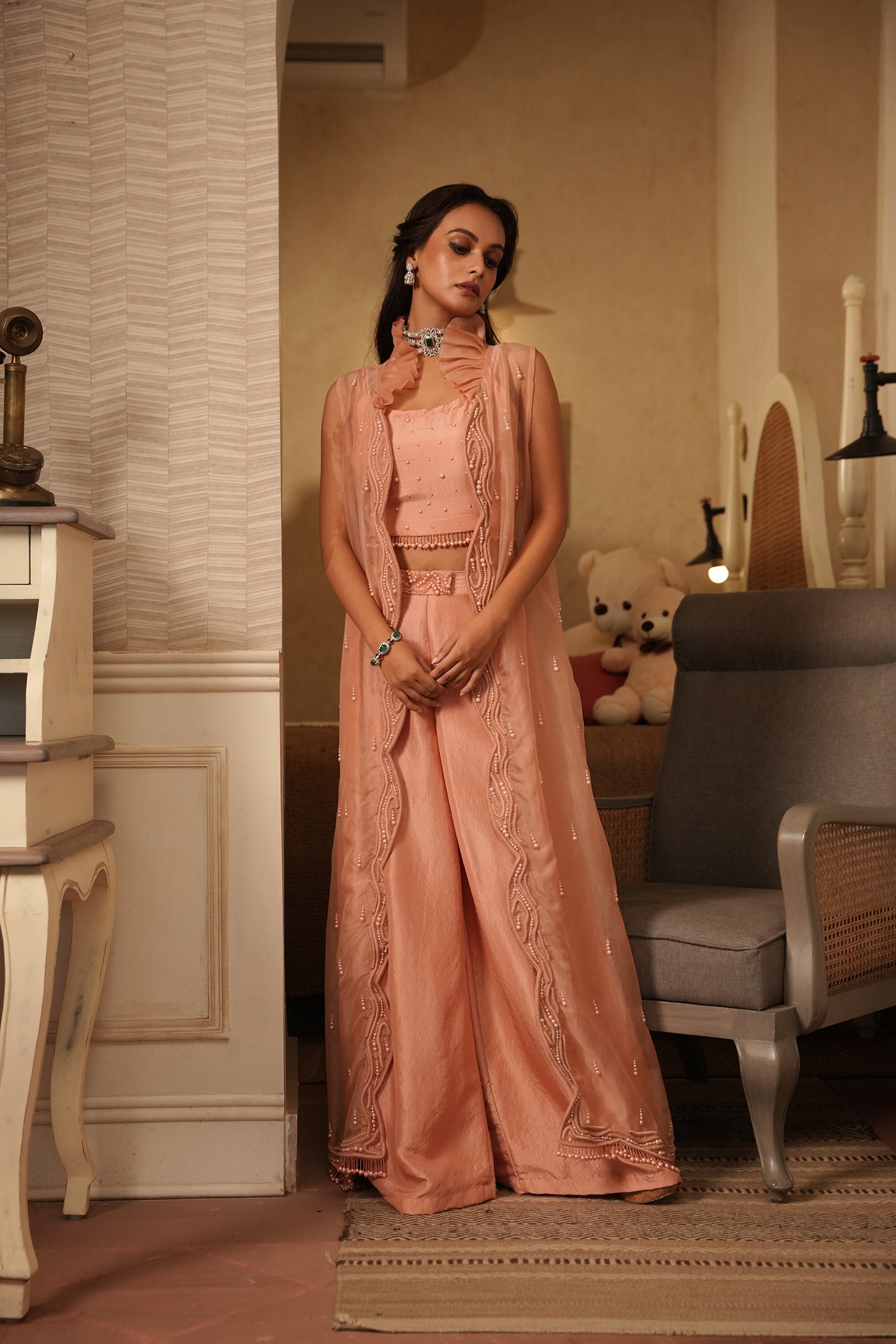 Valiqa Nude Chanderi Jacket With Bustier And Pant