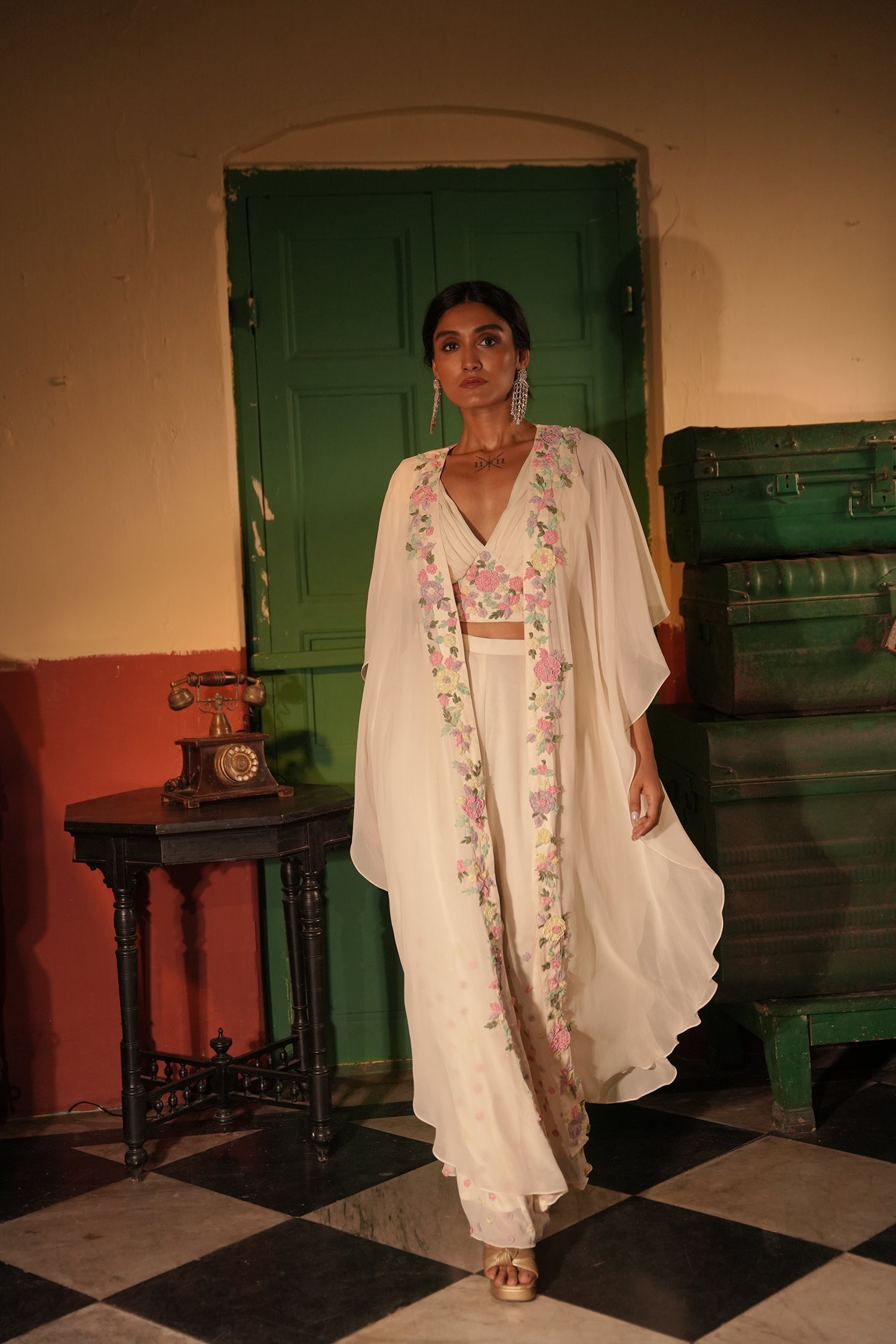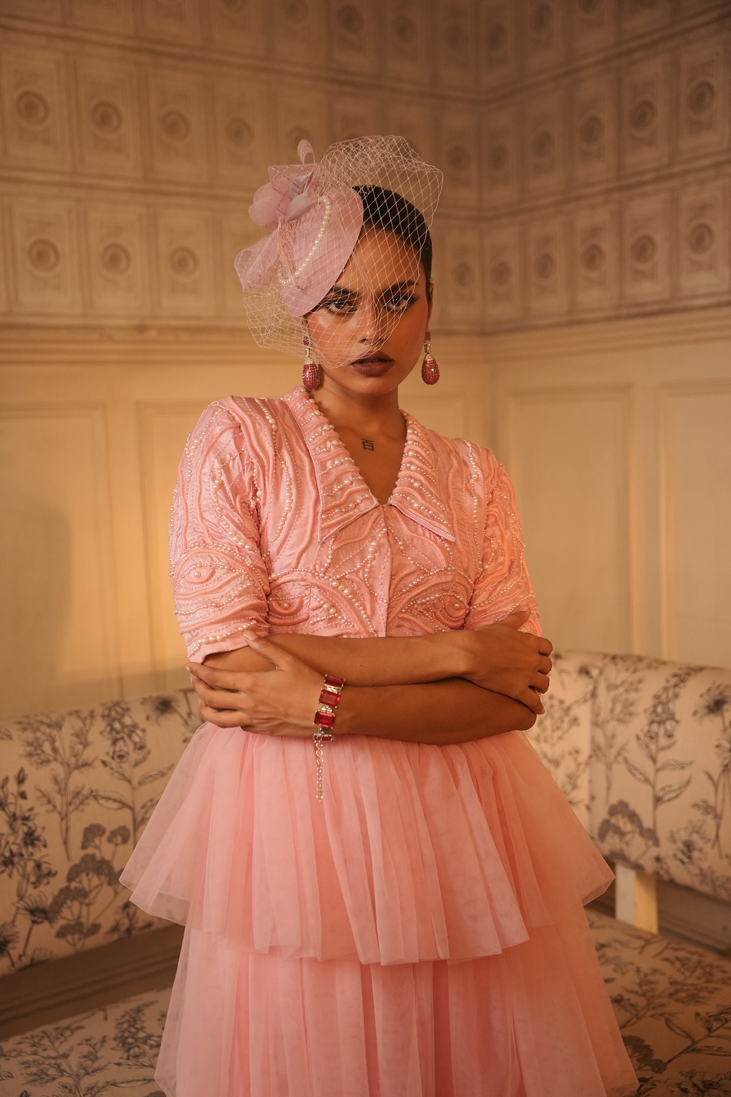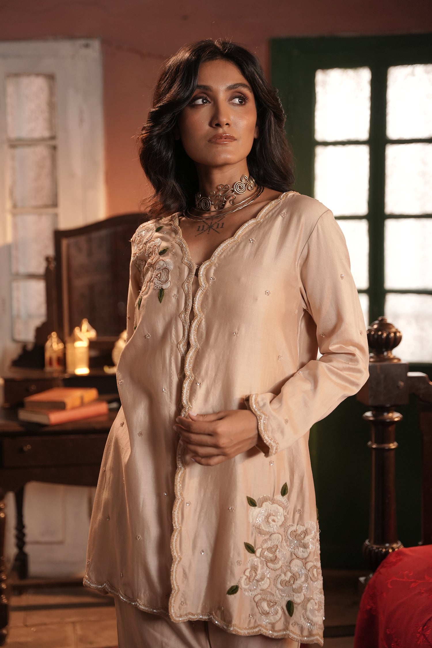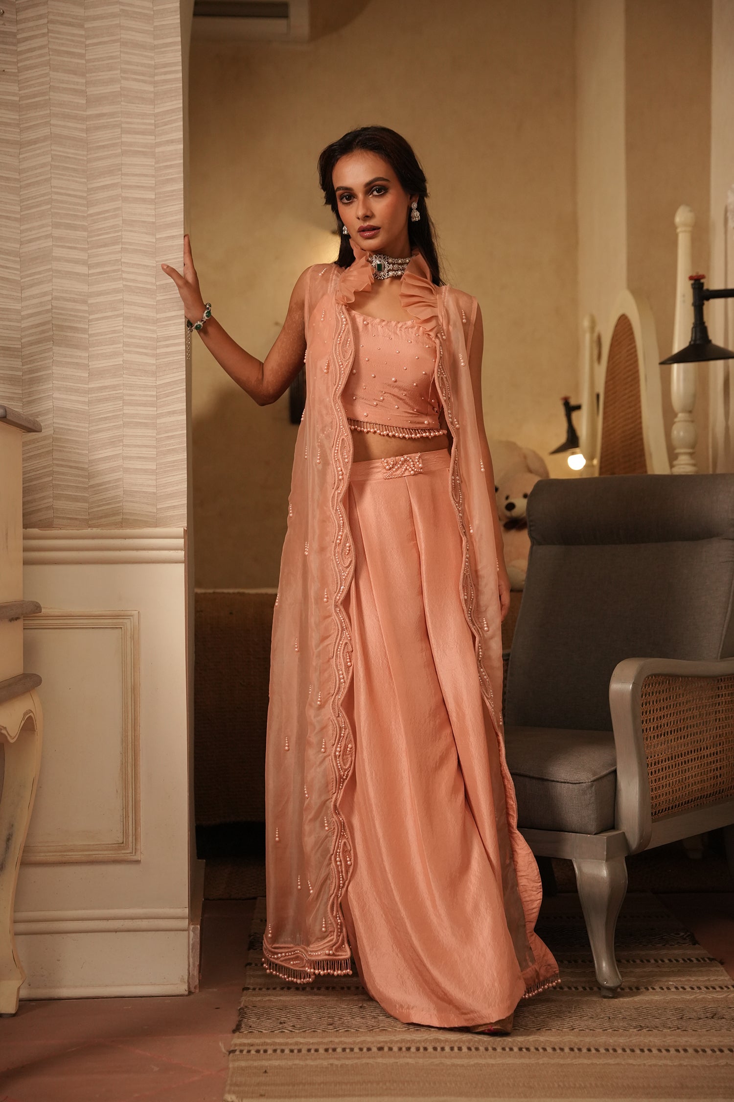 Valiqa Nude Chanderi Jacket With Bustier And Pant