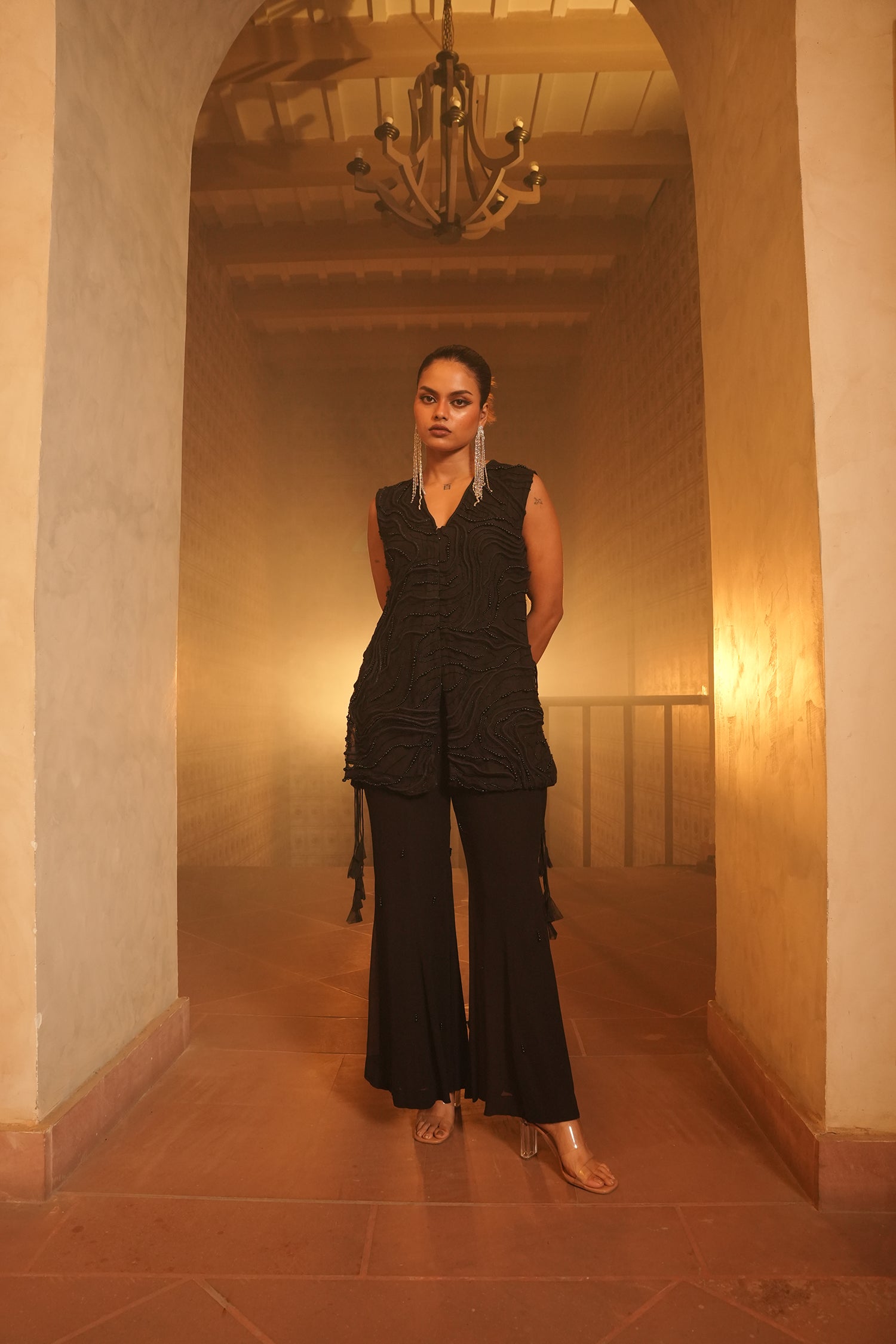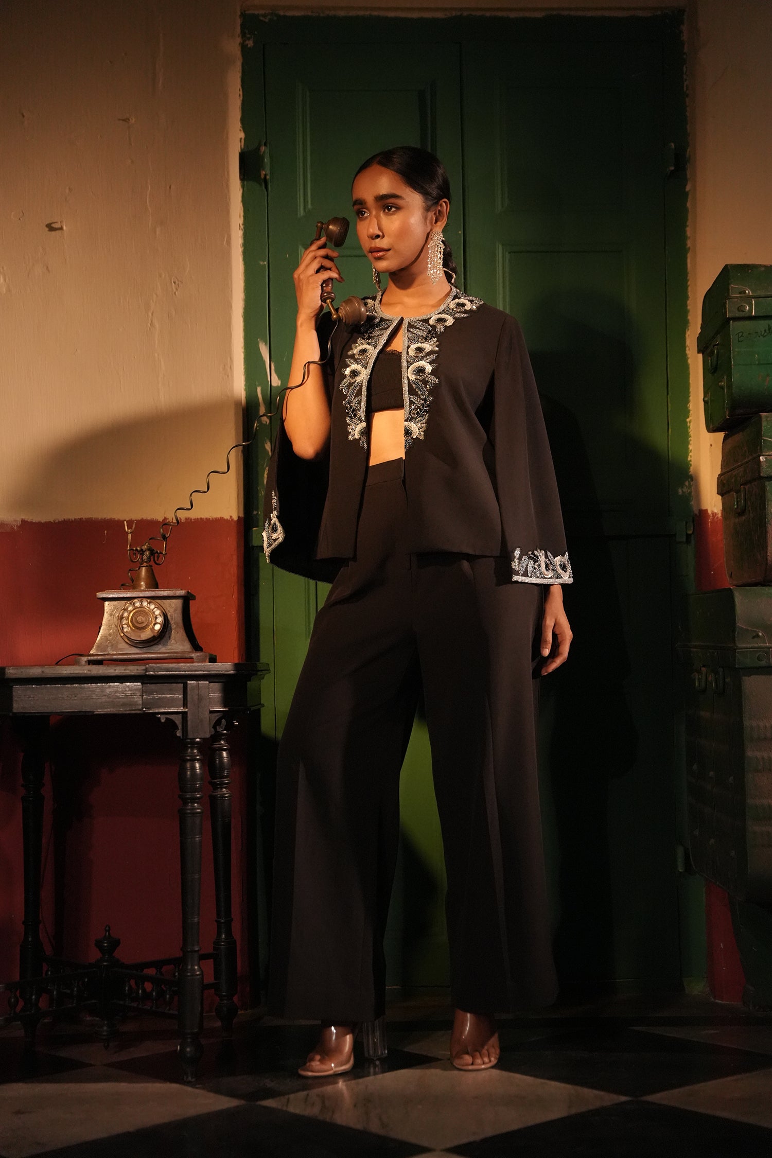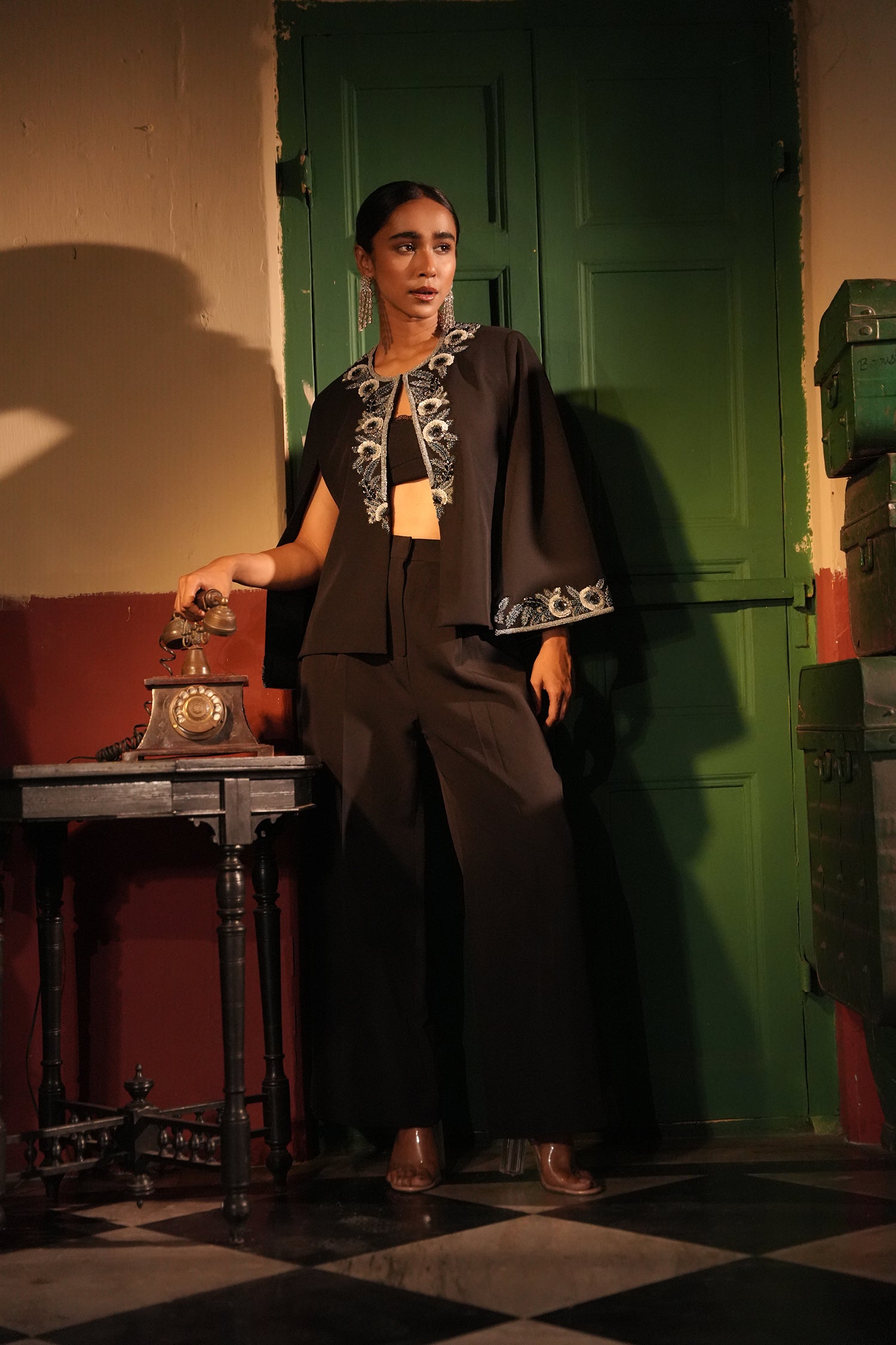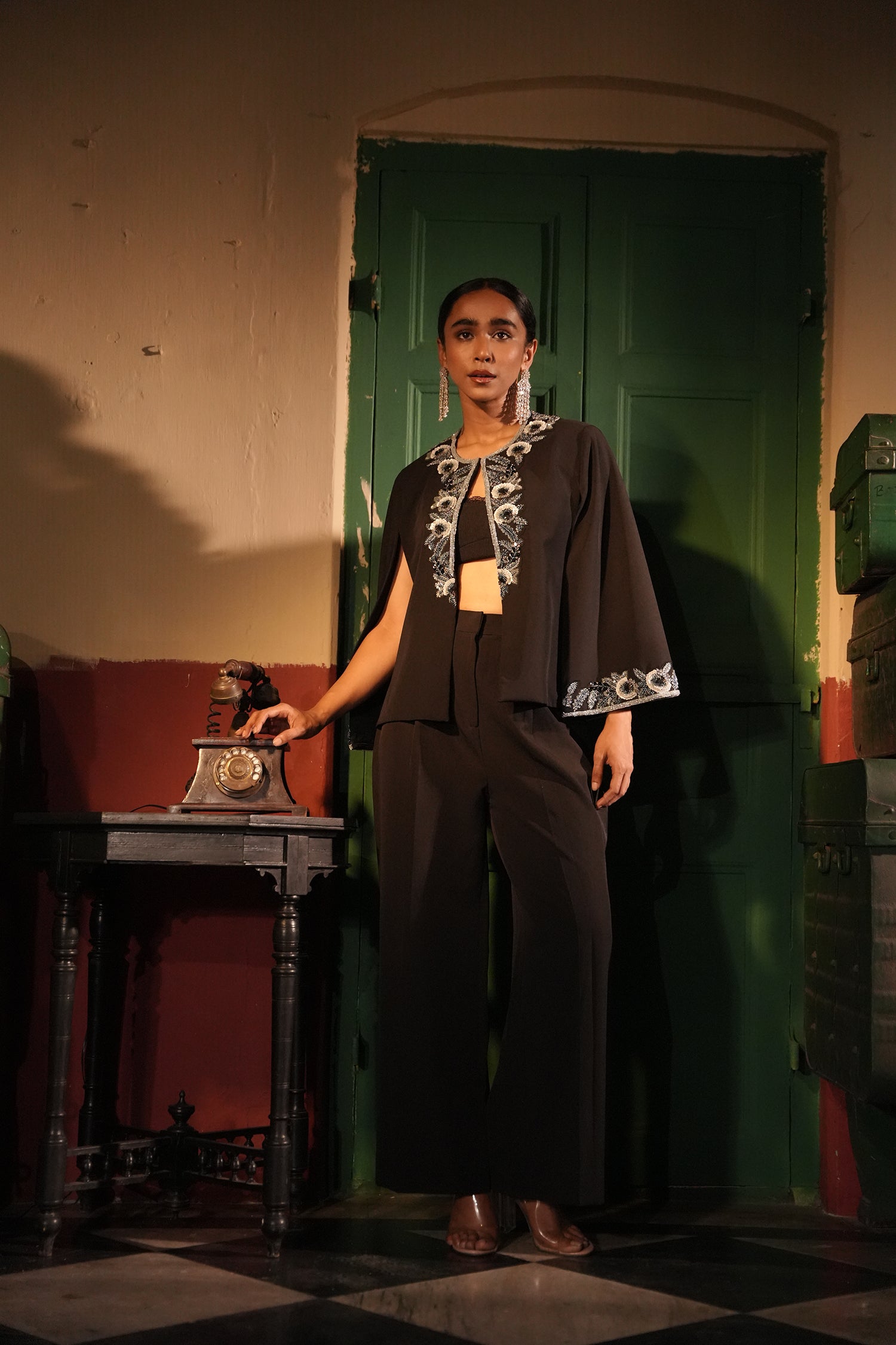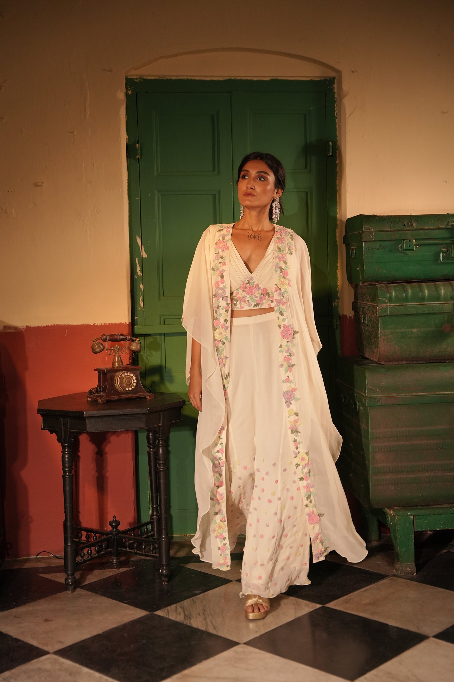 Valiqa Nude Chanderi Jacket With Bustier And Pant