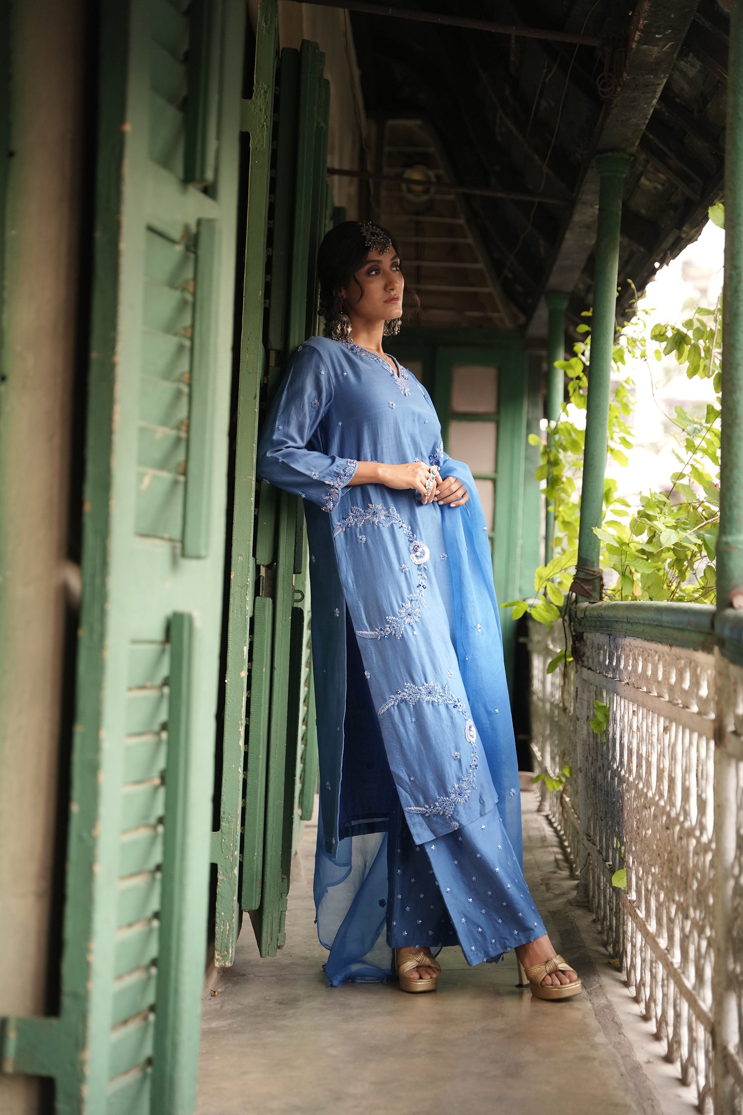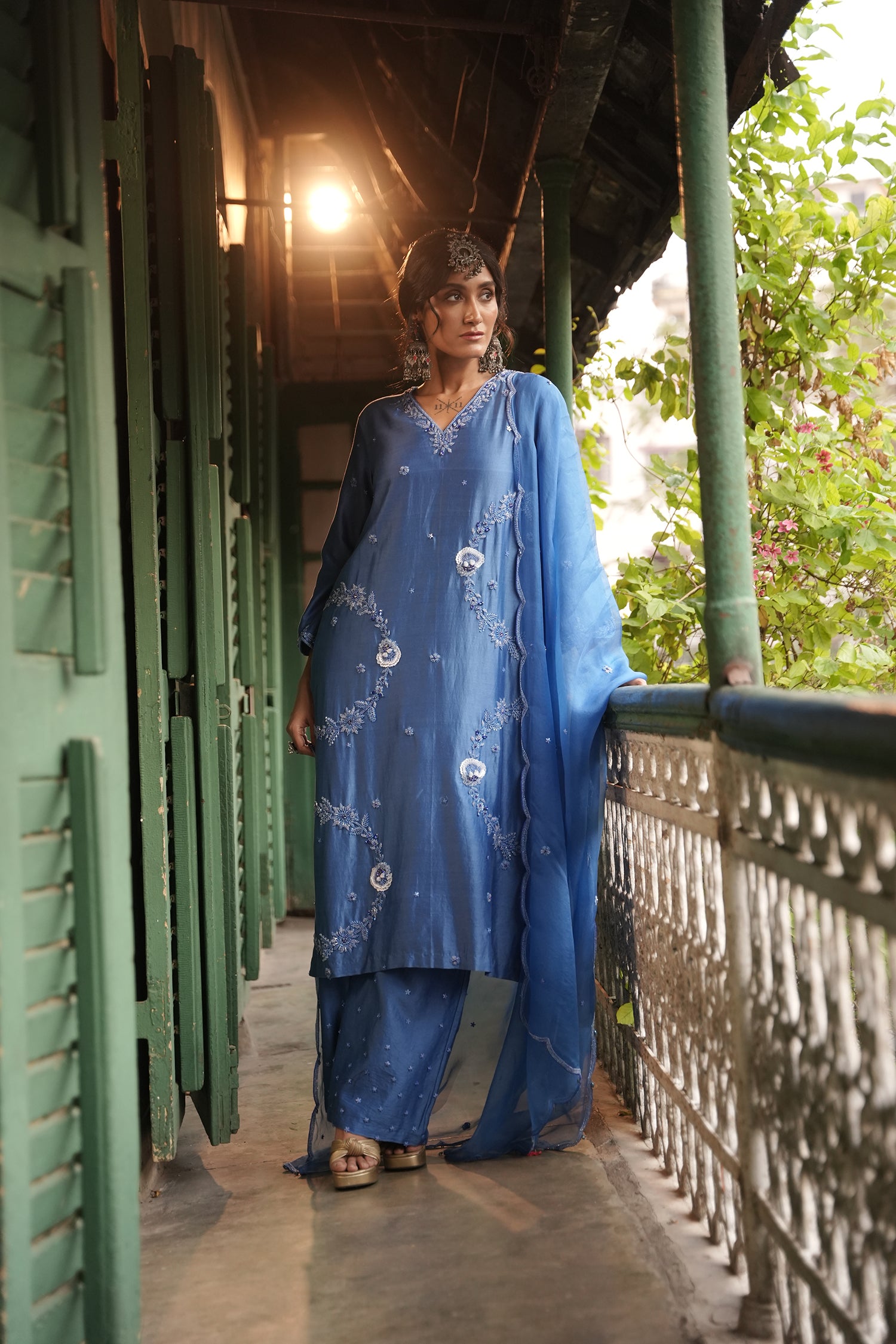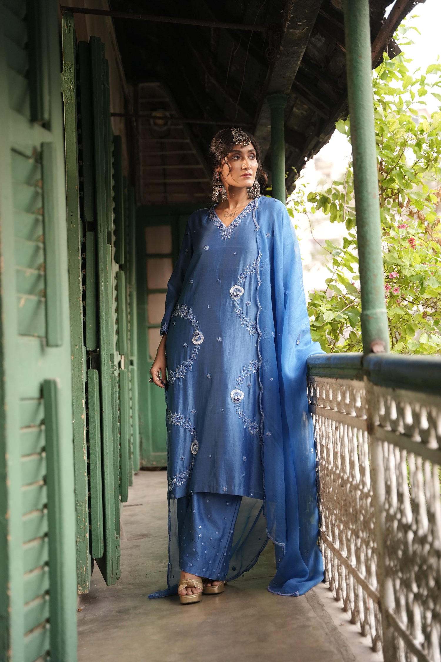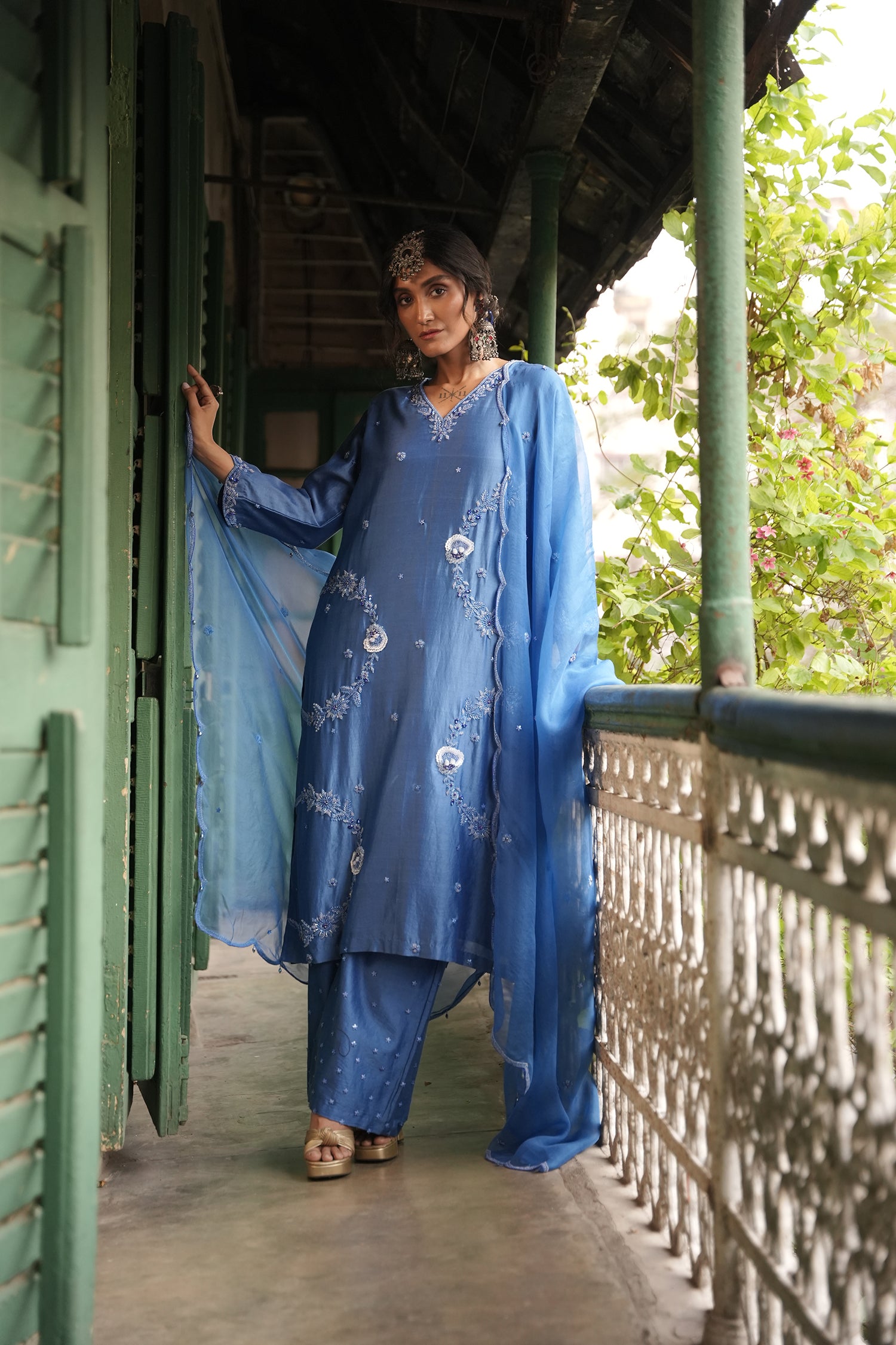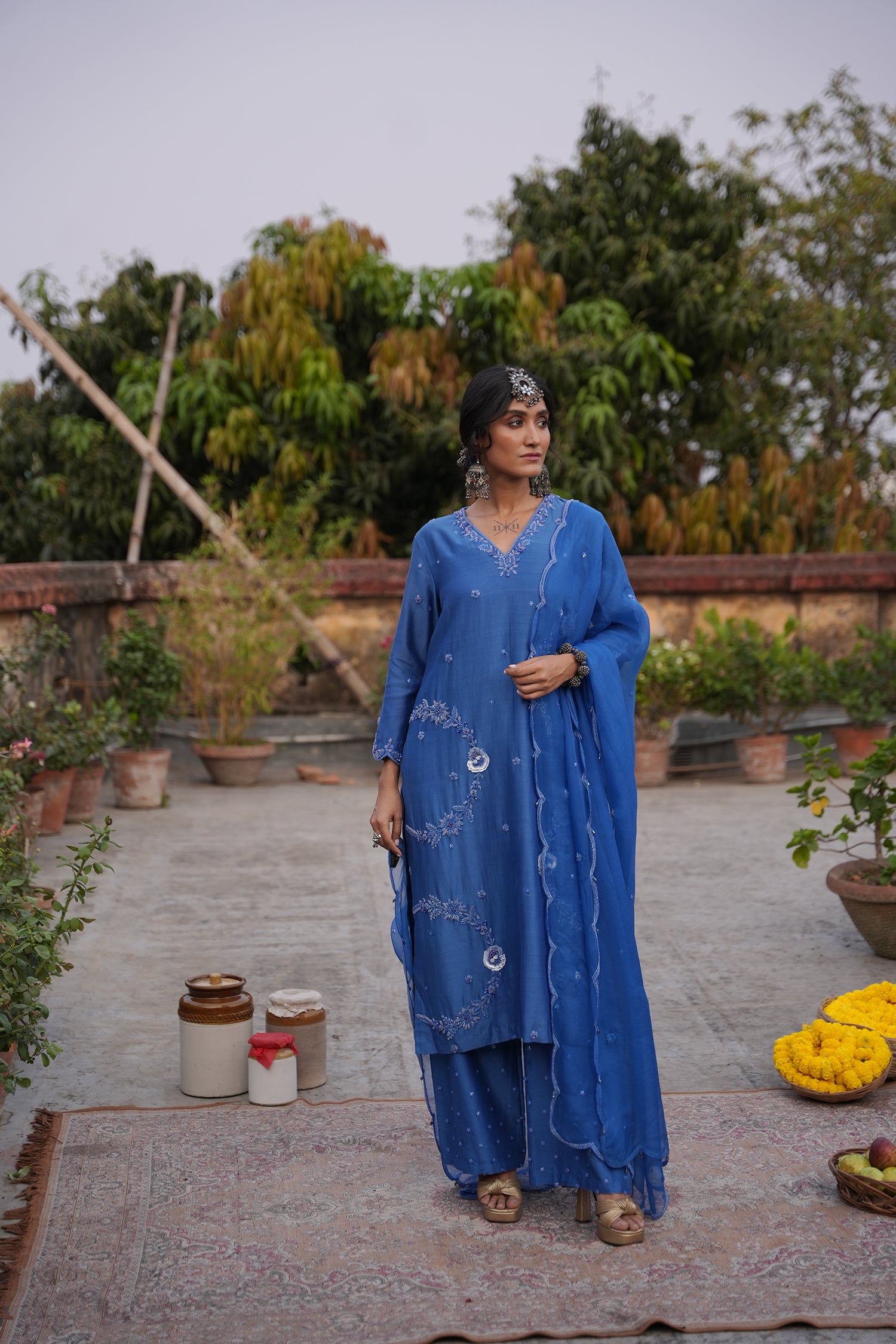 Hafsa Royal Blue Silk Chanderi Kurta Set