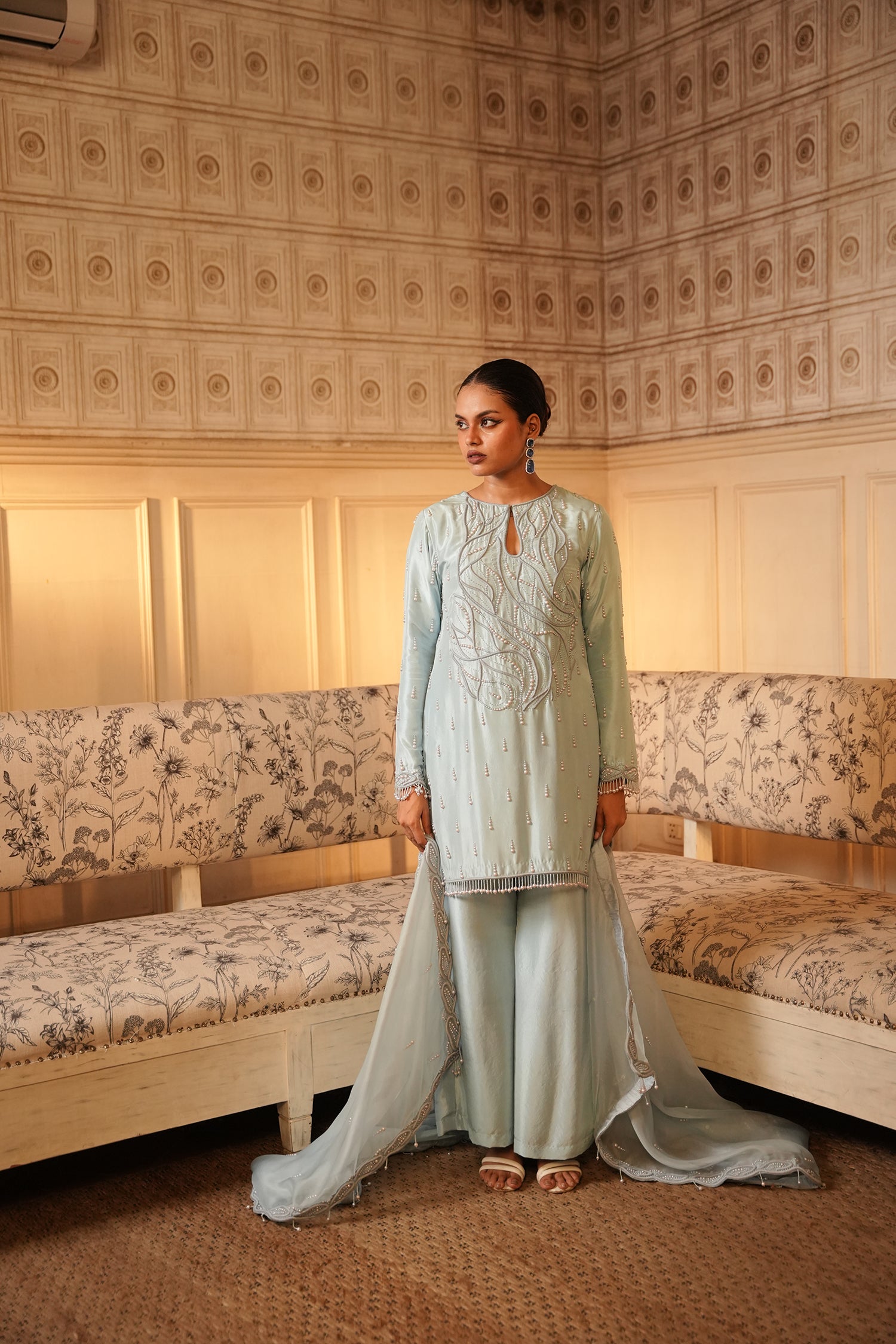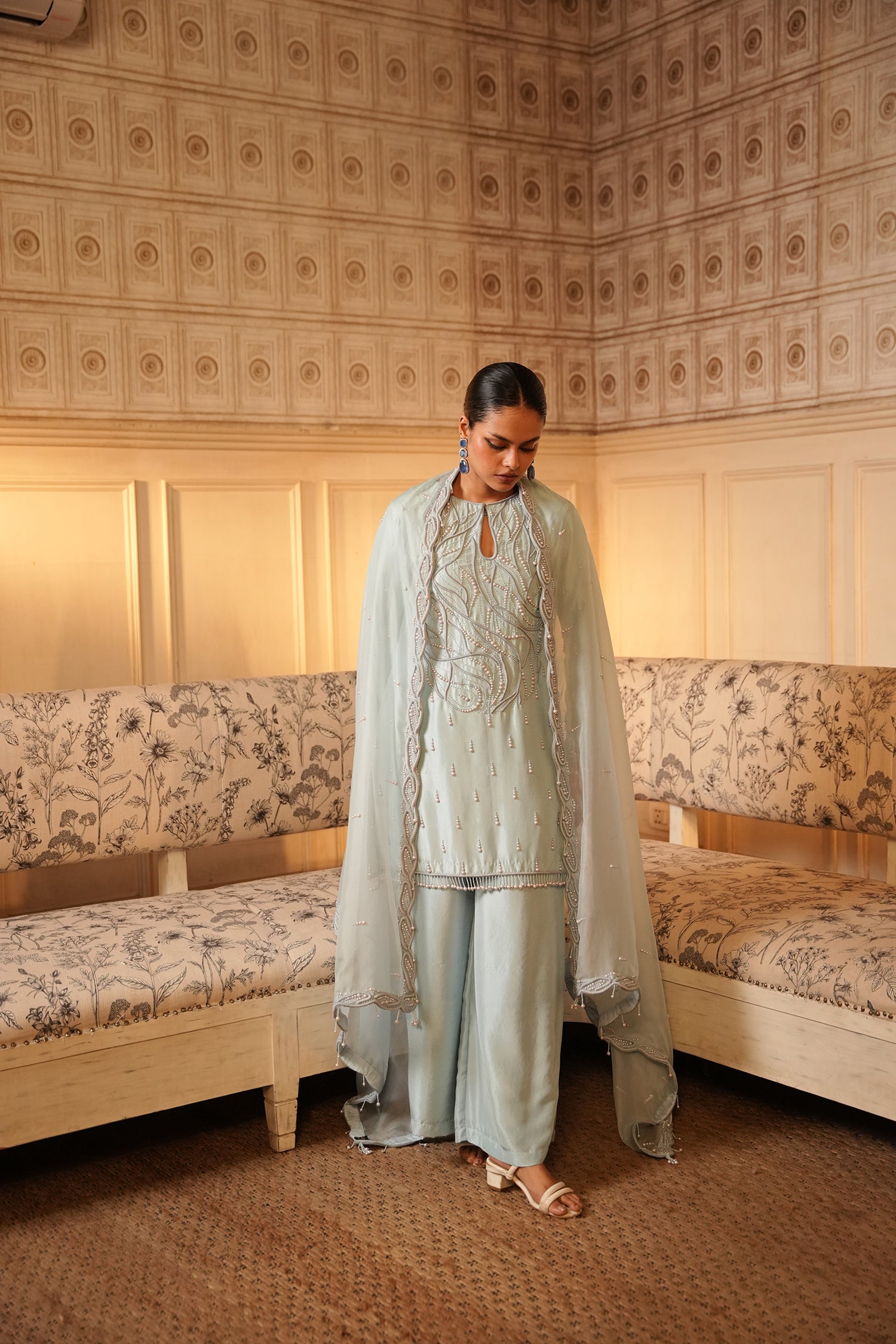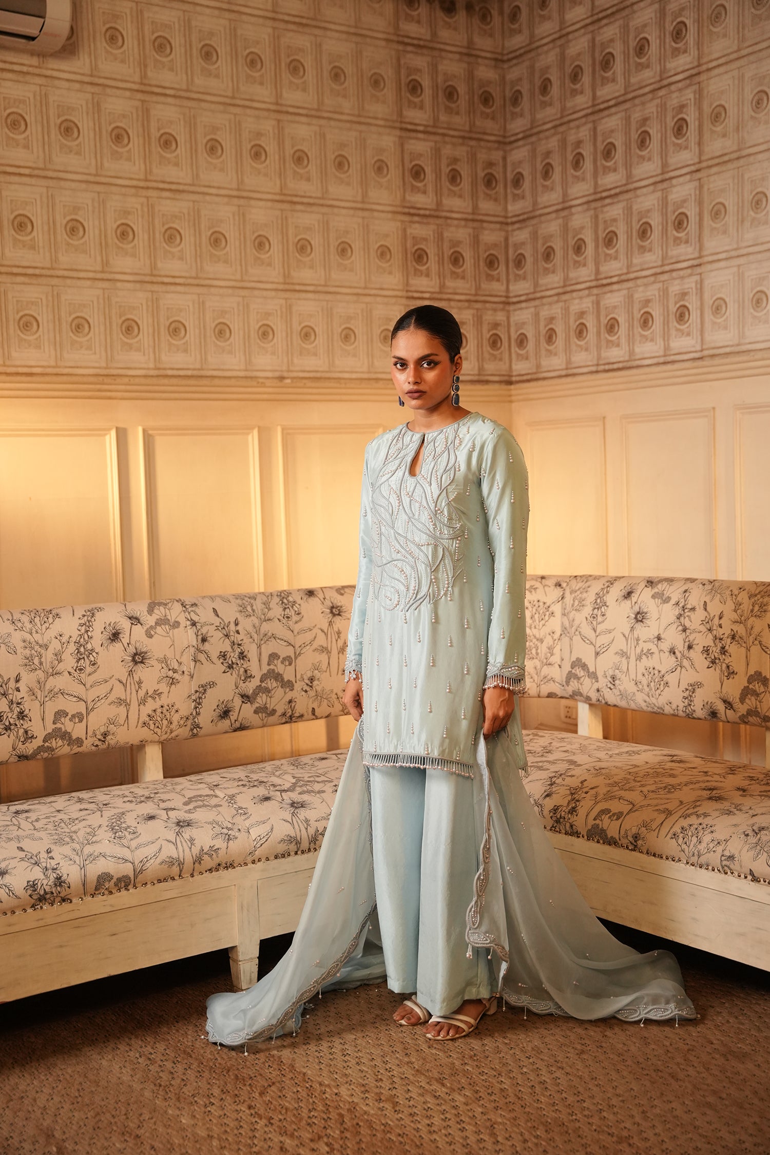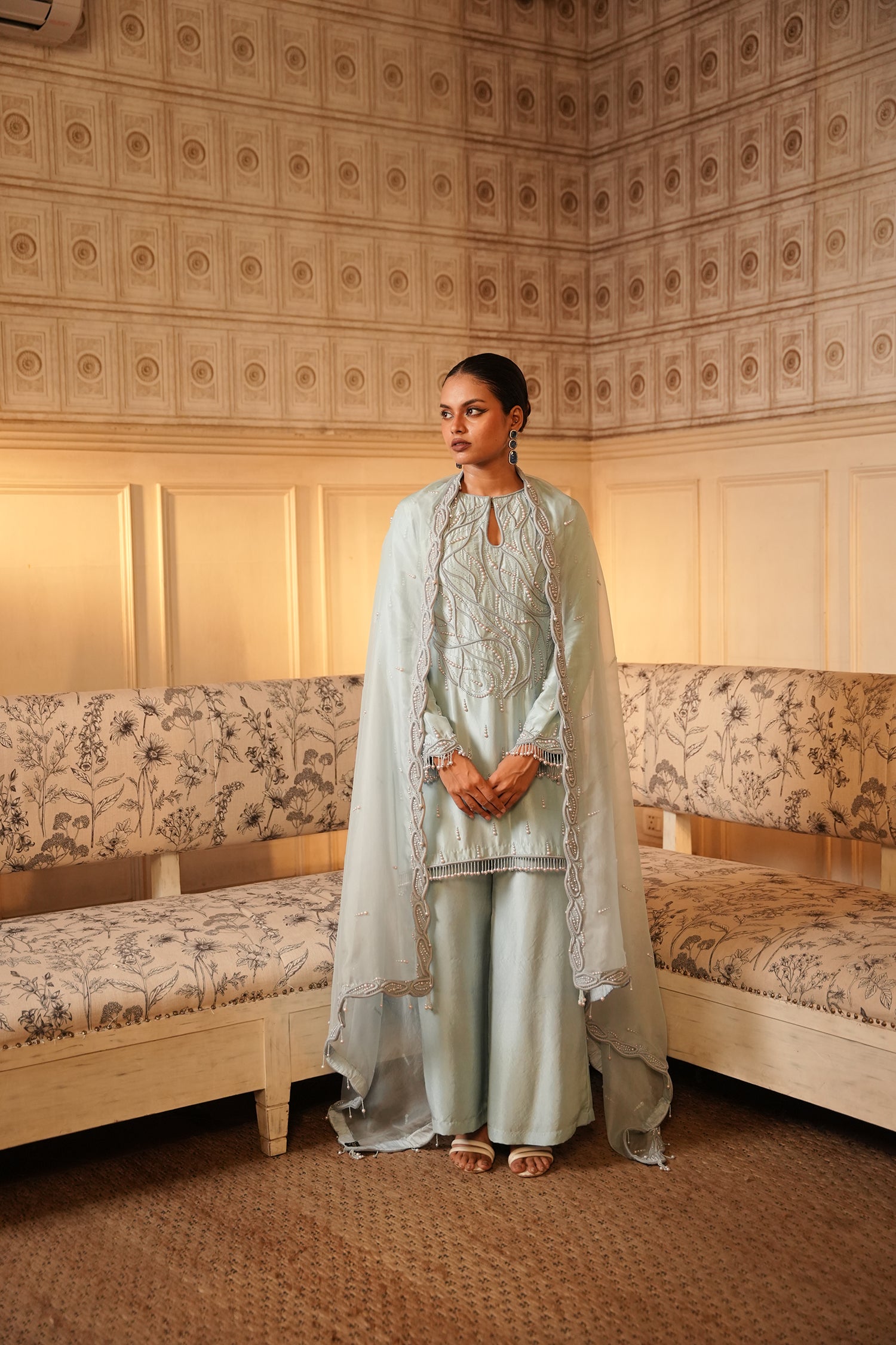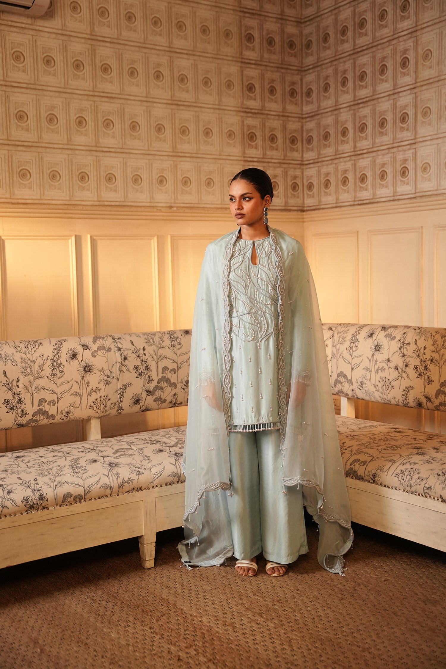 Hafsa Royal Blue Silk Chanderi Kurta Set