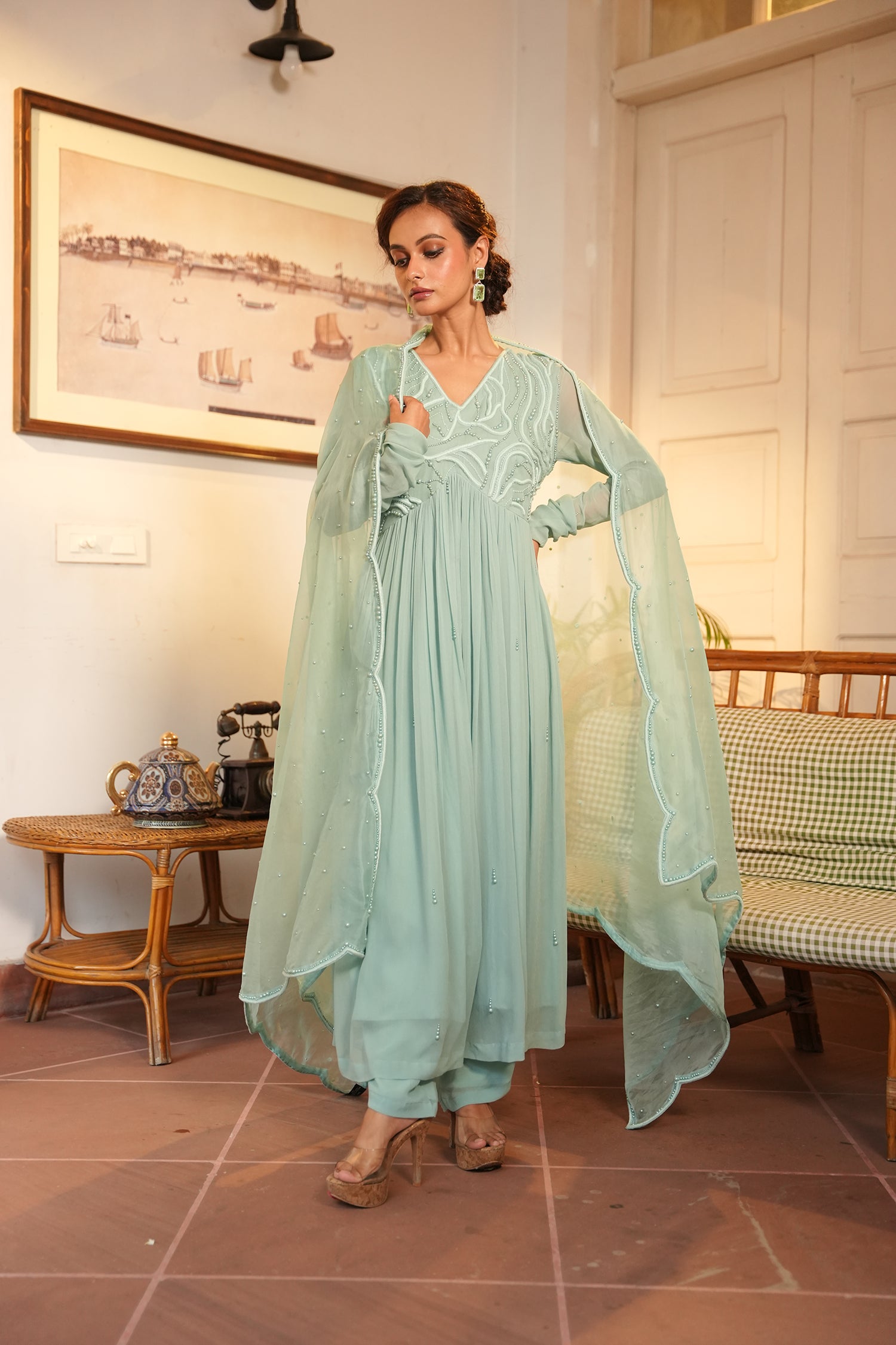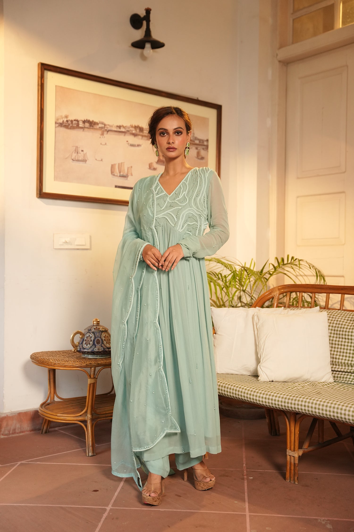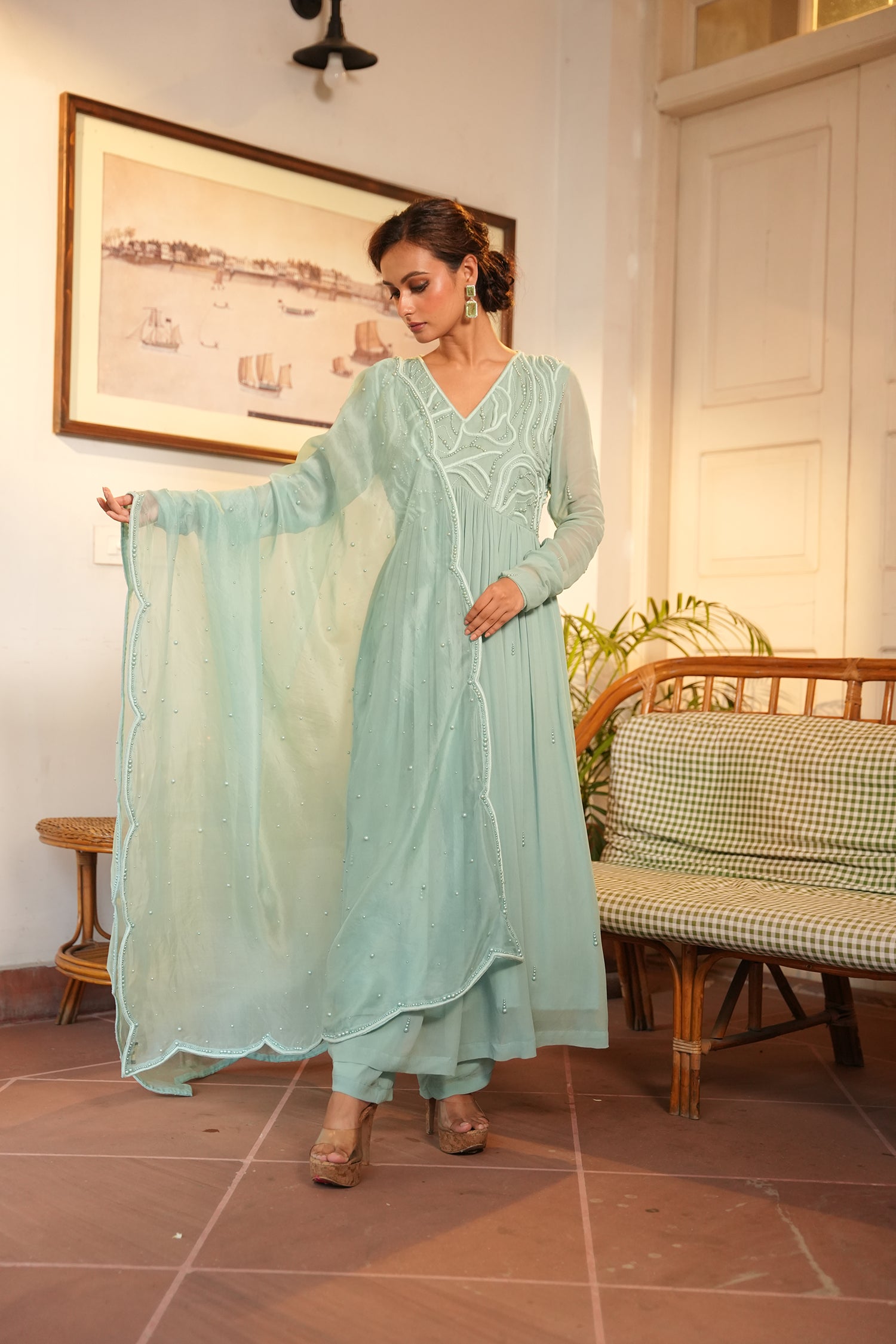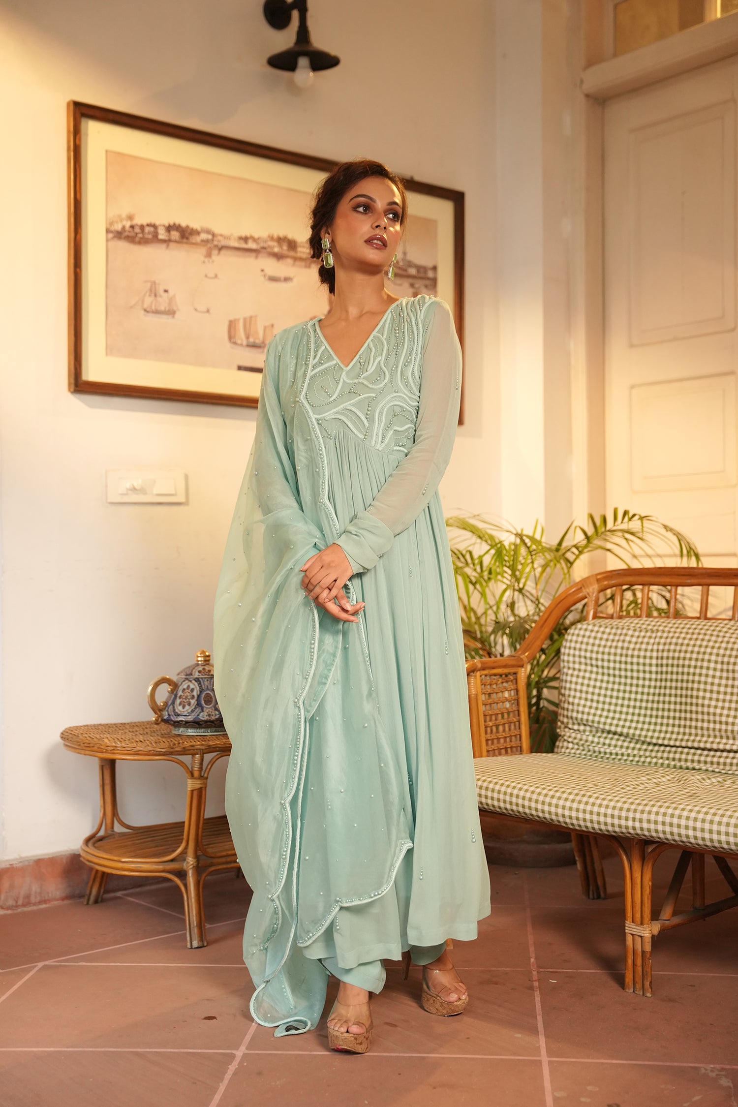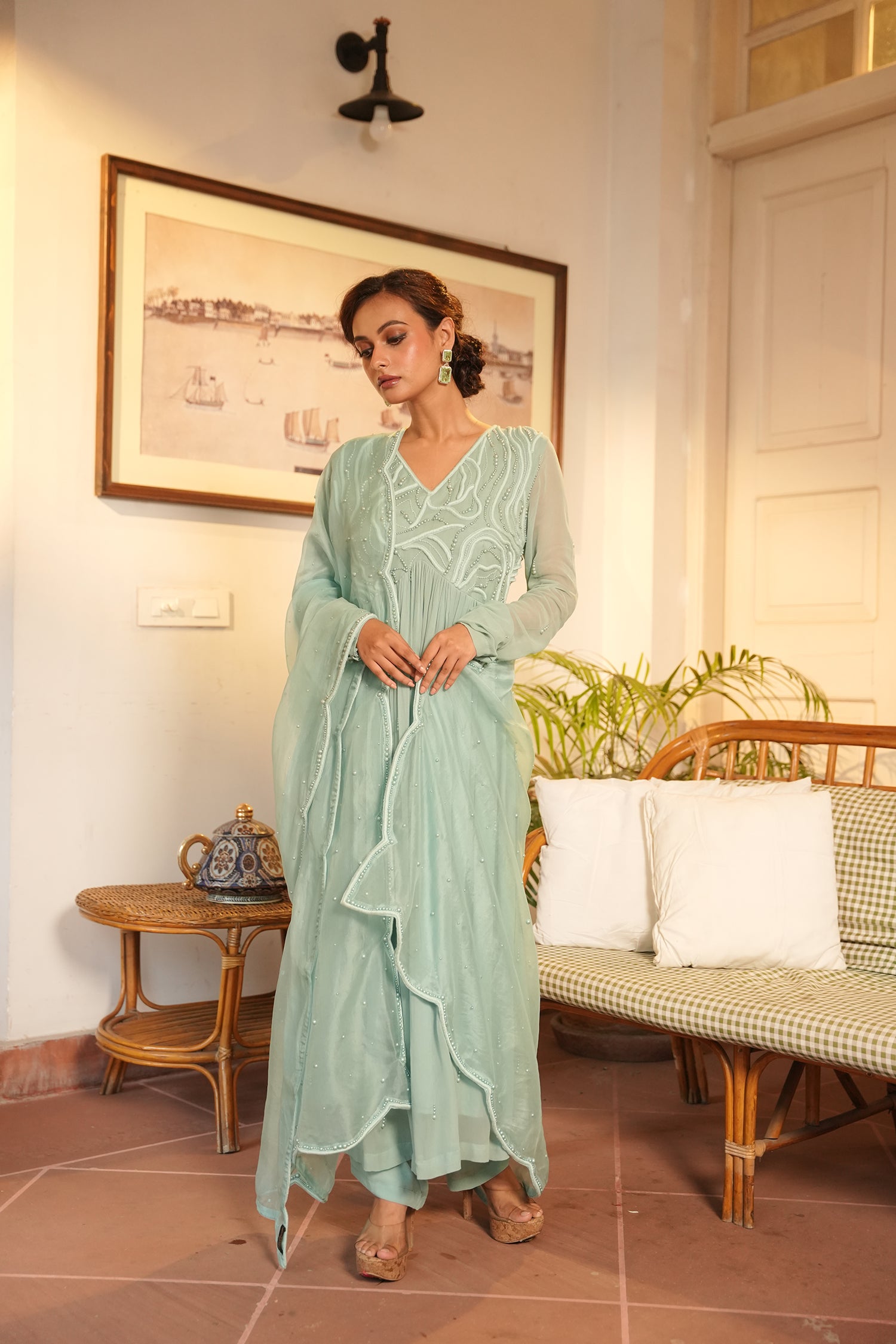 Hafsa Royal Blue Silk Chanderi Kurta Set
