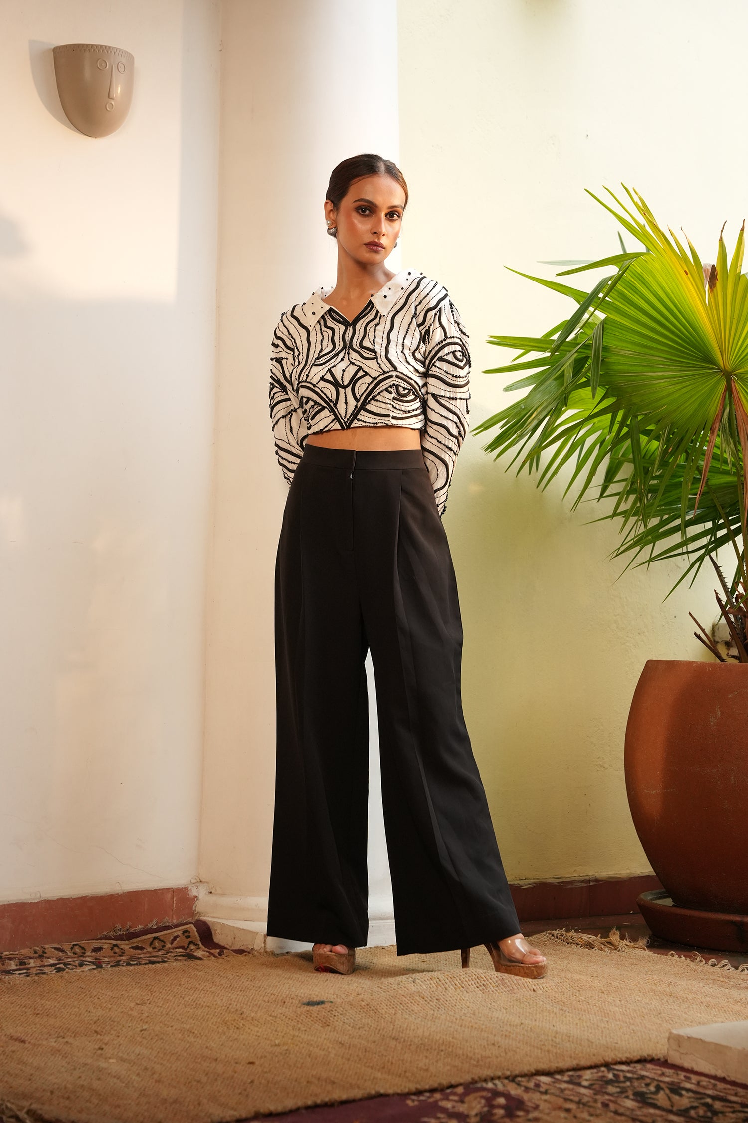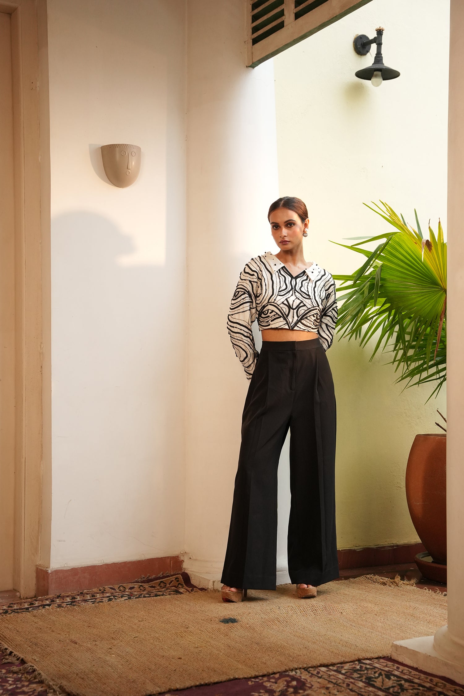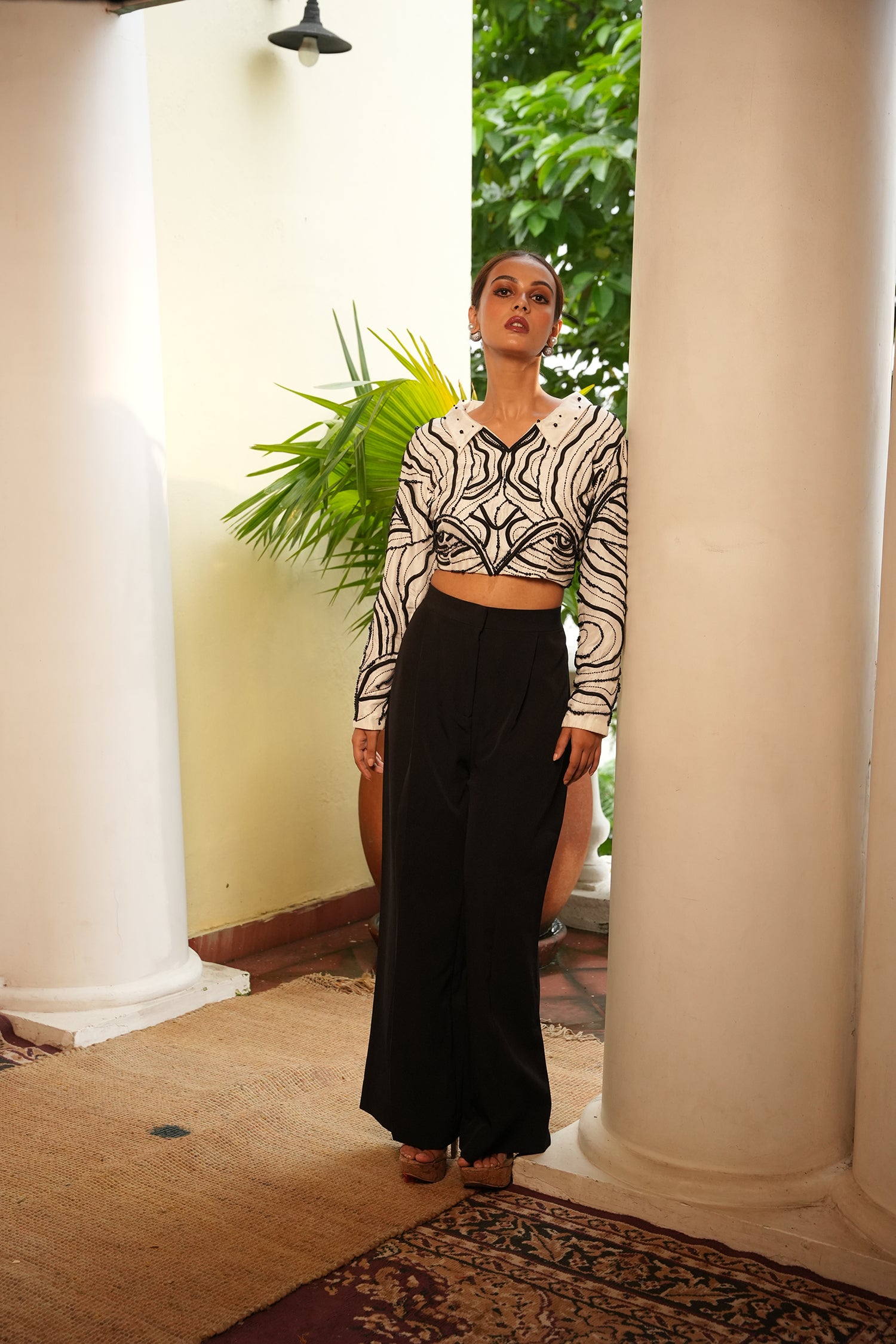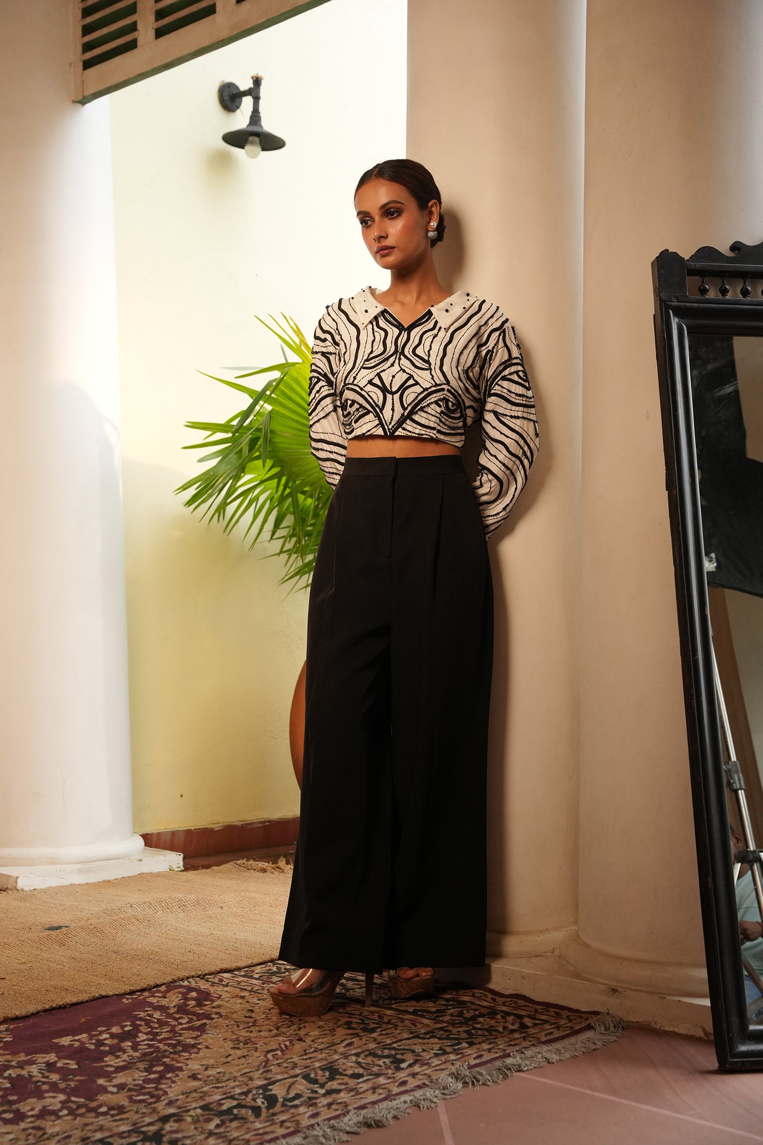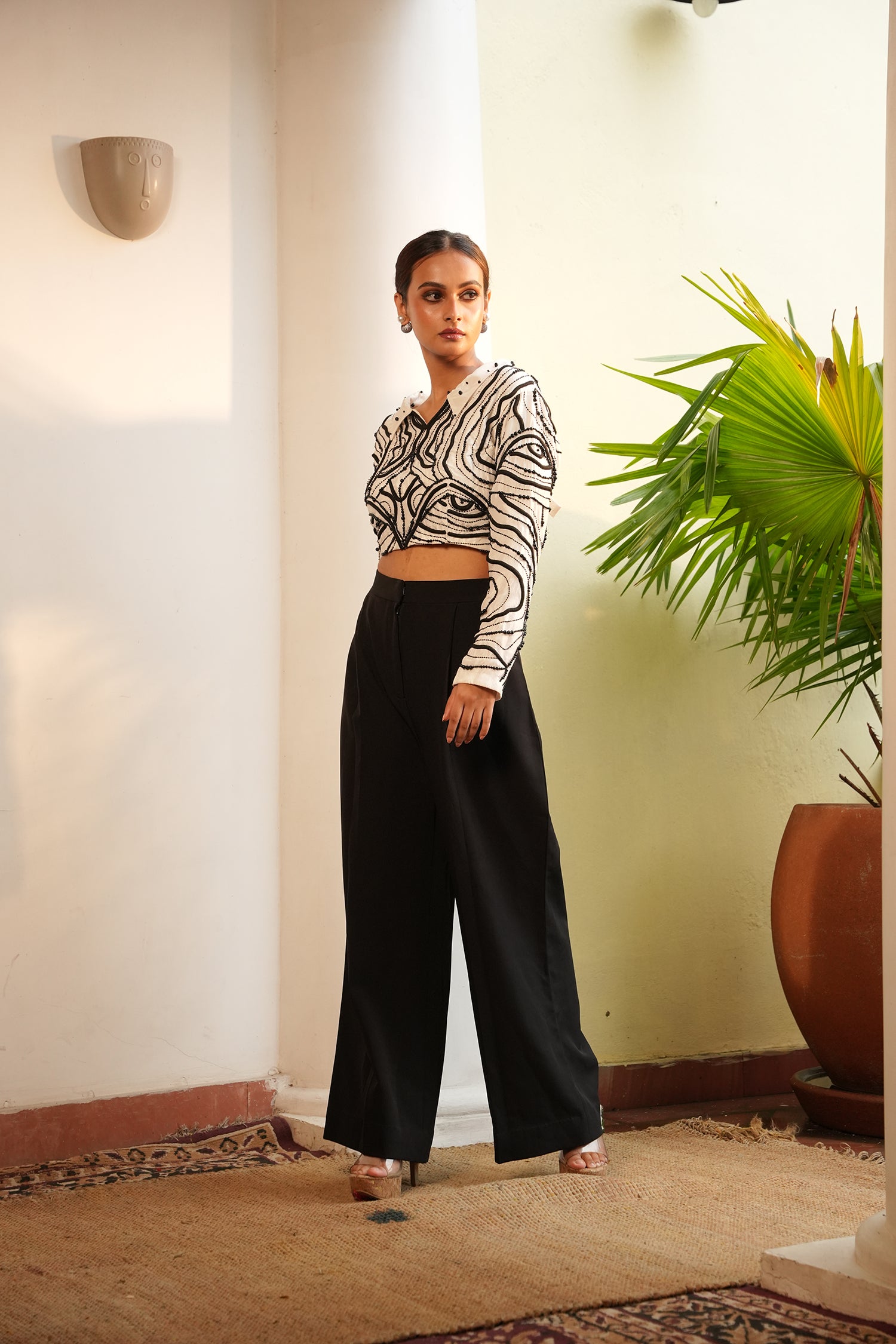 Neema Off White Chanderi Collar Kurta With Flap Border Pant