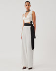 "• Sleeveless blouse crafted in rich black vegan mashru with a subtle sheen