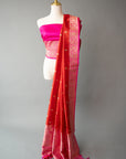 Elegant Handwoven Red And Pink Silk Sari With Unstitched Blouse