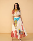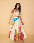 Skirt : Abstract floral placement print, high waist, flared maxi skirt