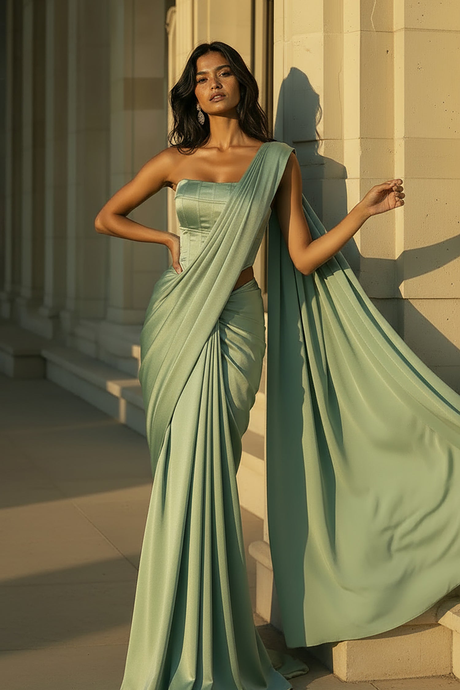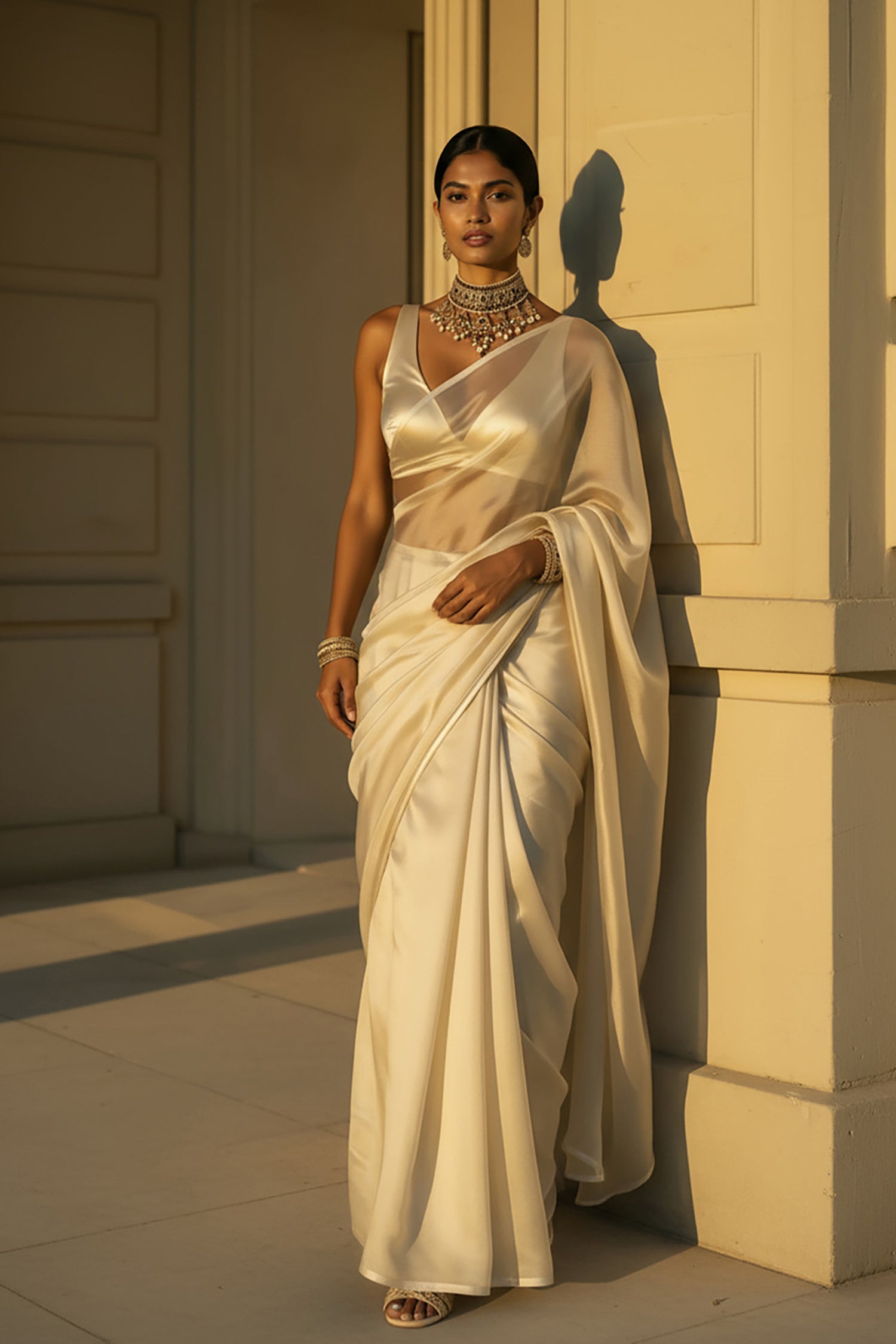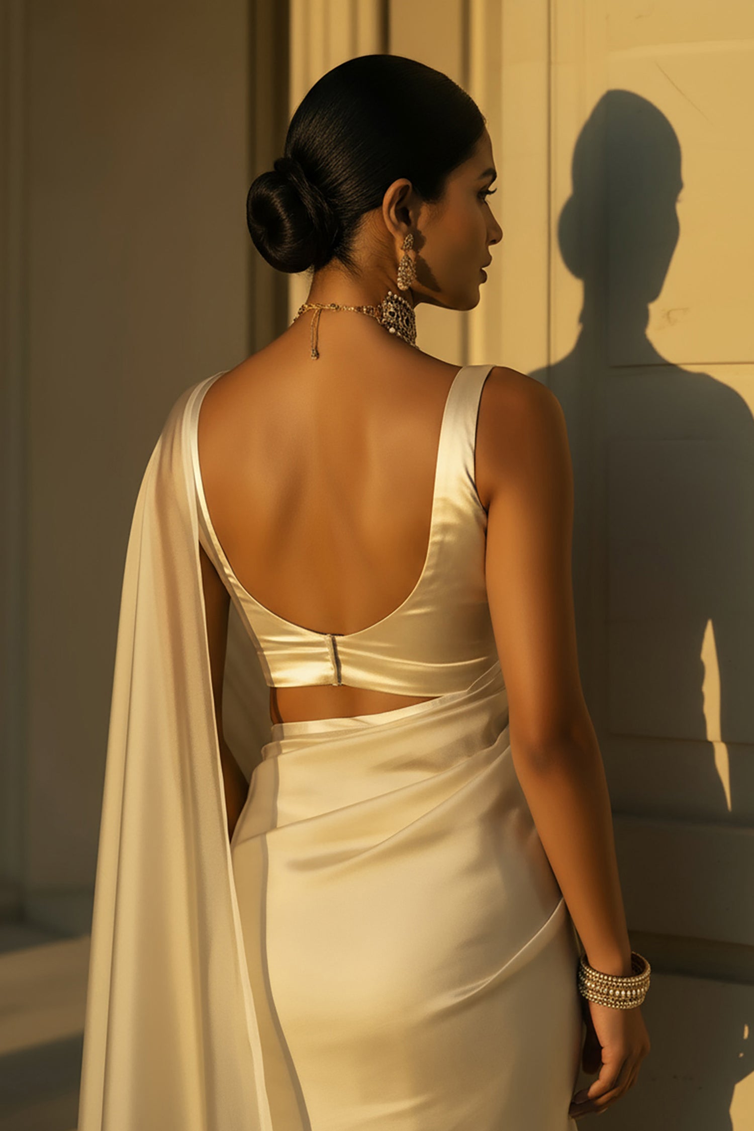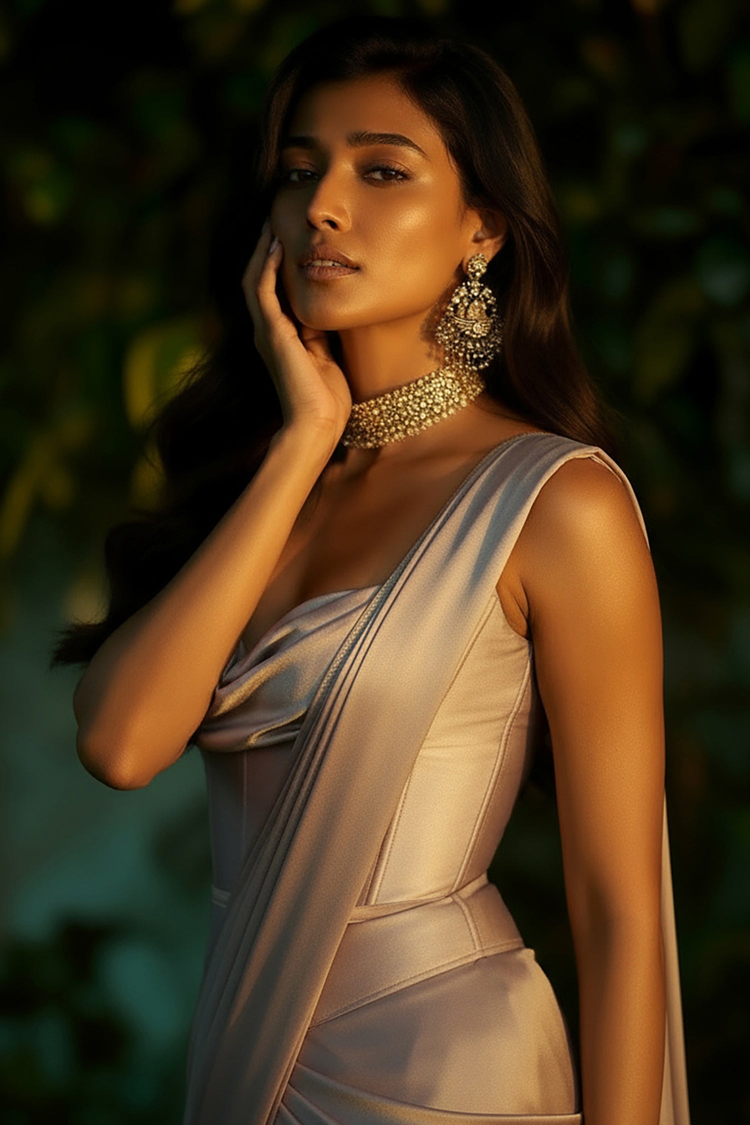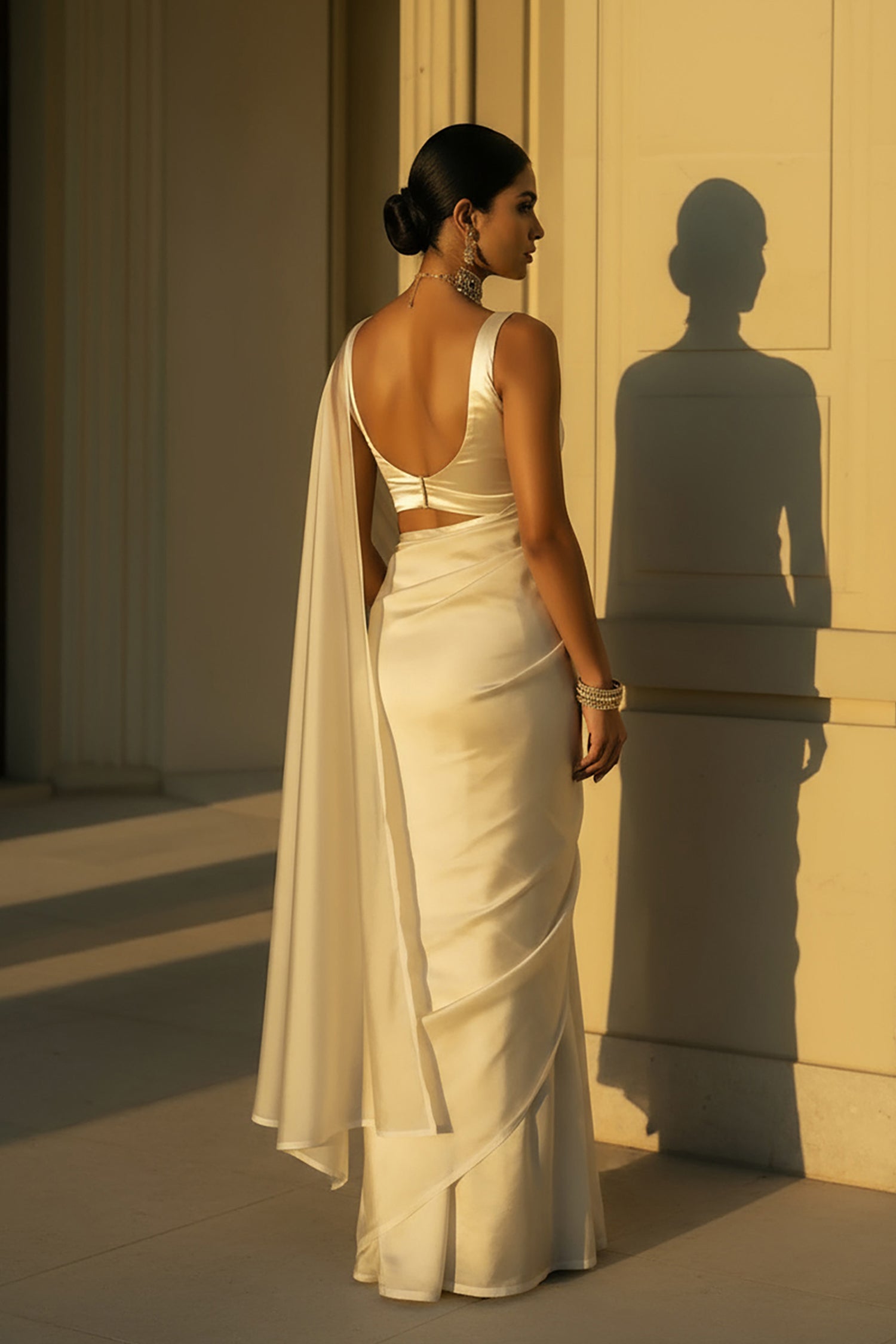 An Indo-Western saree is a fusion outfit that combines the traditional Indian saree with contemporary design elements such as pre-stitched pleats, corset blouses, or Western-style silhouettes, making it easier to wear and style.