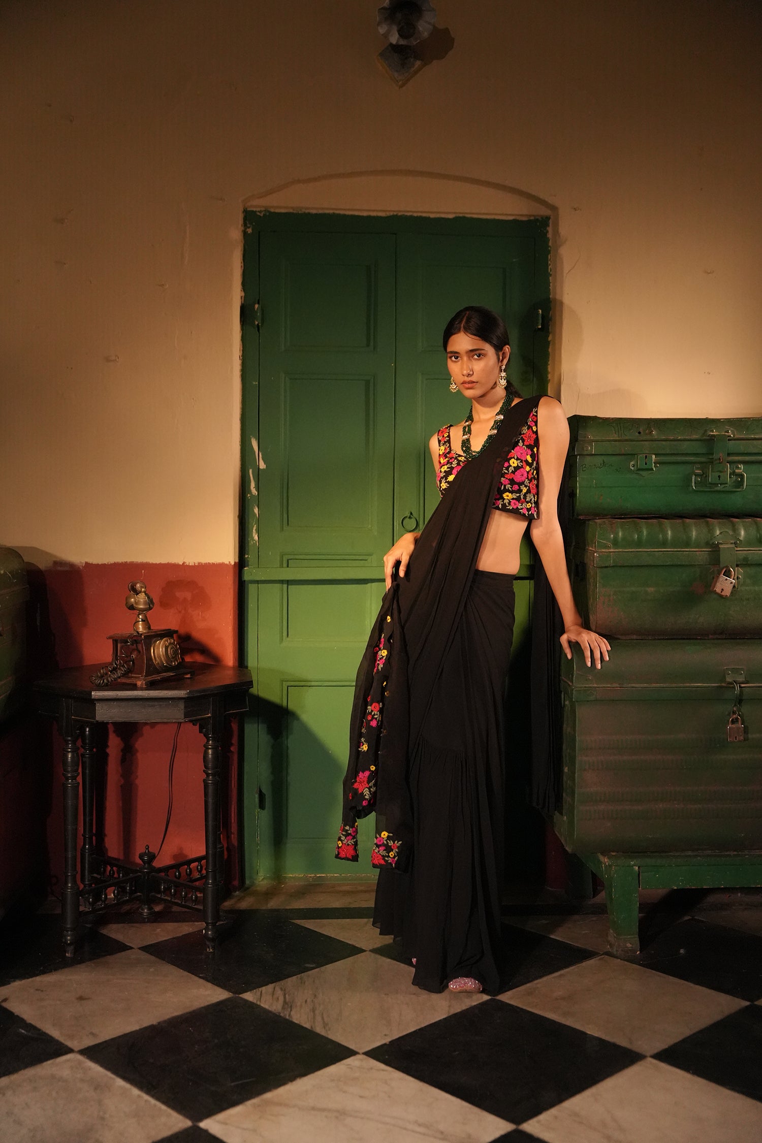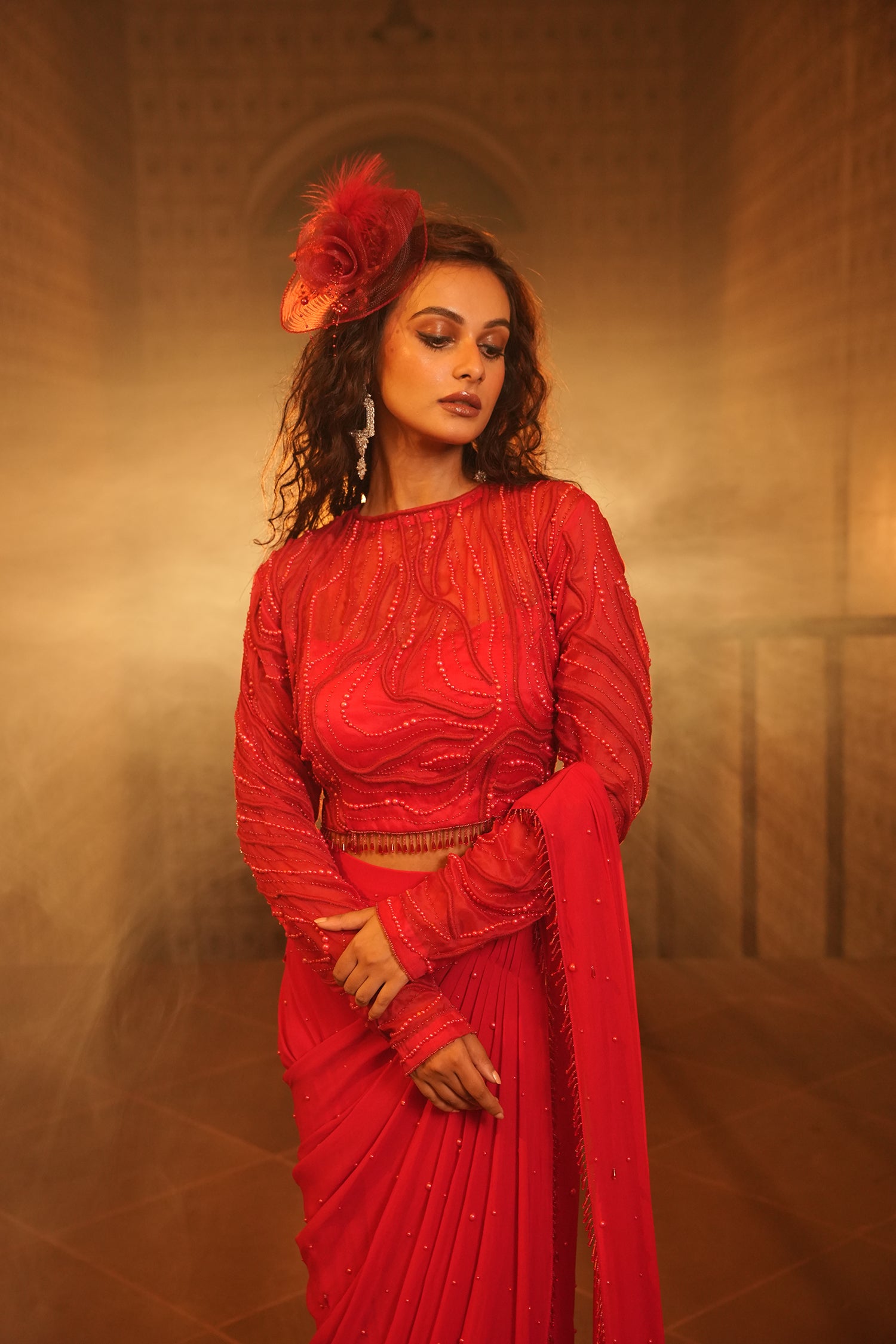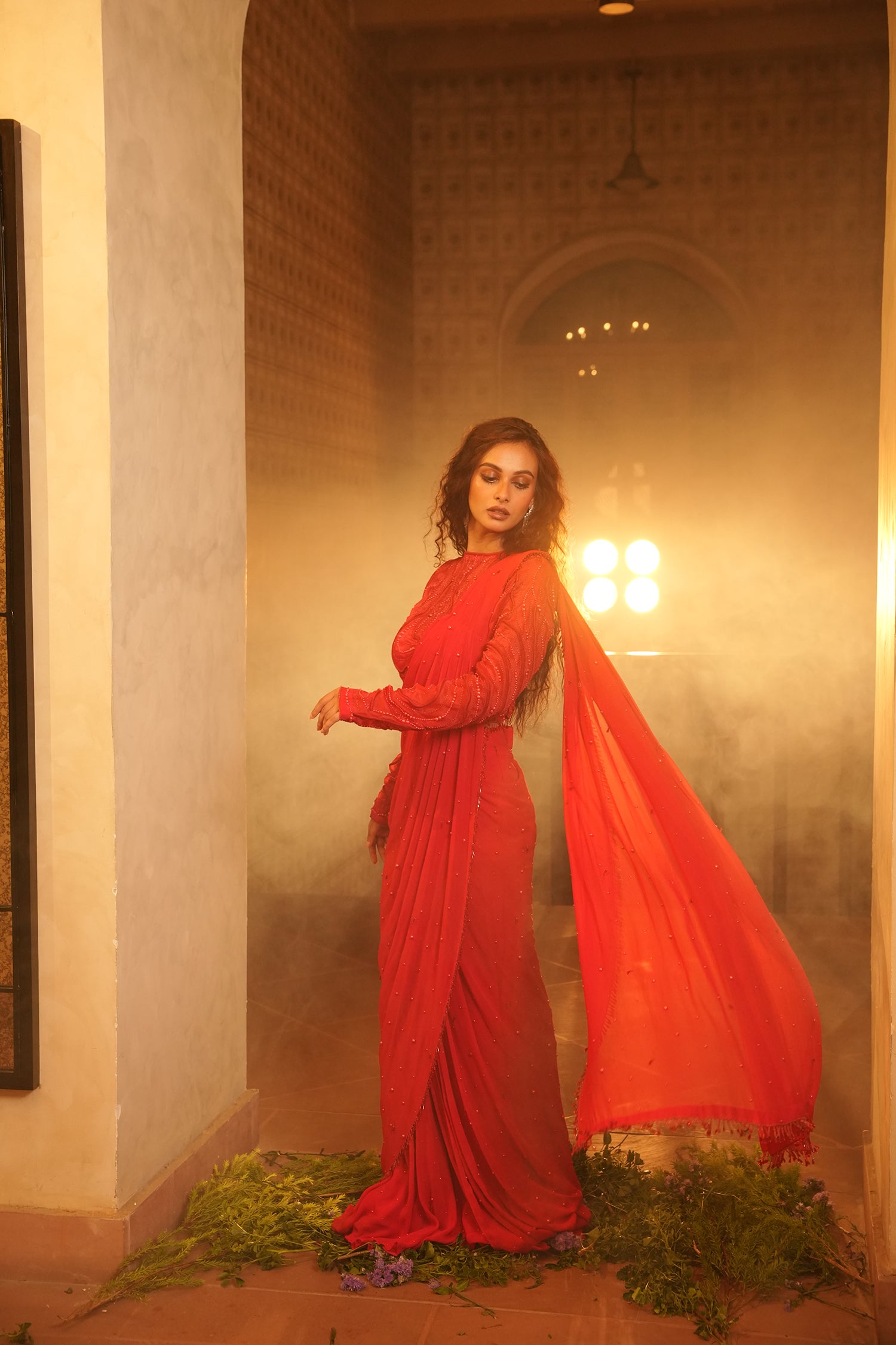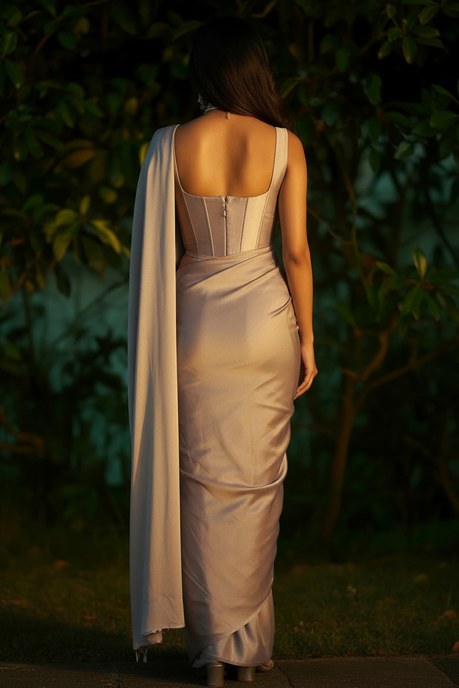 An Indo-Western saree is a fusion outfit that combines the traditional Indian saree with contemporary design elements such as pre-stitched pleats, corset blouses, or Western-style silhouettes, making it easier to wear and style.