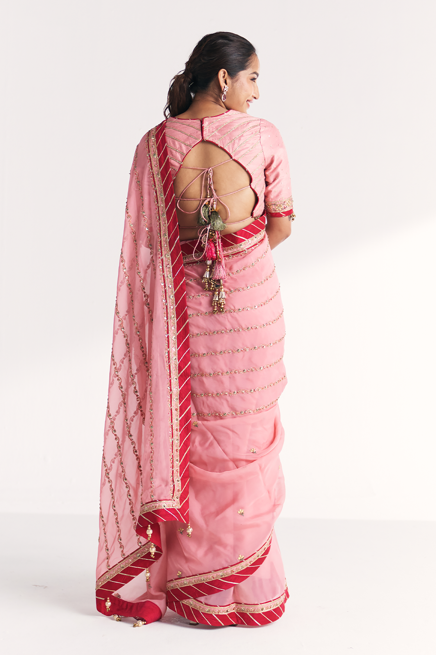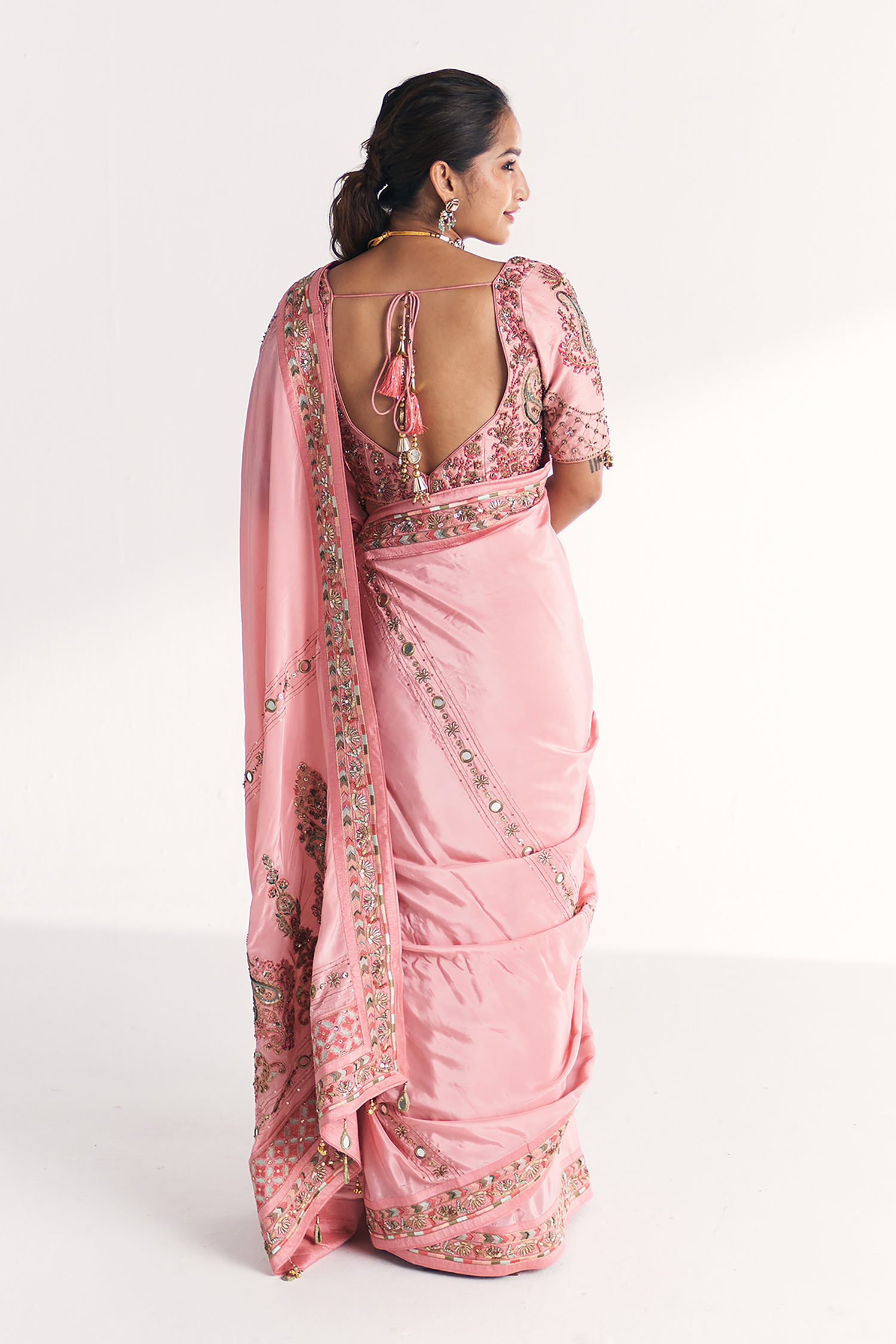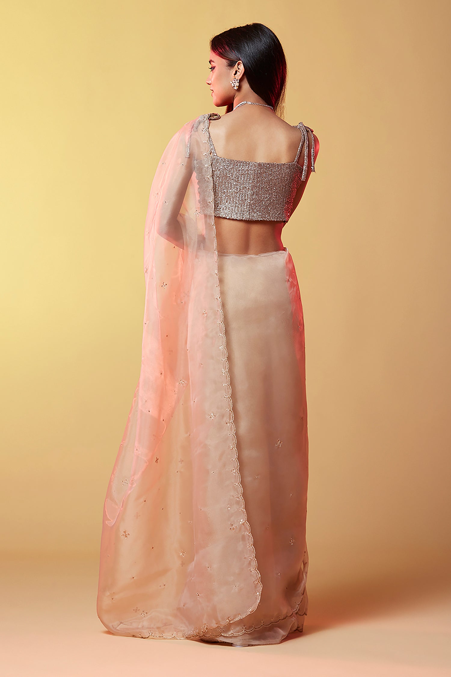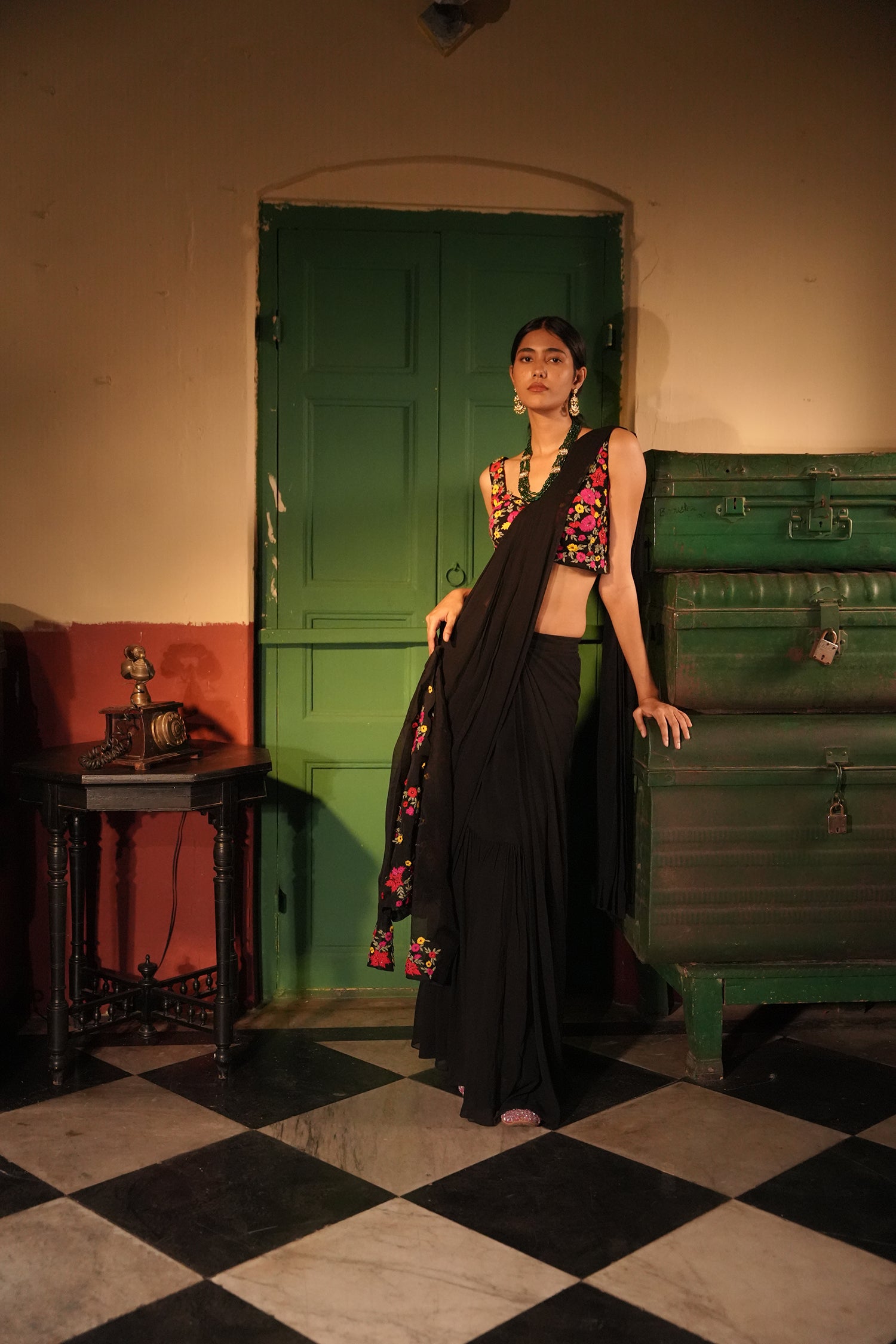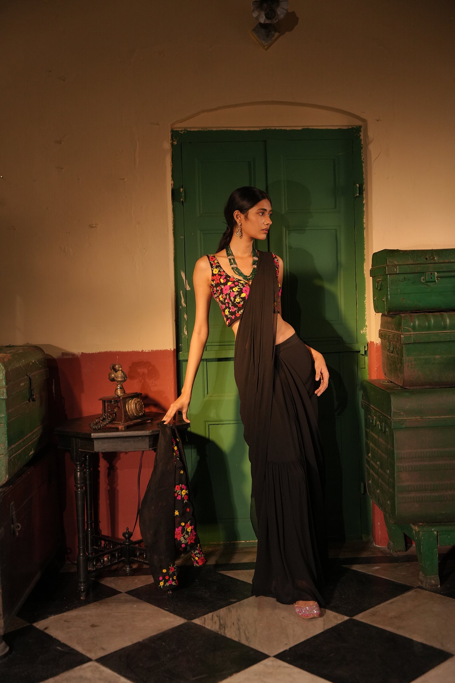 An Indo-Western saree is a fusion outfit that combines the traditional Indian saree with contemporary design elements such as pre-stitched pleats, corset blouses, or Western-style silhouettes, making it easier to wear and style.