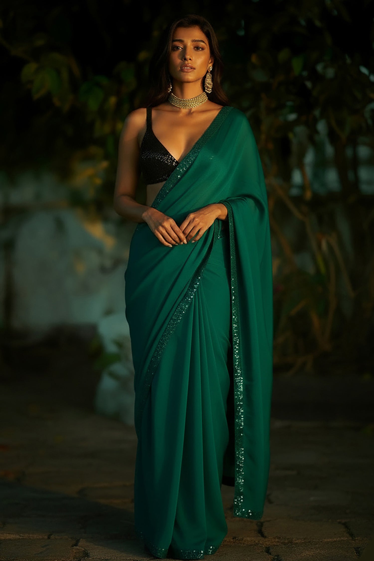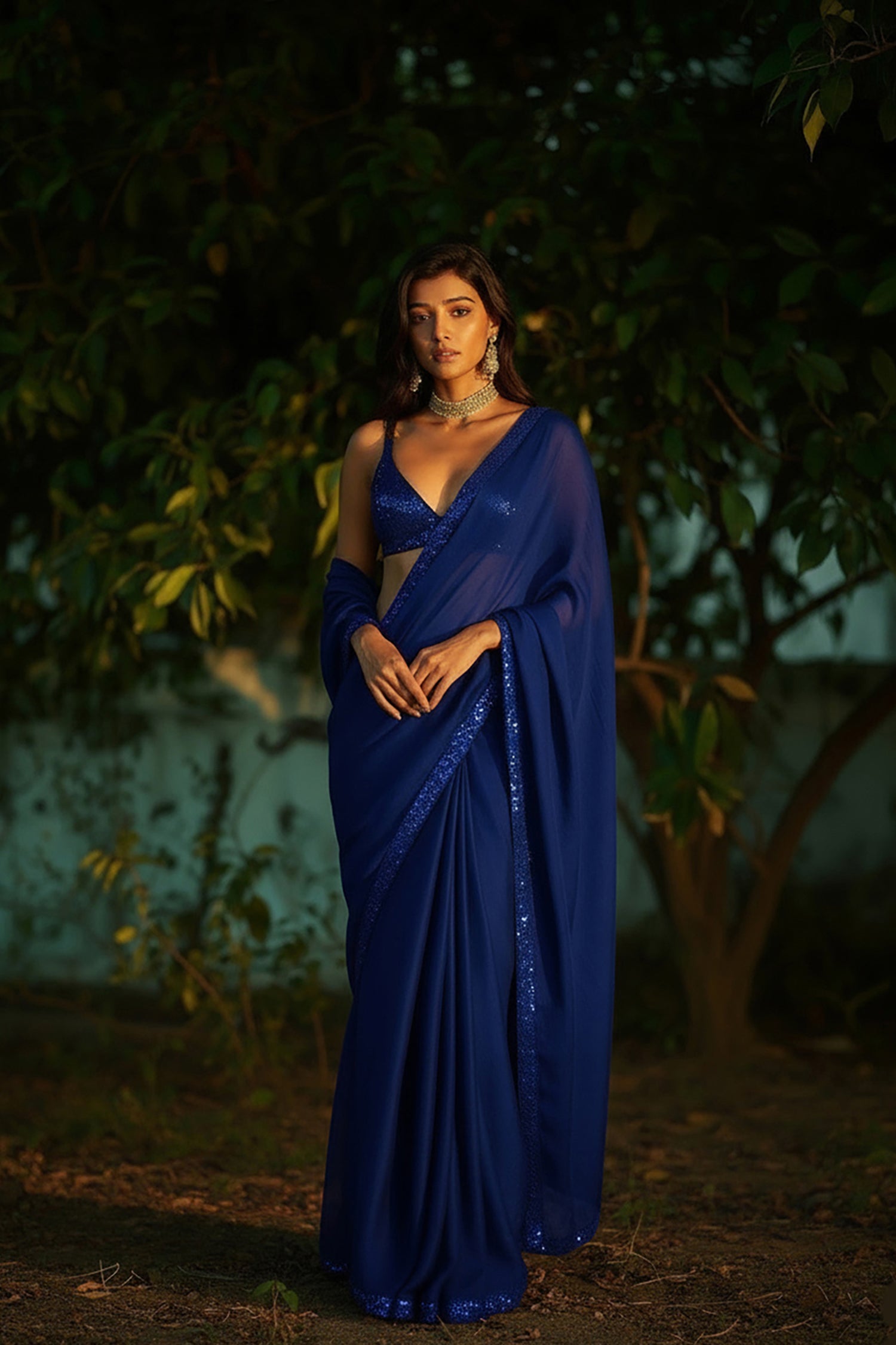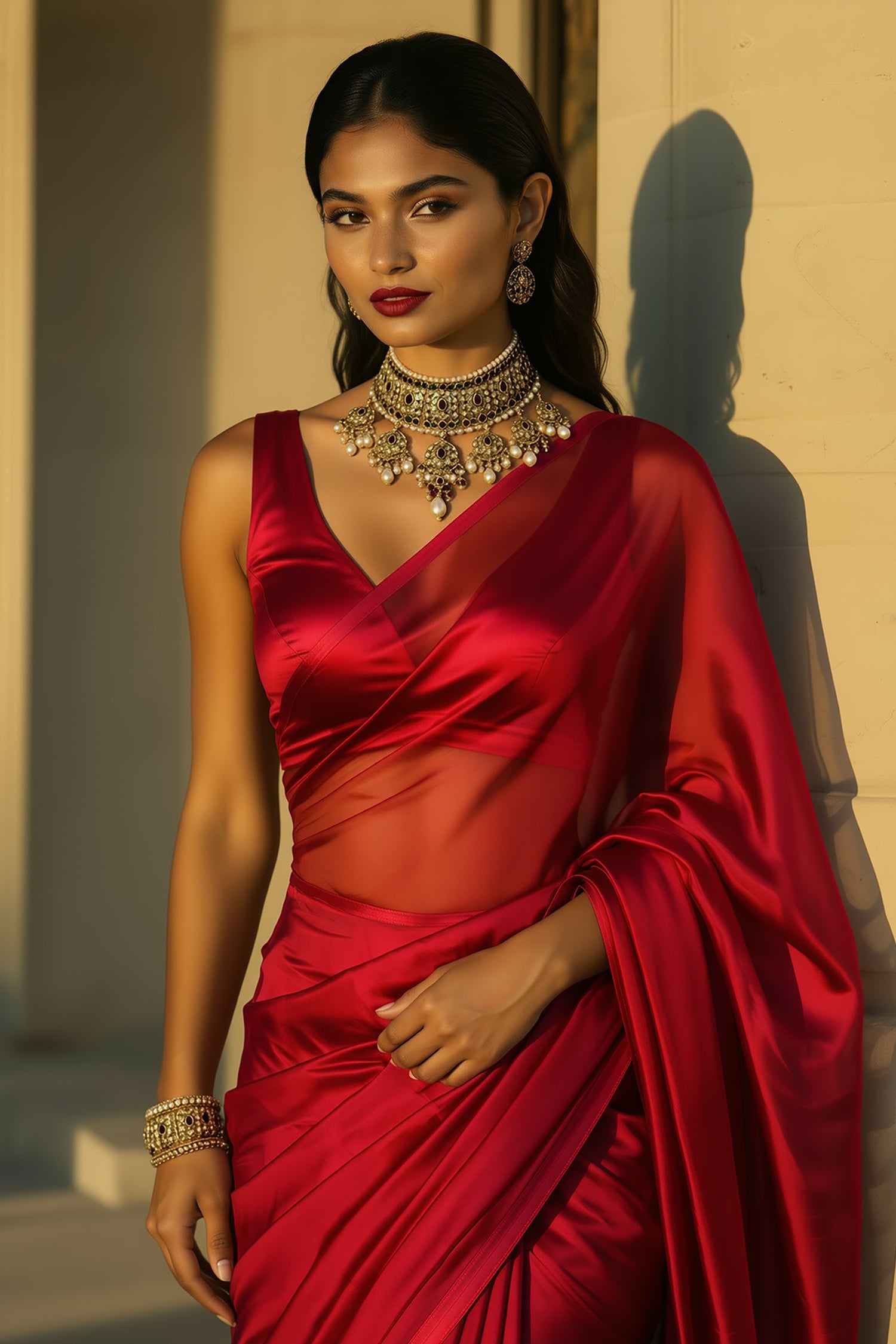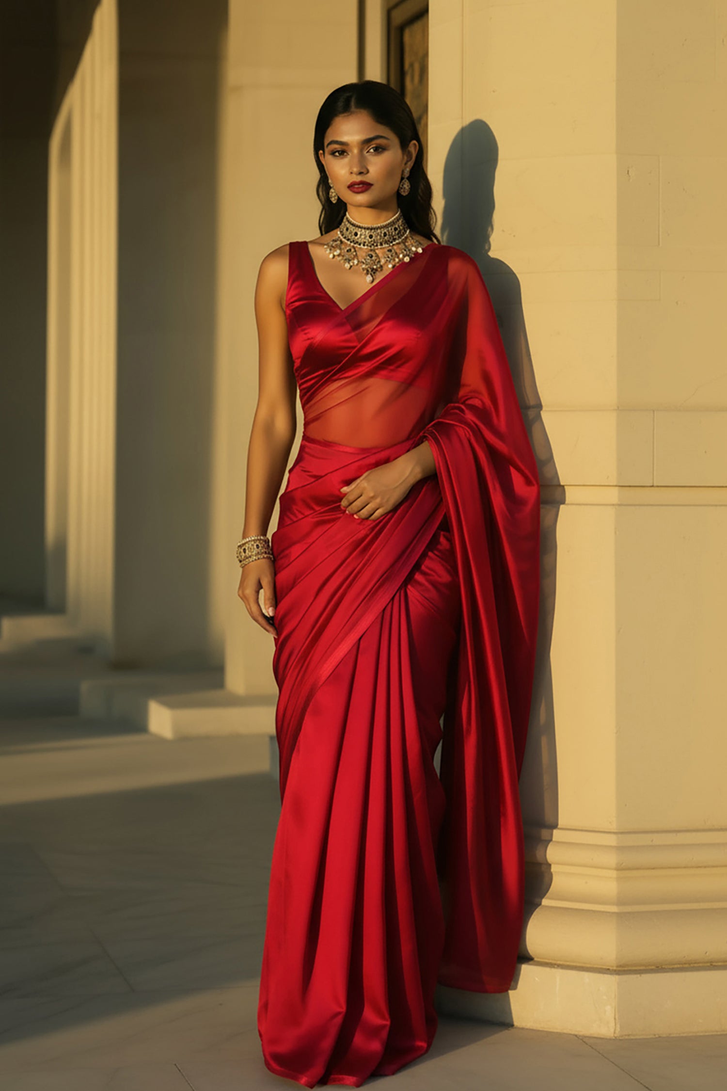 Unlike conventional sarees, indo western sarees are all about fusion. They are a seamless blend of Indian draping styles and Western silhouettes—think pre-stitched pallu, corset blouses, designer belts, and dramatic pleats. These contemporary sarees are ideal for those who want to stand out and express their individuality without straying from cultural elegance.
