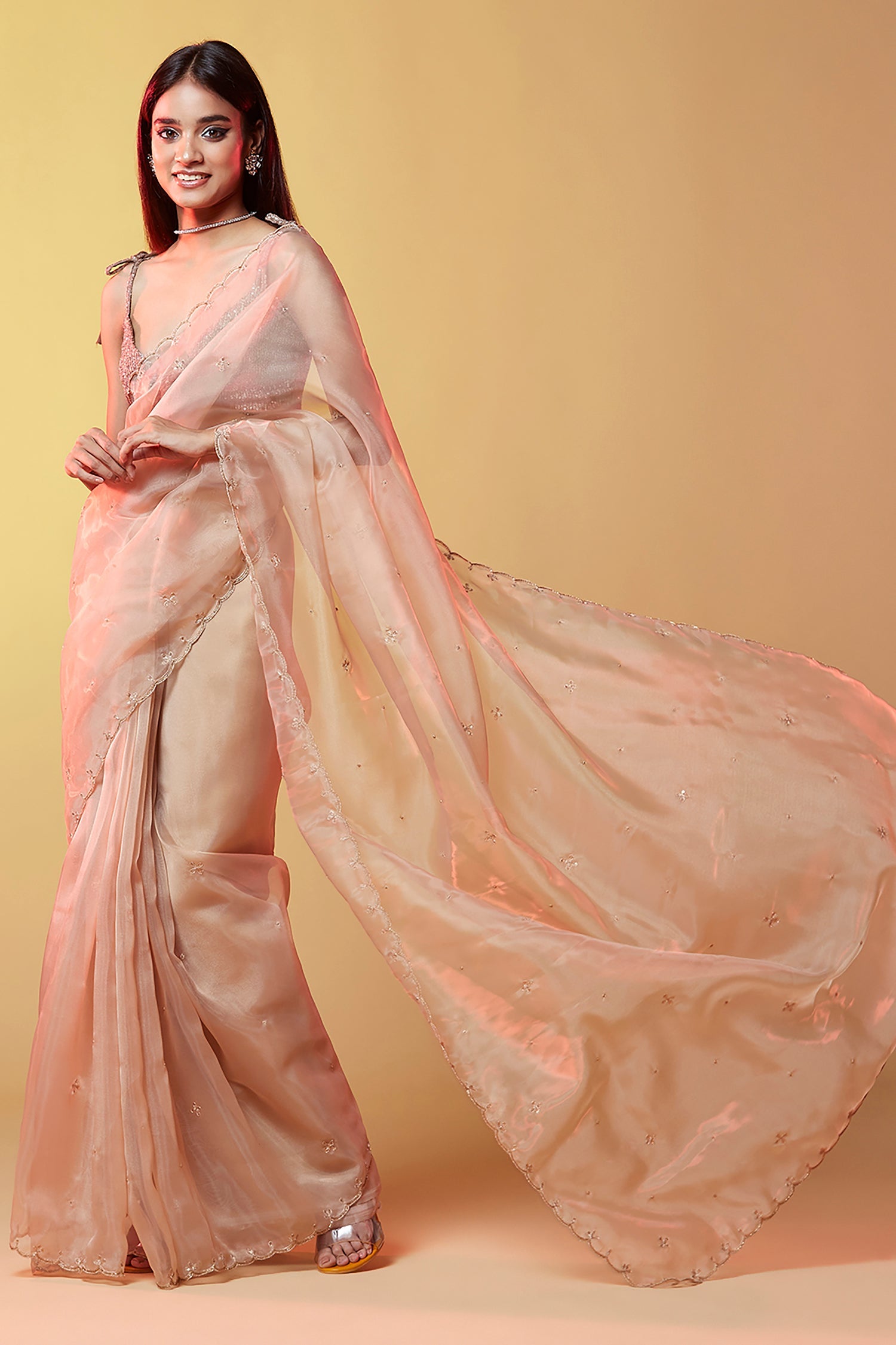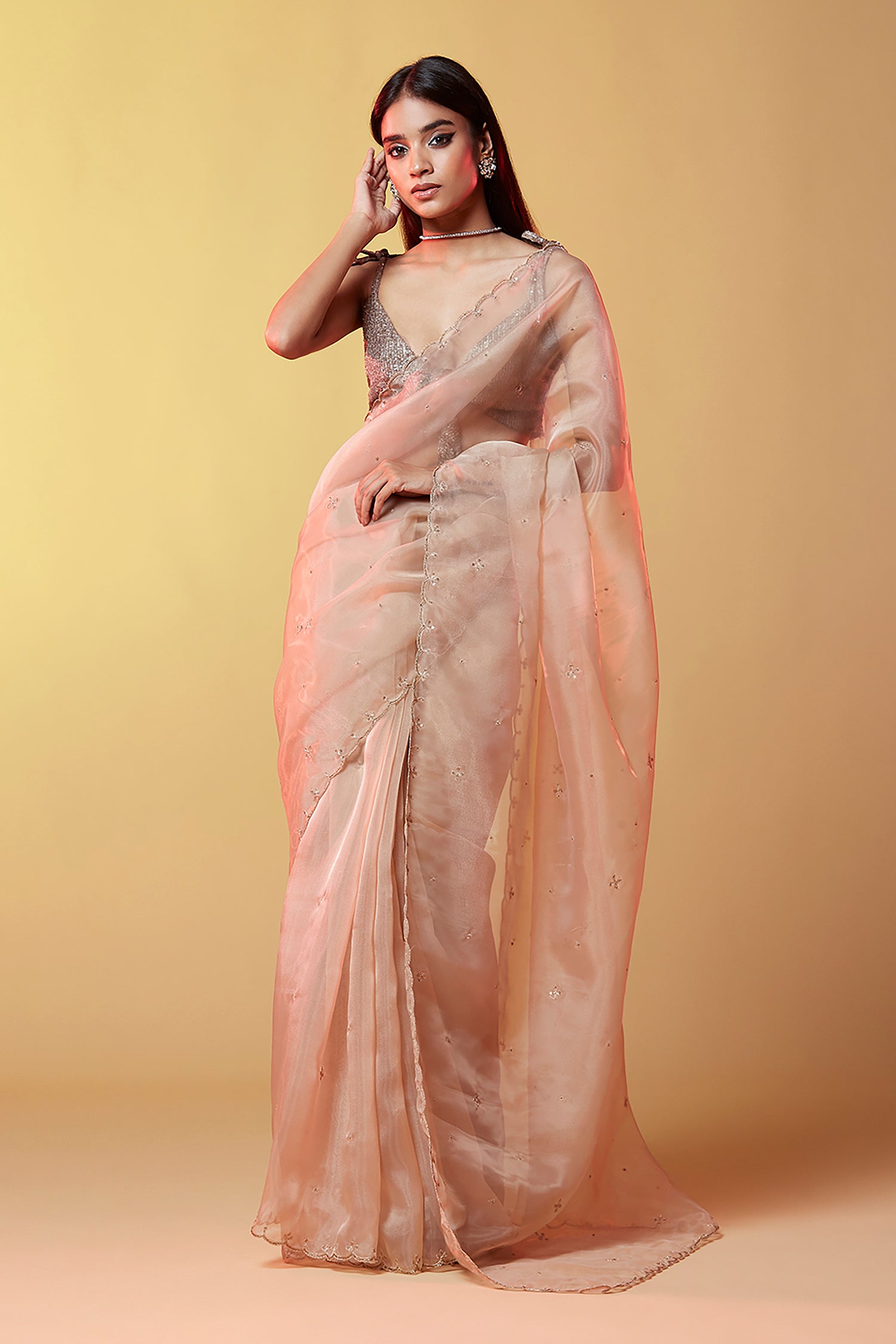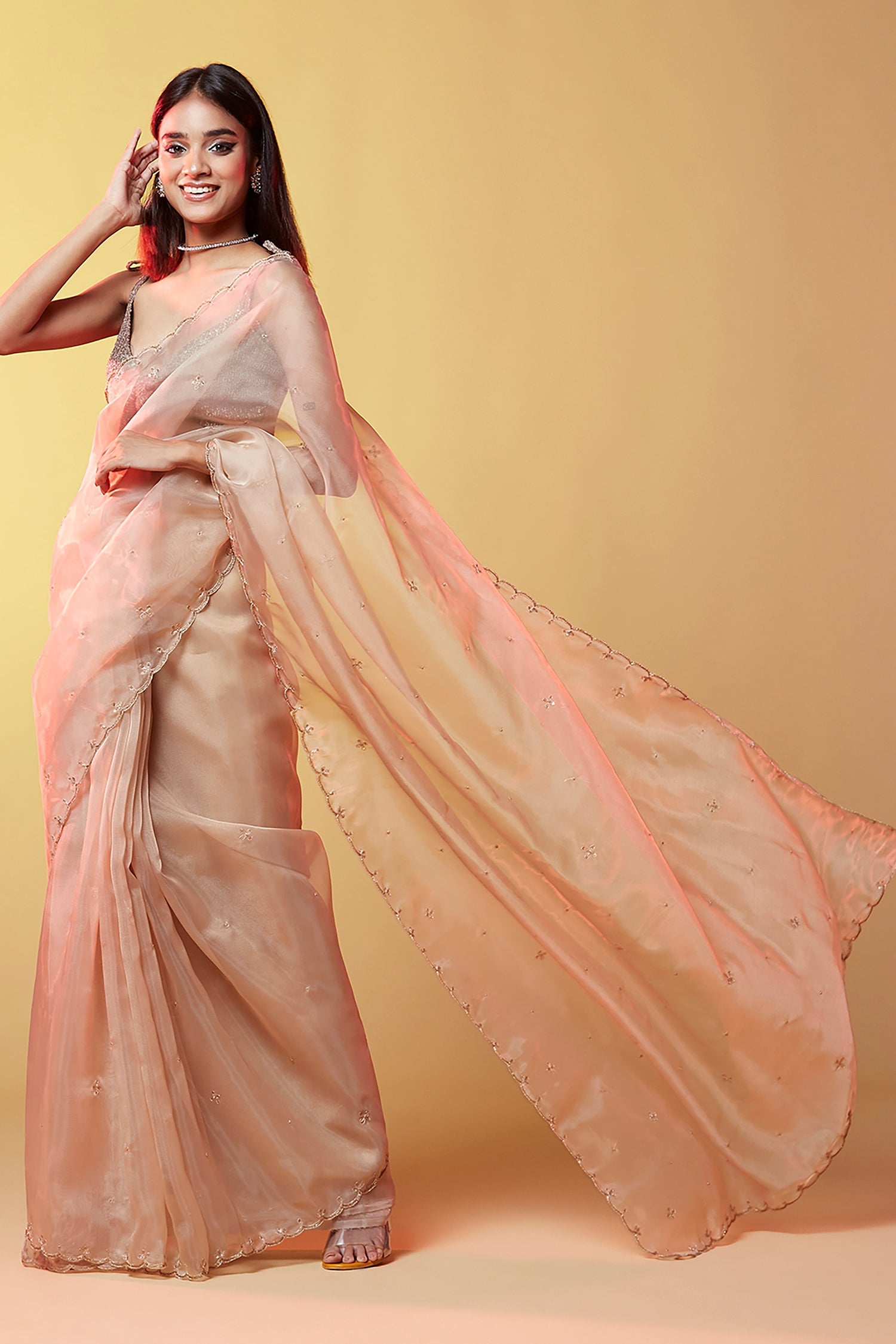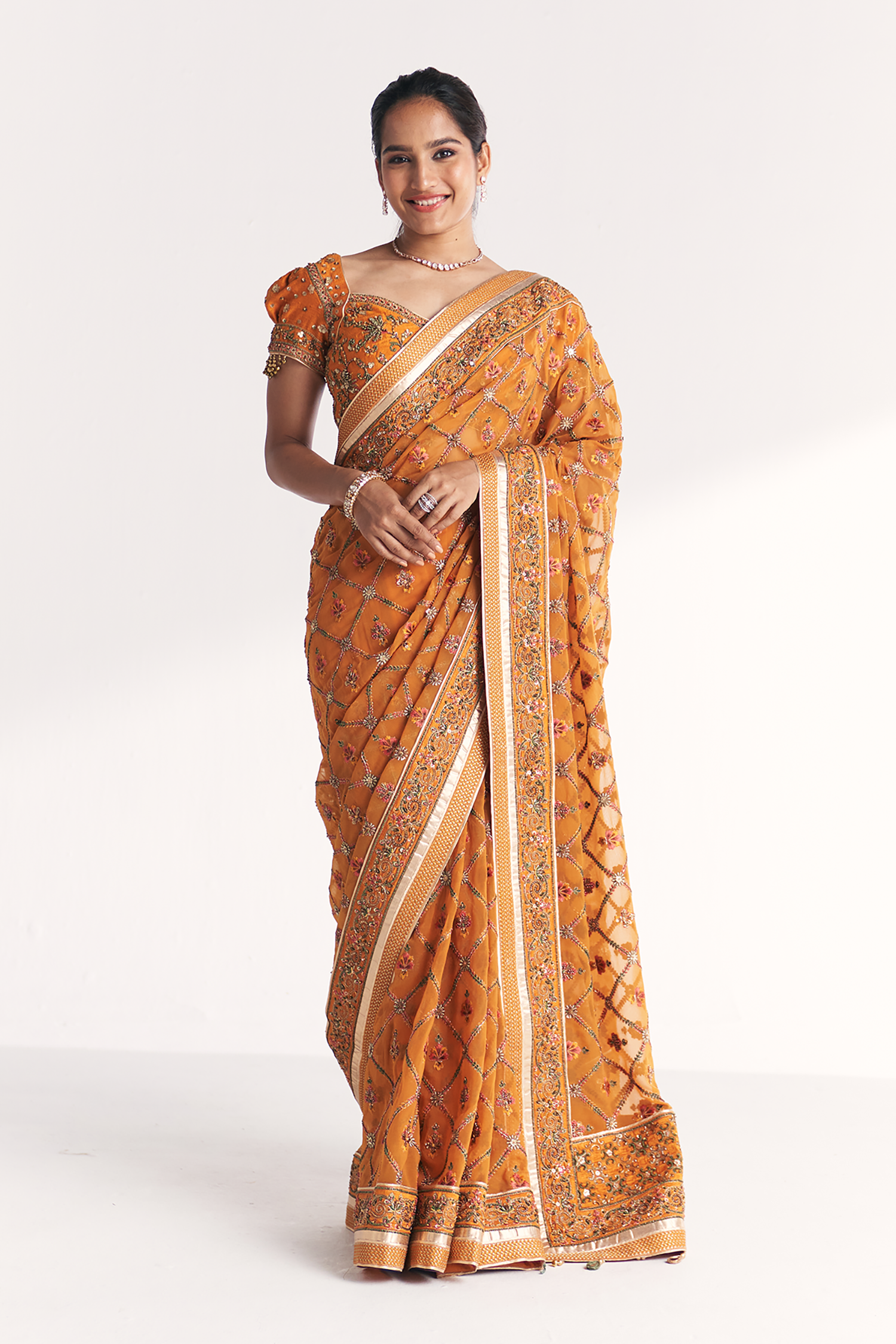 Unlike conventional sarees, indo western sarees are all about fusion. They are a seamless blend of Indian draping styles and Western silhouettes—think pre-stitched pallu, corset blouses, designer belts, and dramatic pleats. These contemporary sarees are ideal for those who want to stand out and express their individuality without straying from cultural elegance.