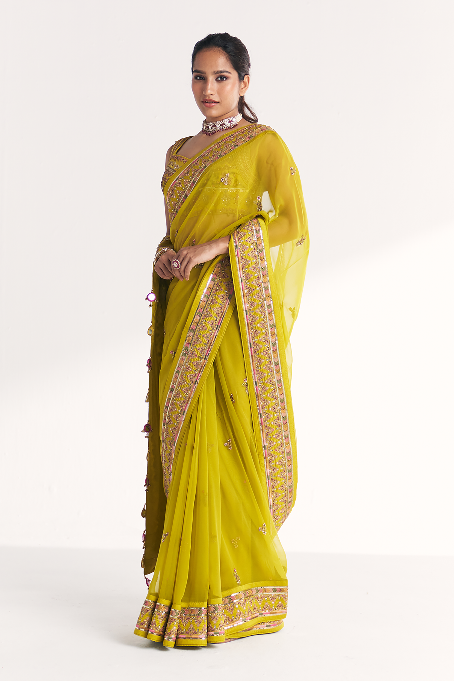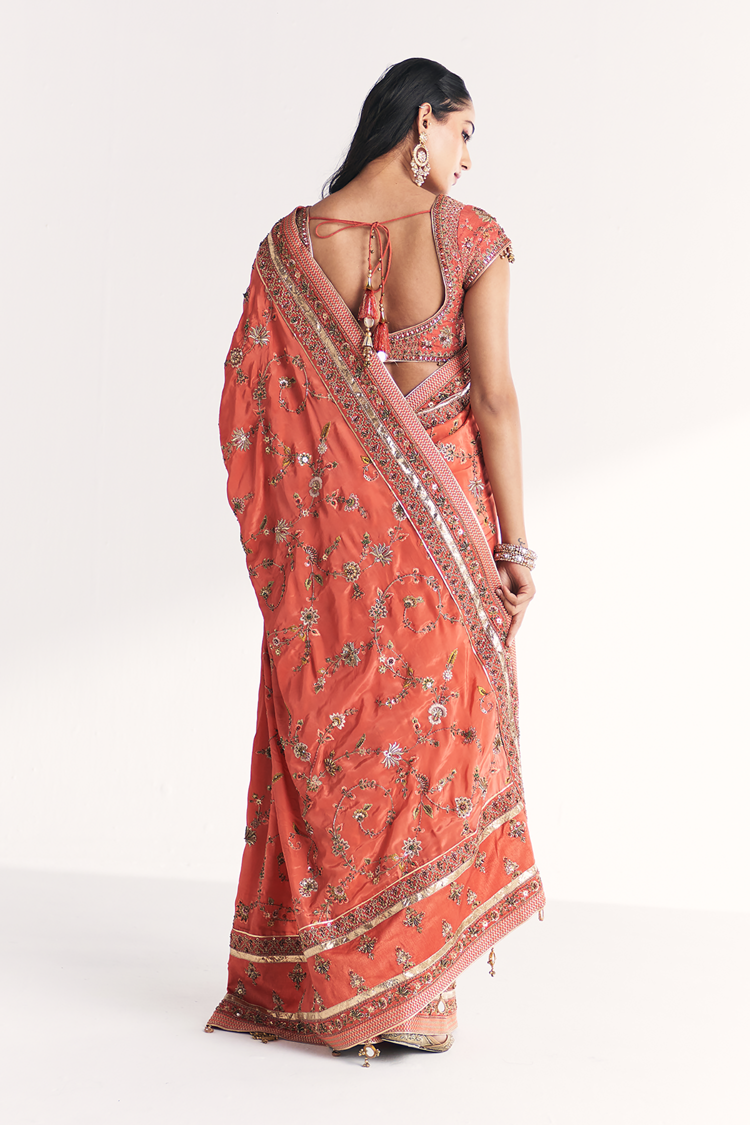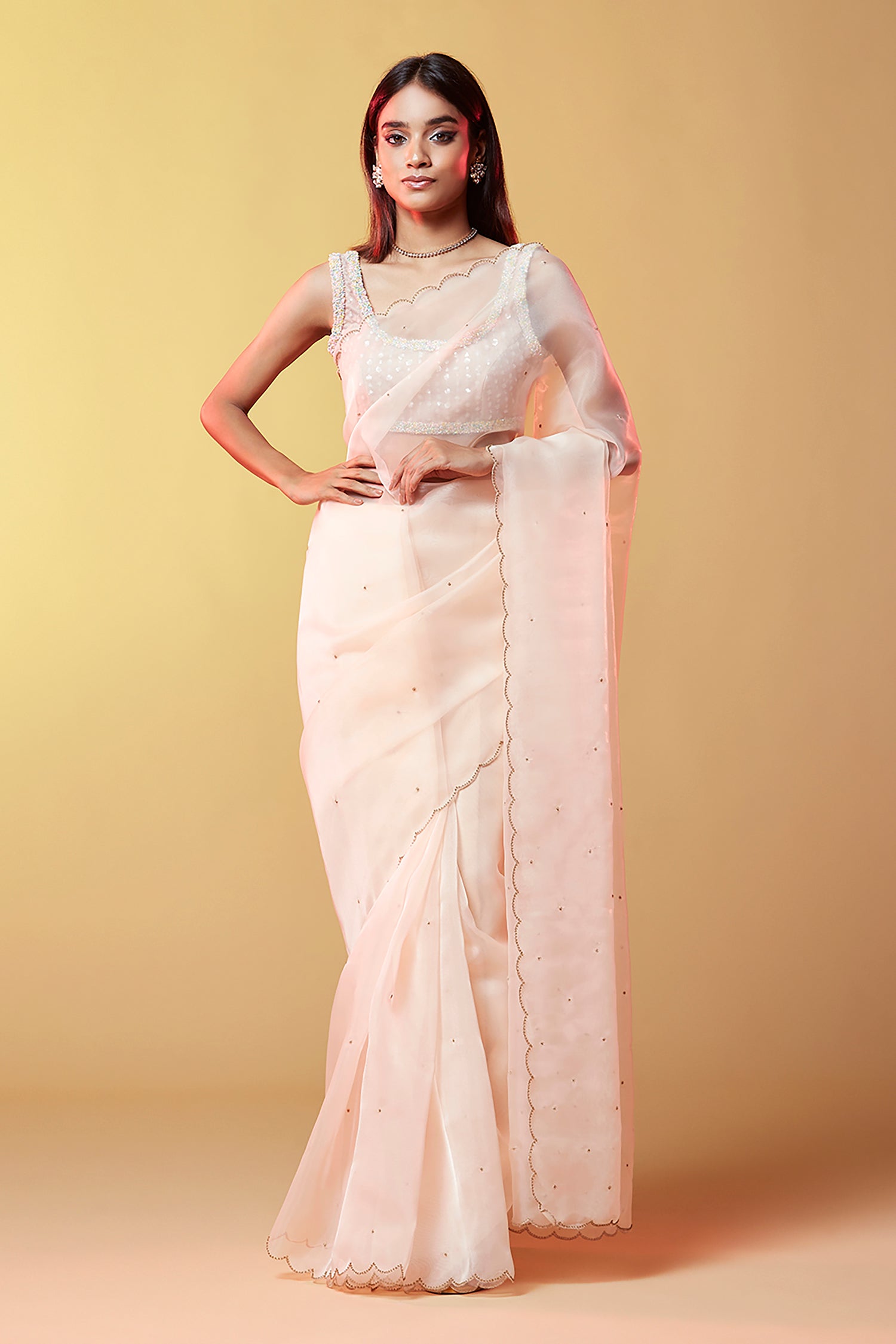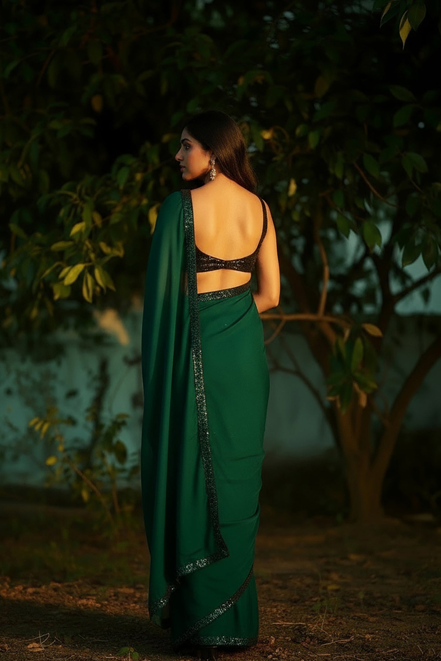 Unlike conventional sarees, indo western sarees are all about fusion. They are a seamless blend of Indian draping styles and Western silhouettes—think pre-stitched pallu, corset blouses, designer belts, and dramatic pleats. These contemporary sarees are ideal for those who want to stand out and express their individuality without straying from cultural elegance.