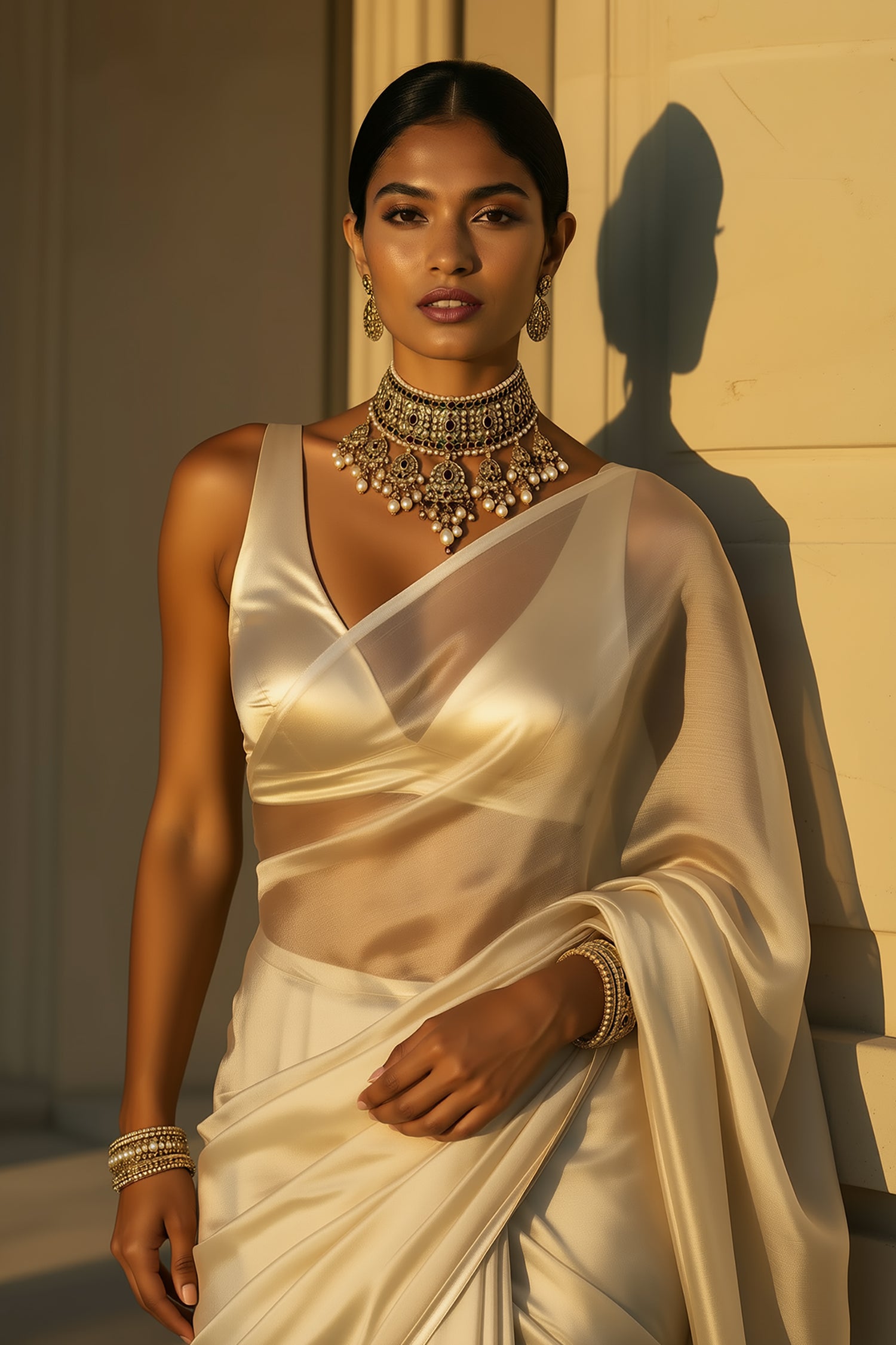 To explore our curated collection of luxurious silks, visit our Silk Sarees Collection. From Banarasi to Kanjeevaram-inspired textures, these sarees exude class while offering a modern aesthetic when styled with indo western elements.