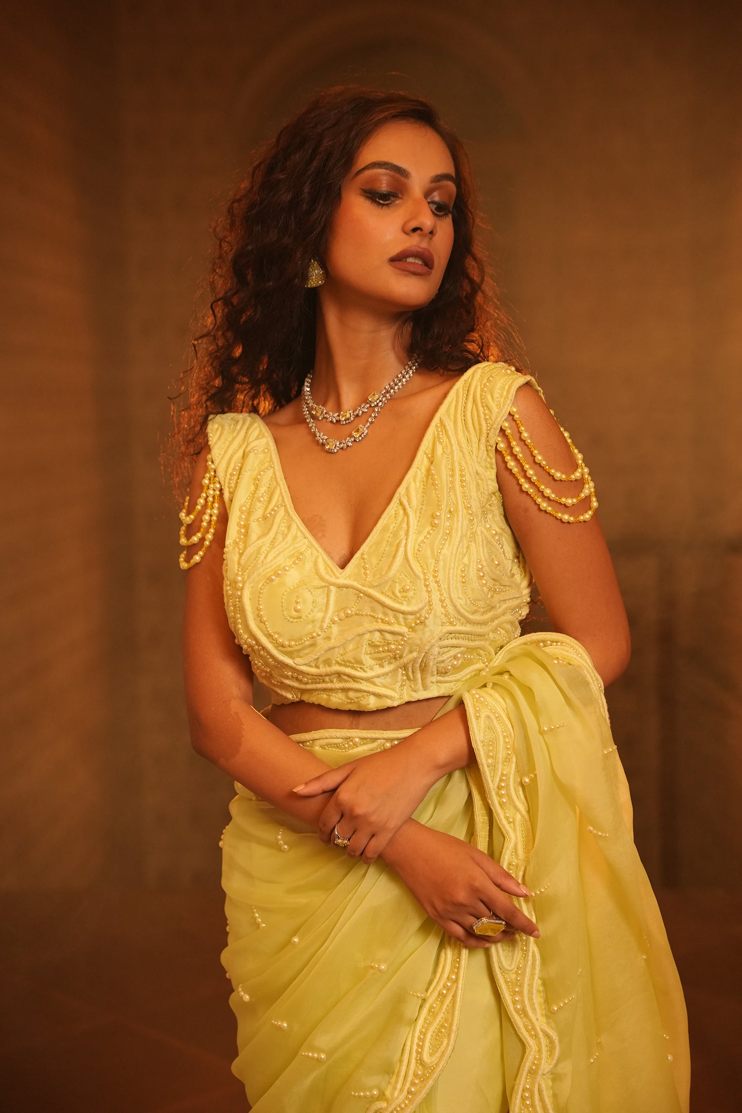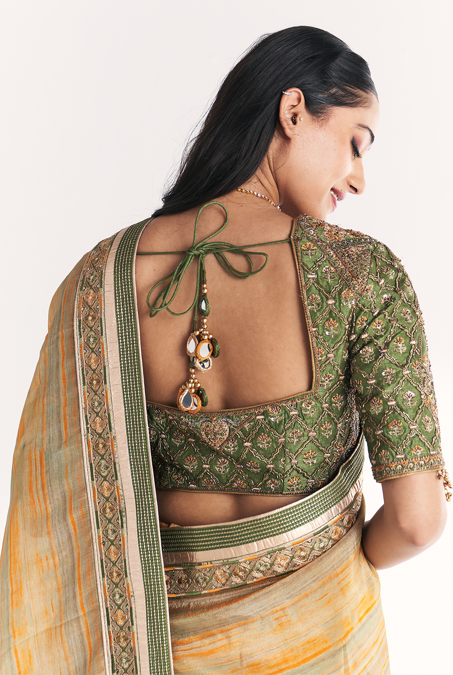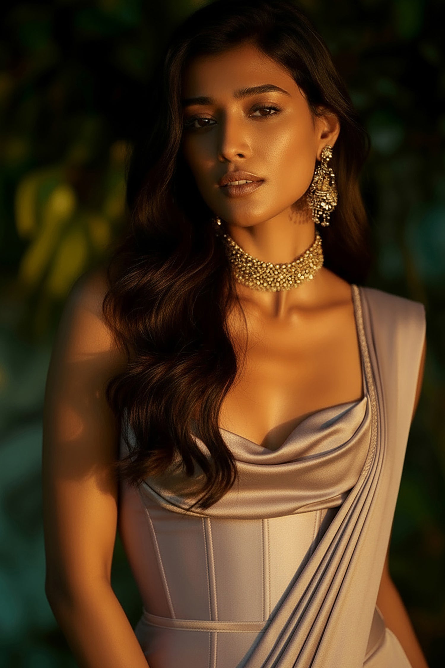 One of the trendiest ways to wear premium Indo-Western sarees is to pair them with a corset-style blouse. This fusion not only accentuates your waist but also brings a modern touch to your ethnic look.