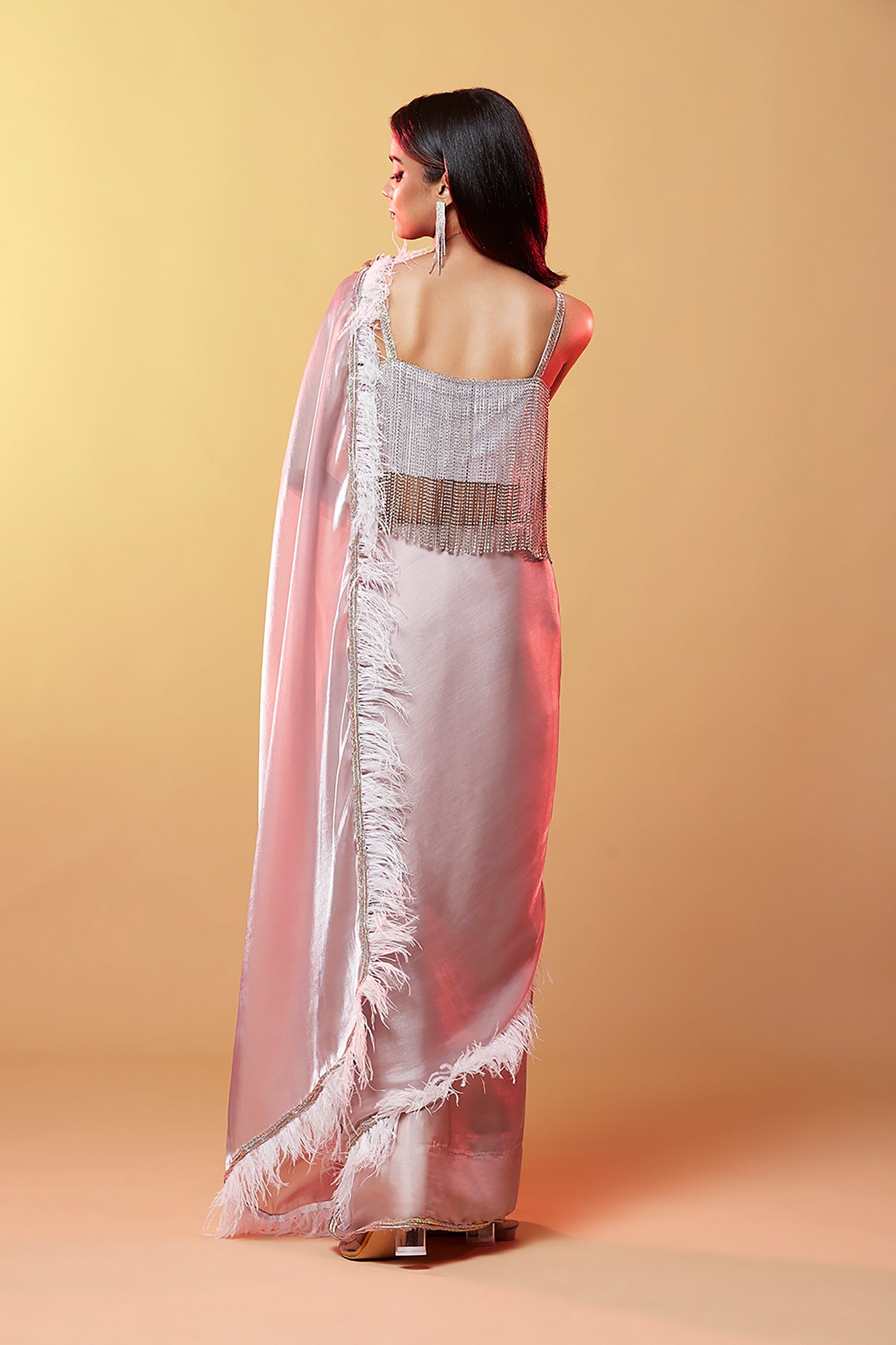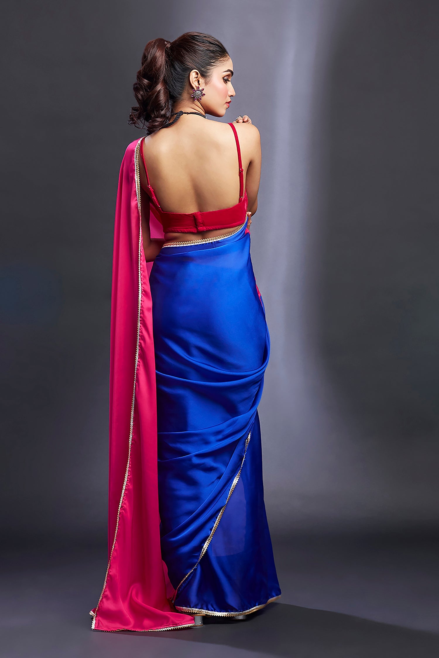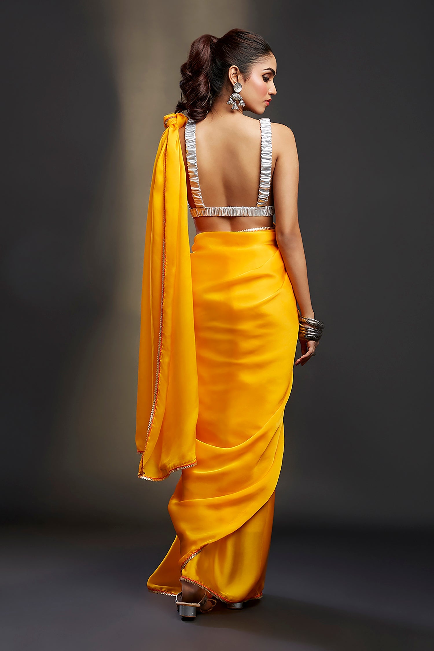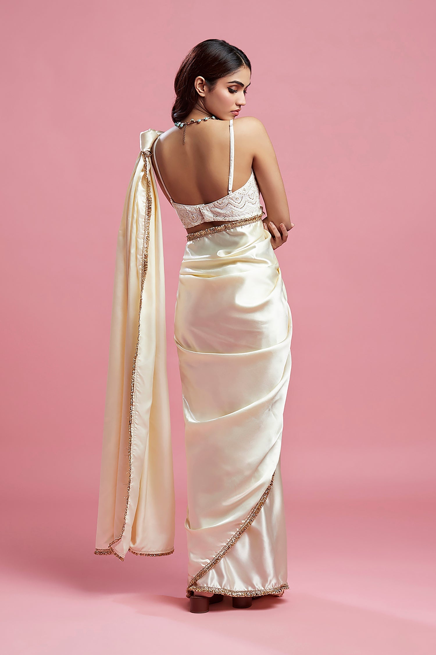 An Indo-Western saree is a fusion outfit that combines the traditional Indian saree with contemporary design elements such as pre-stitched pleats, corset blouses, or Western-style silhouettes, making it easier to wear and style.