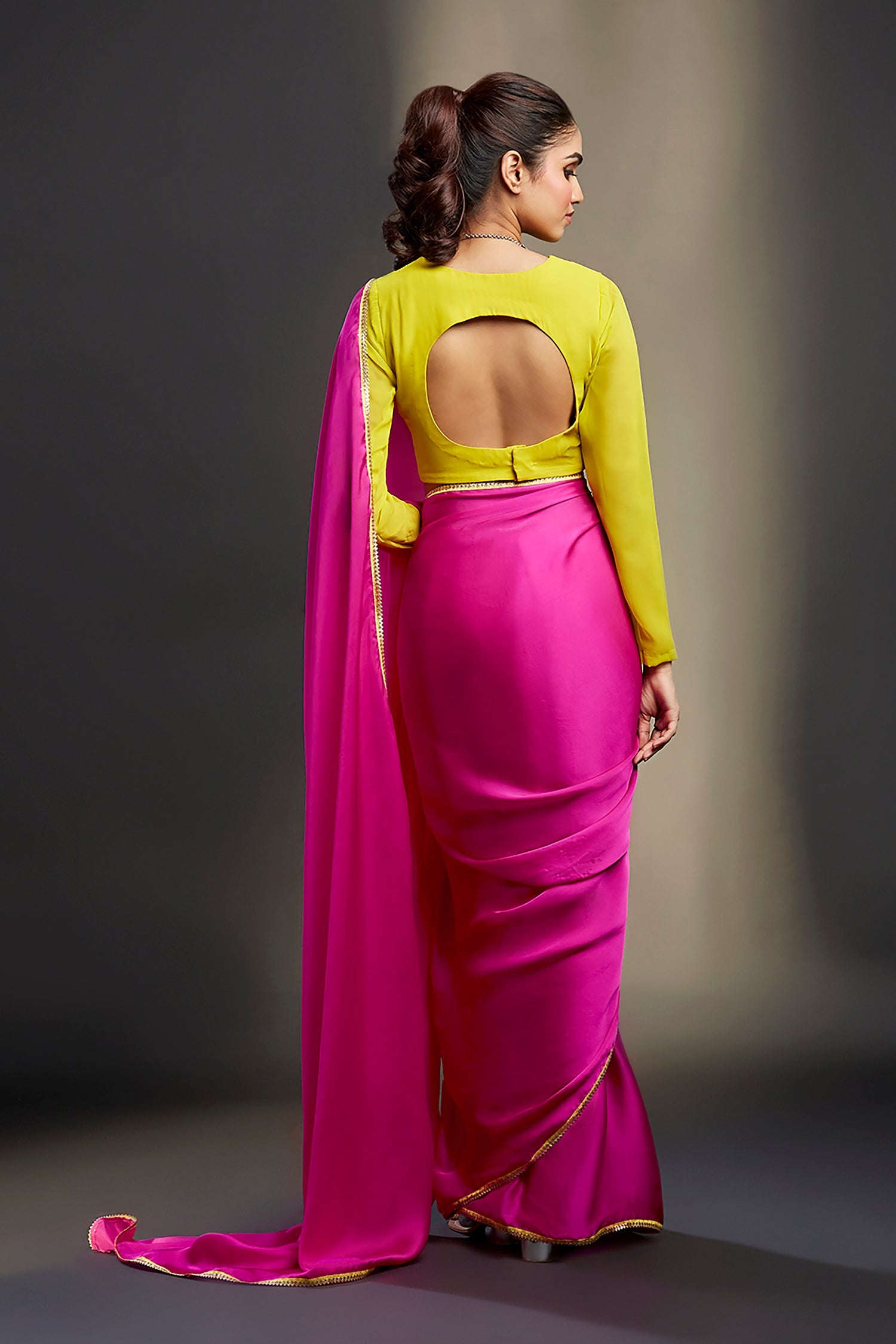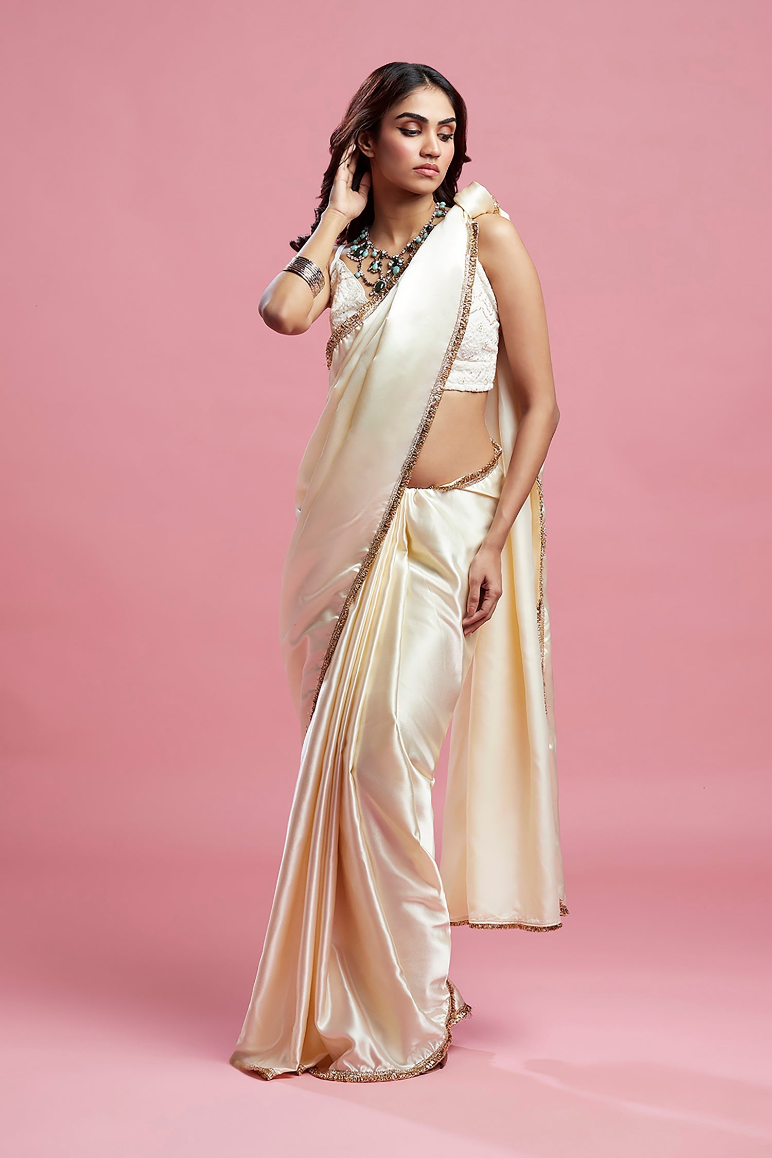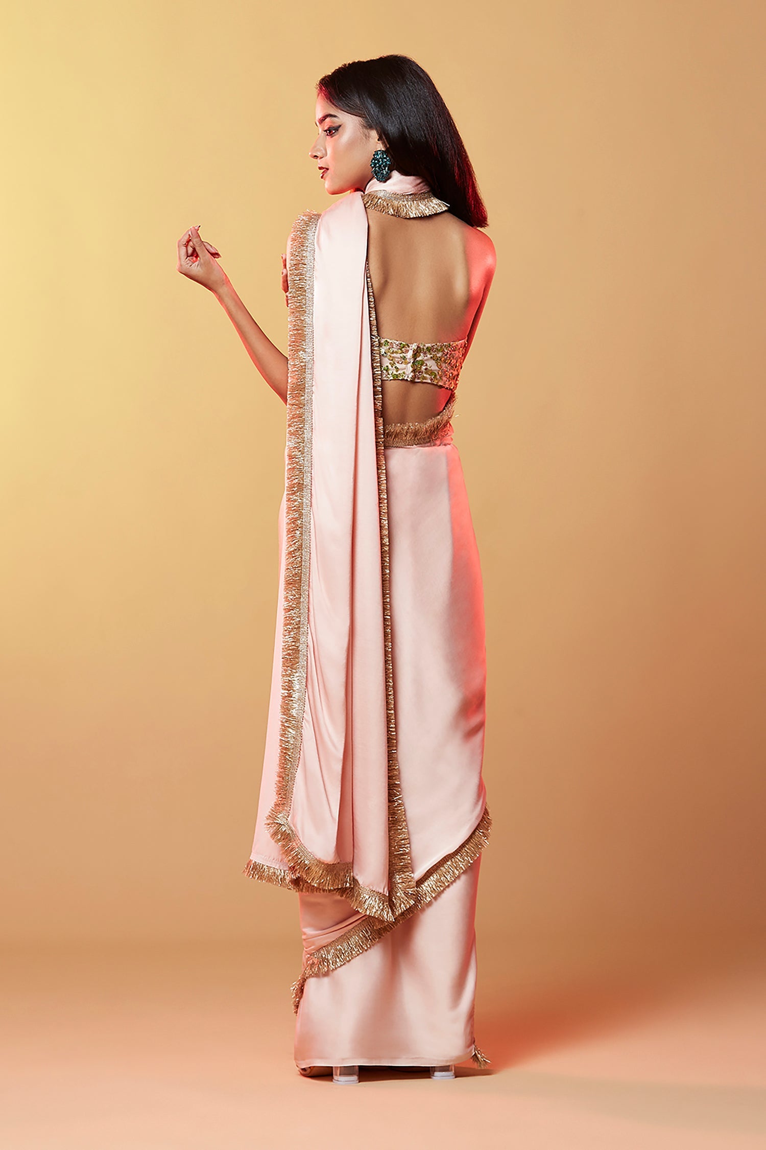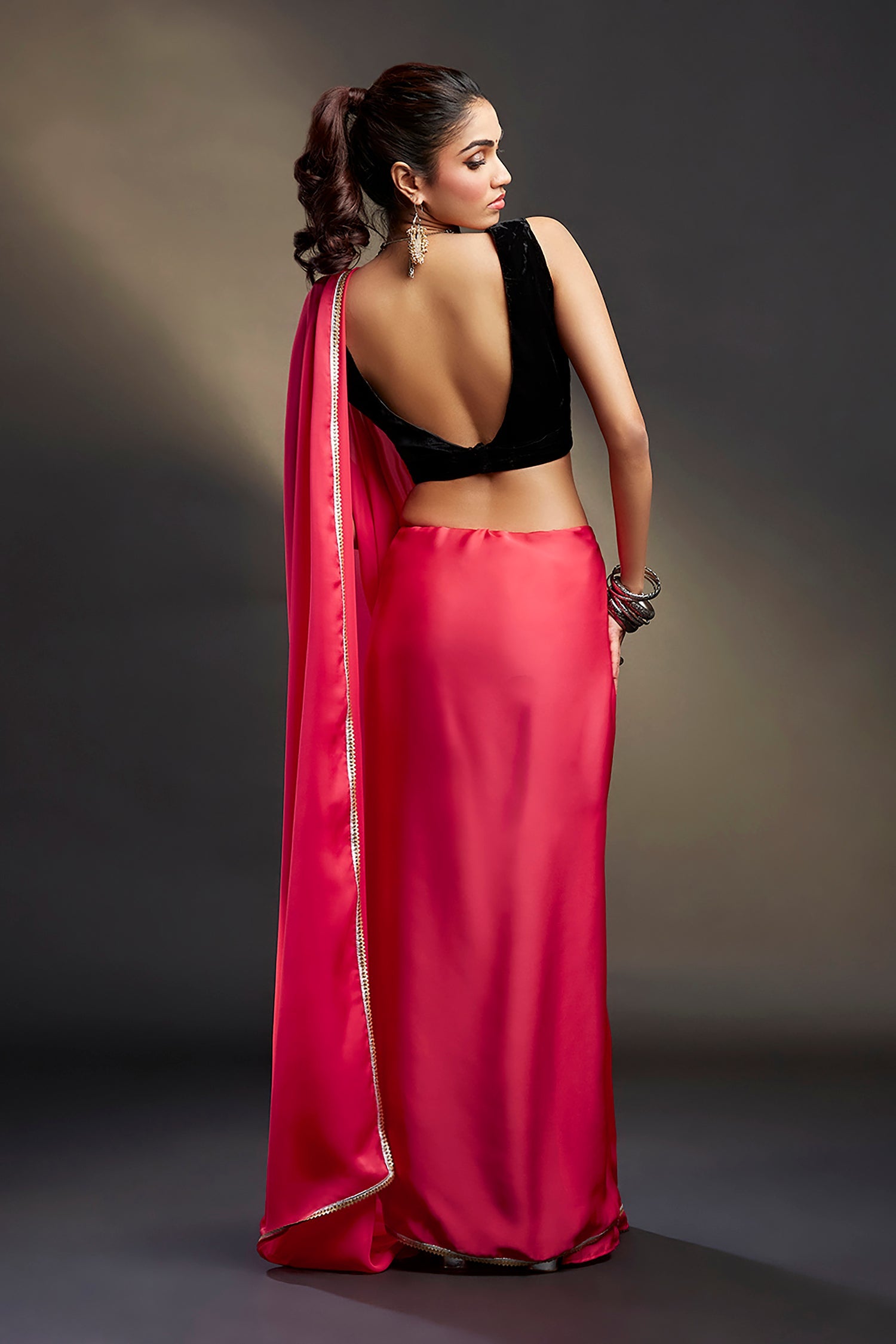 An Indo-Western saree is a fusion outfit that combines the traditional Indian saree with contemporary design elements such as pre-stitched pleats, corset blouses, or Western-style silhouettes, making it easier to wear and style.