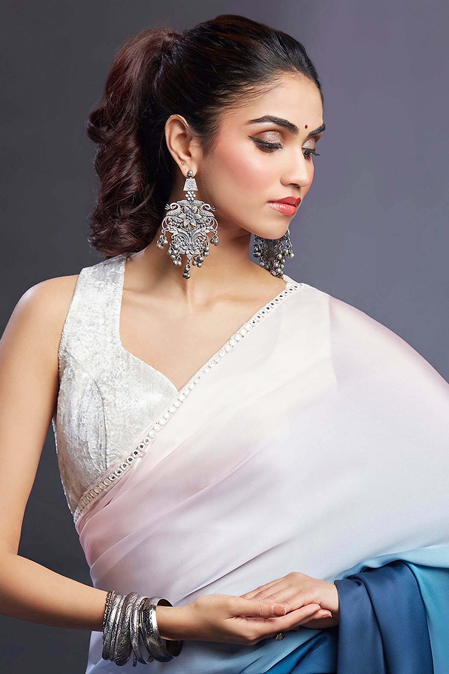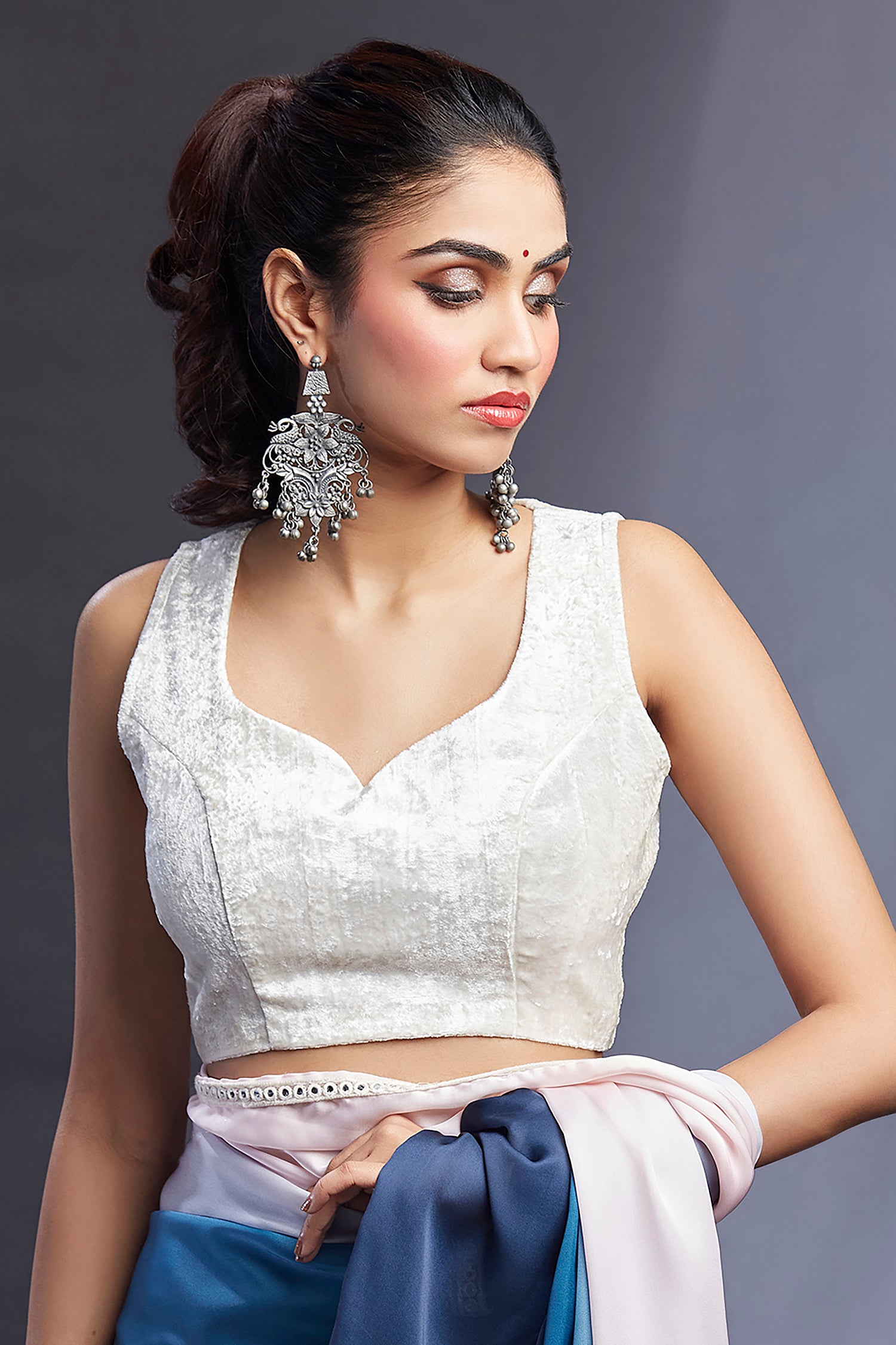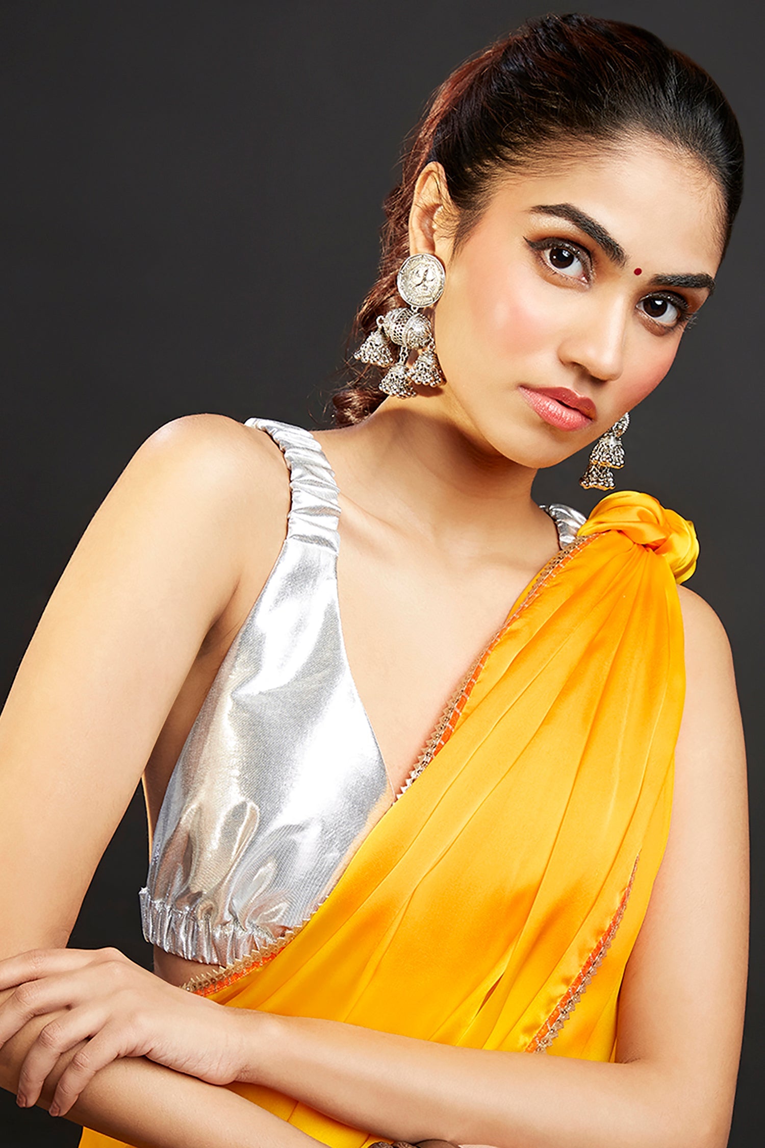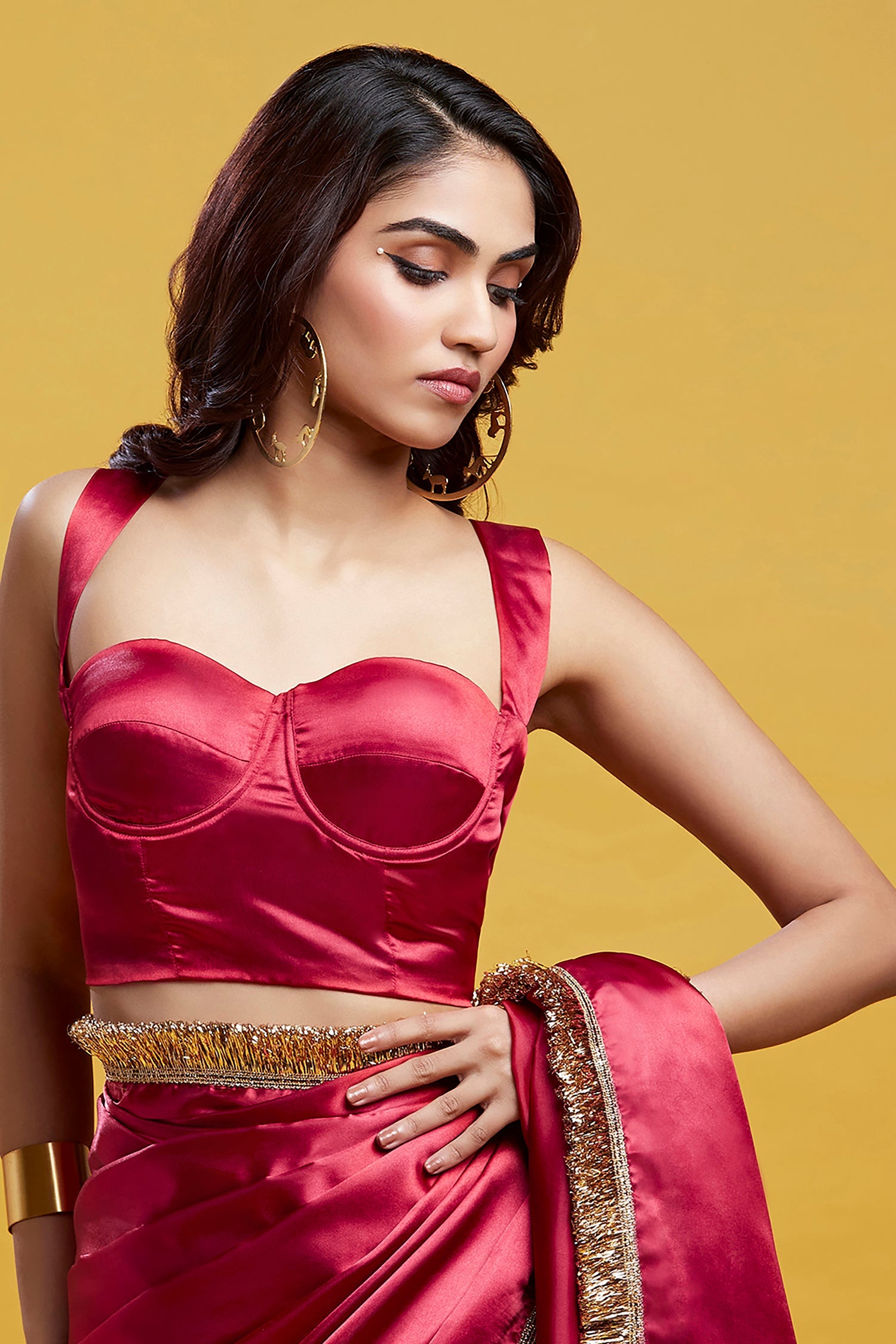 One of the trendiest ways to wear premium Indo-Western sarees is to pair them with a corset-style blouse. This fusion not only accentuates your waist but also brings a modern touch to your ethnic look.