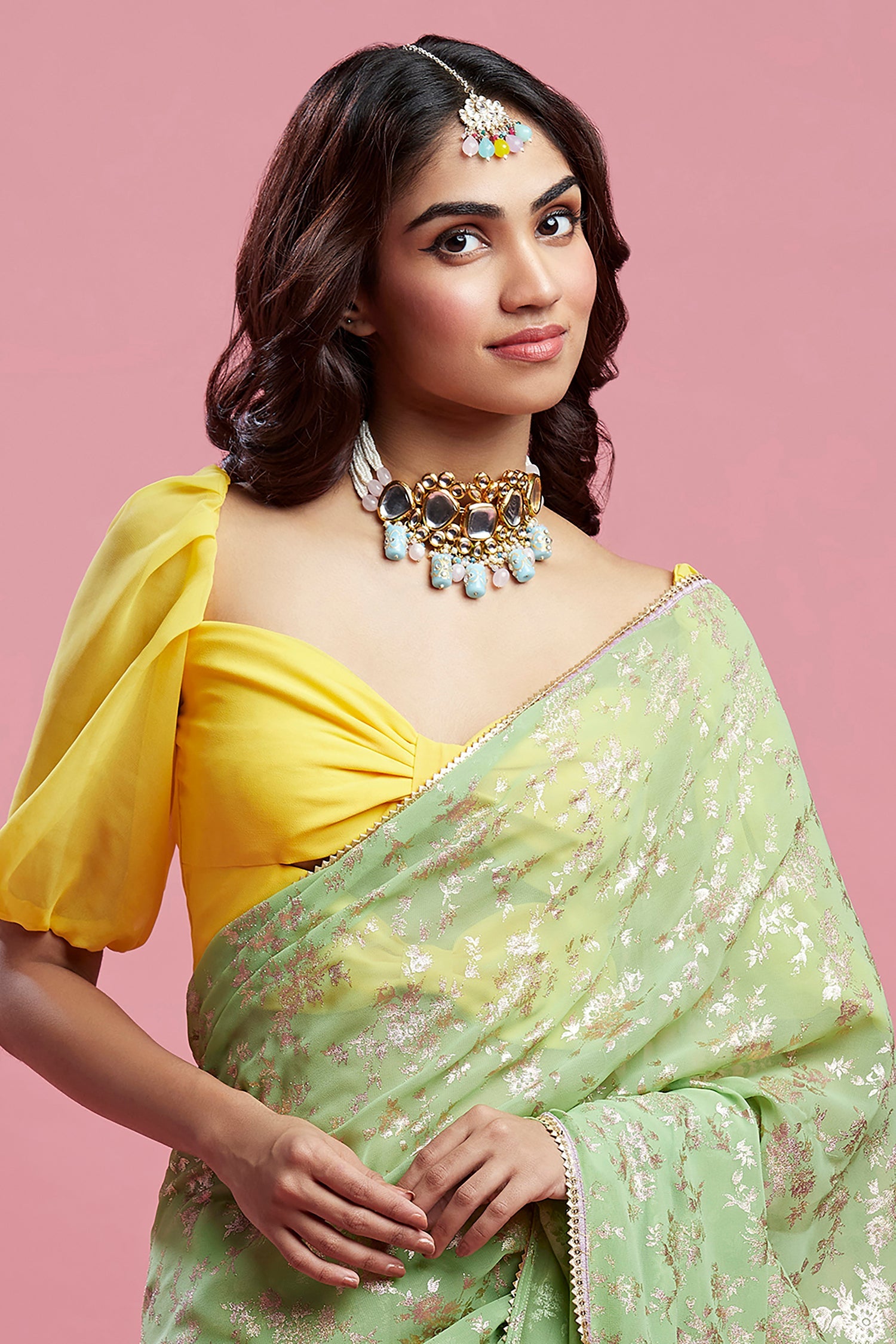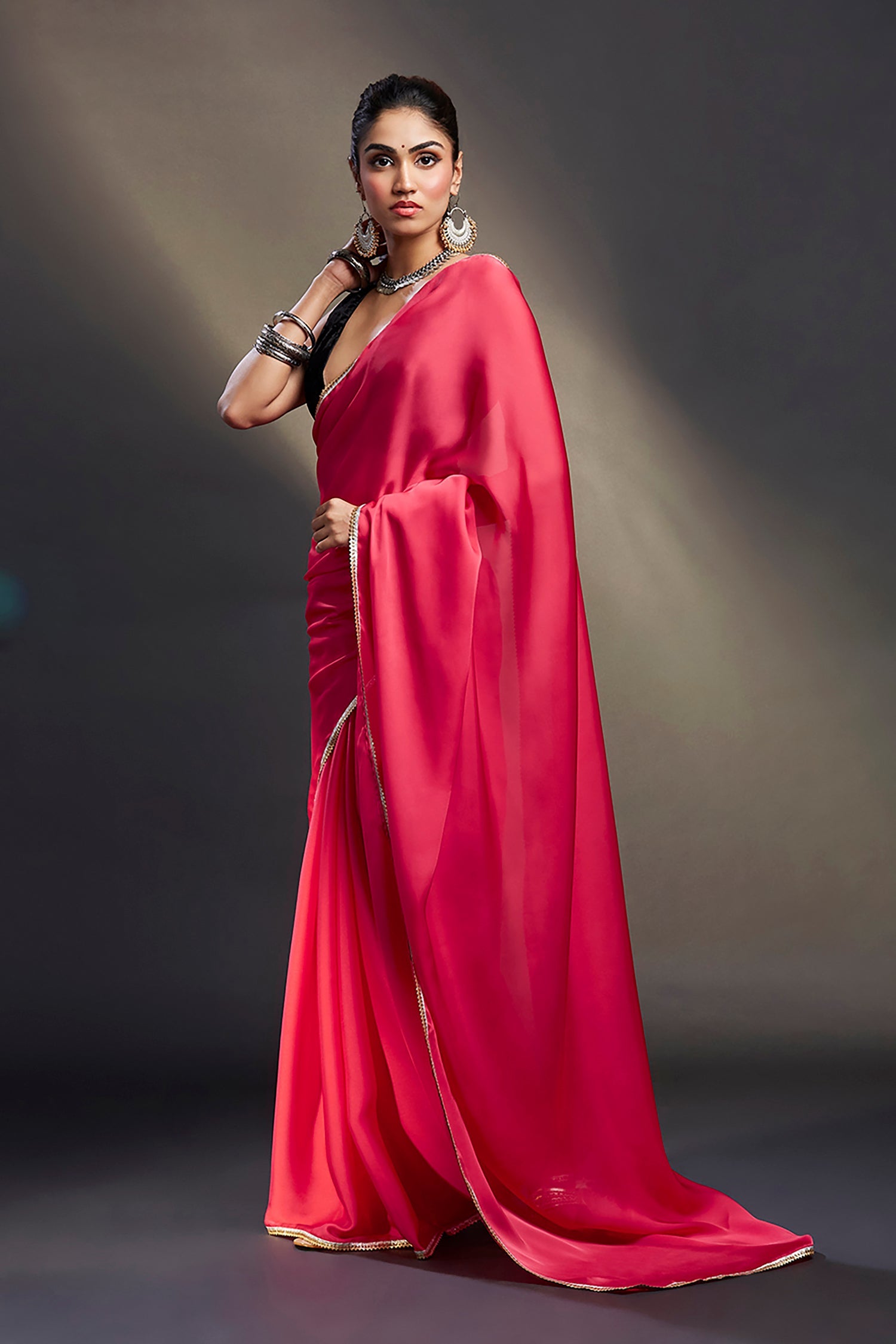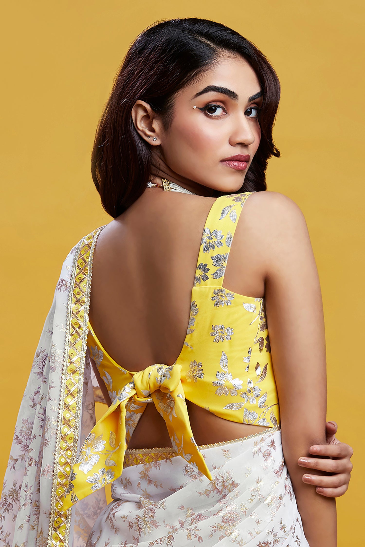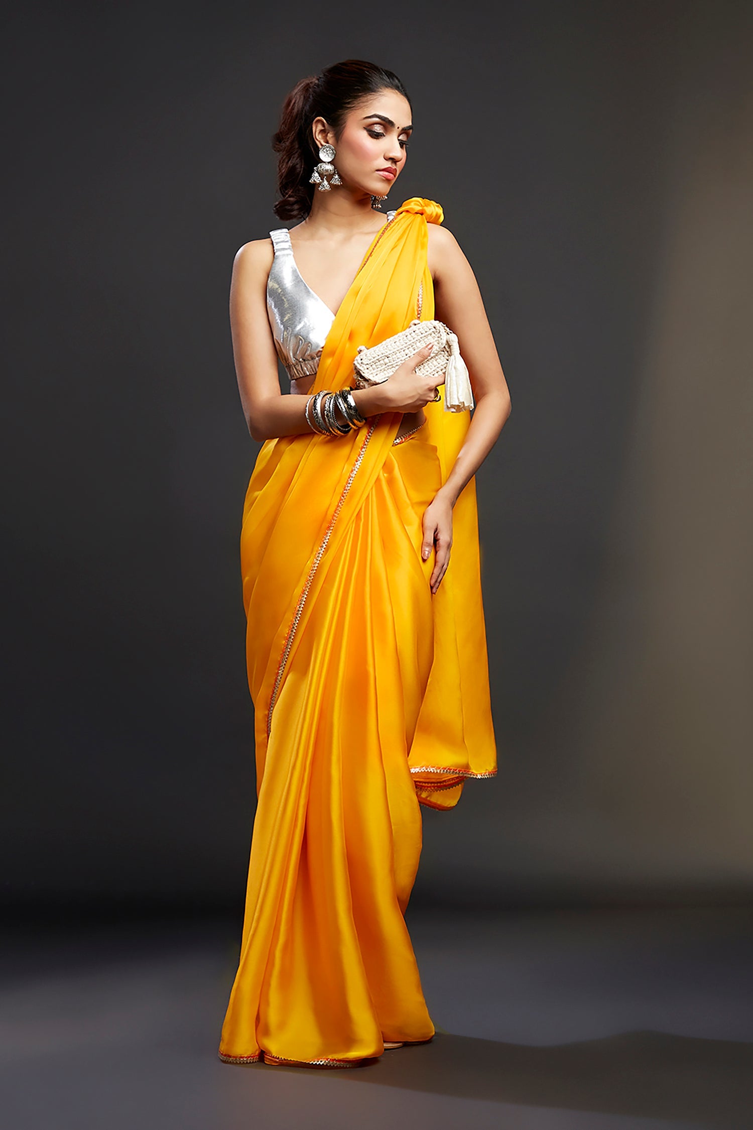 One of the trendiest ways to wear premium Indo-Western sarees is to pair them with a corset-style blouse. This fusion not only accentuates your waist but also brings a modern touch to your ethnic look.