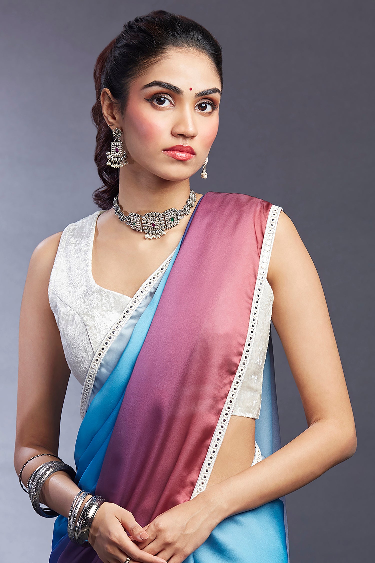 At Fashefy, Women’s indo western sarees are available in a wide range of premium fabrics including chiffon, georgette, crepe, and our most luxurious offering—silk. The smooth texture and regal drape of silk sarees make them a favorite for formal gatherings and celebratory events.