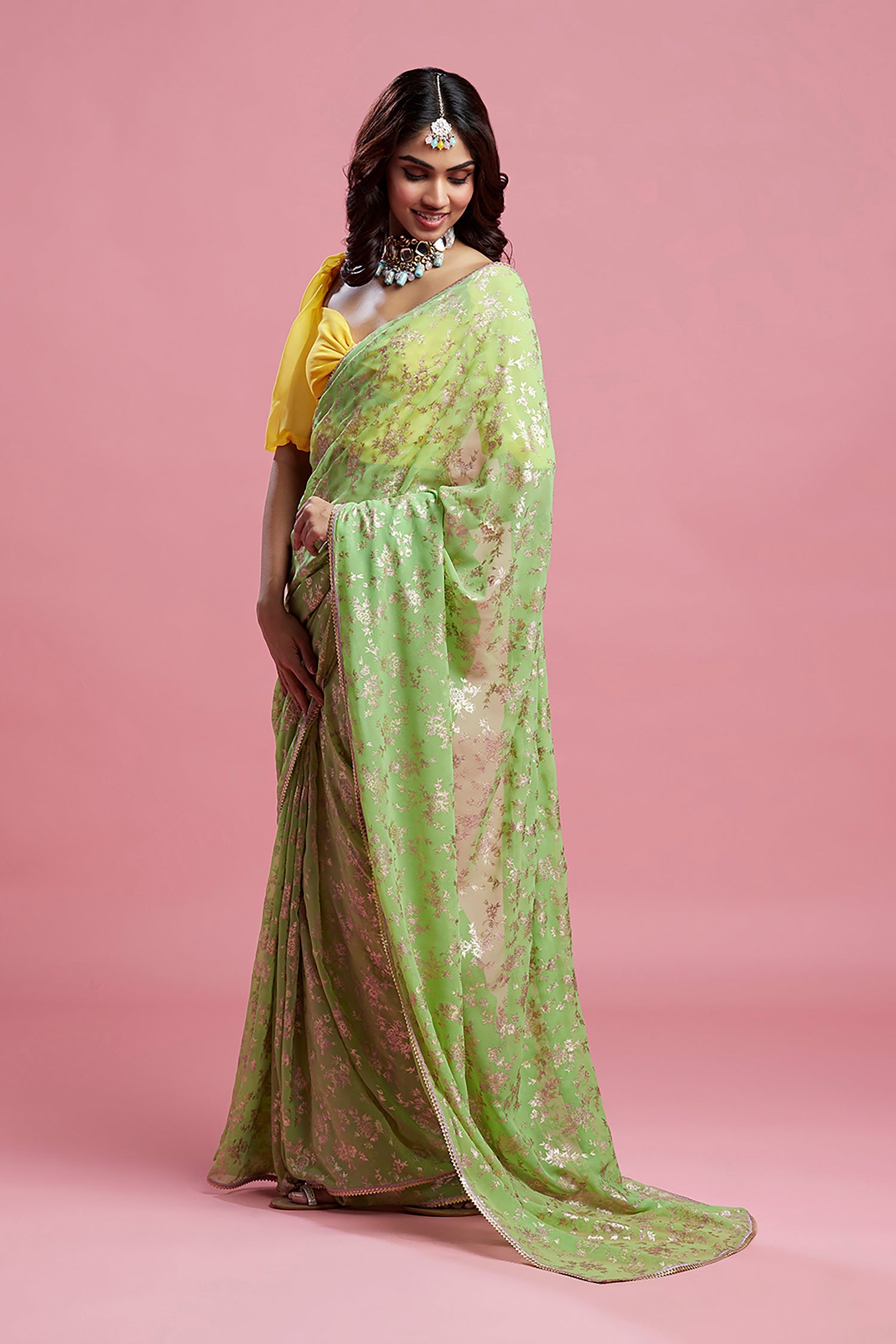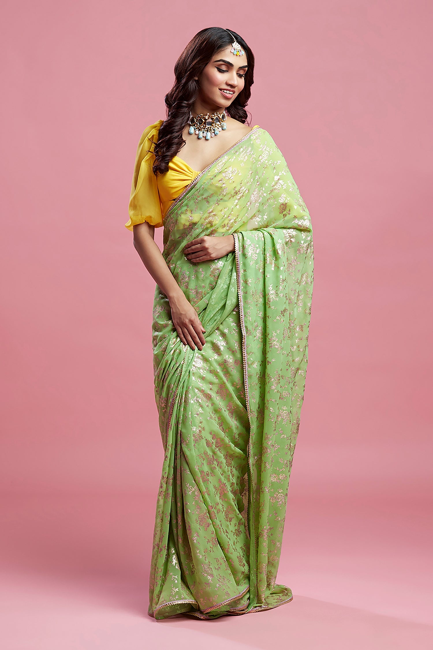 Unlike conventional sarees, indo western sarees are all about fusion. They are a seamless blend of Indian draping styles and Western silhouettes—think pre-stitched pallu, corset blouses, designer belts, and dramatic pleats. These contemporary sarees are ideal for those who want to stand out and express their individuality without straying from cultural elegance.