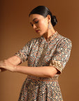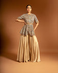 Beige Embroidered Ajrakh Peplum Jumpsuit