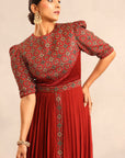 Maroon Ajrakh Embellished Yoke Gathered Dress