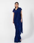 Exude Elegance in This Blue Drape Saree Set, Beautifully Enhanced With Detailed Embellishments for a Striking and Refined Look