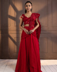 Romantic Red Embellished Drape Saree