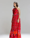 This 3-piece set will be your shield this summer wedding SZN! The hand draped bodice with hand embroidered latkans and a voluminous placement printed kalidar skirt will elevate your look in seconds!