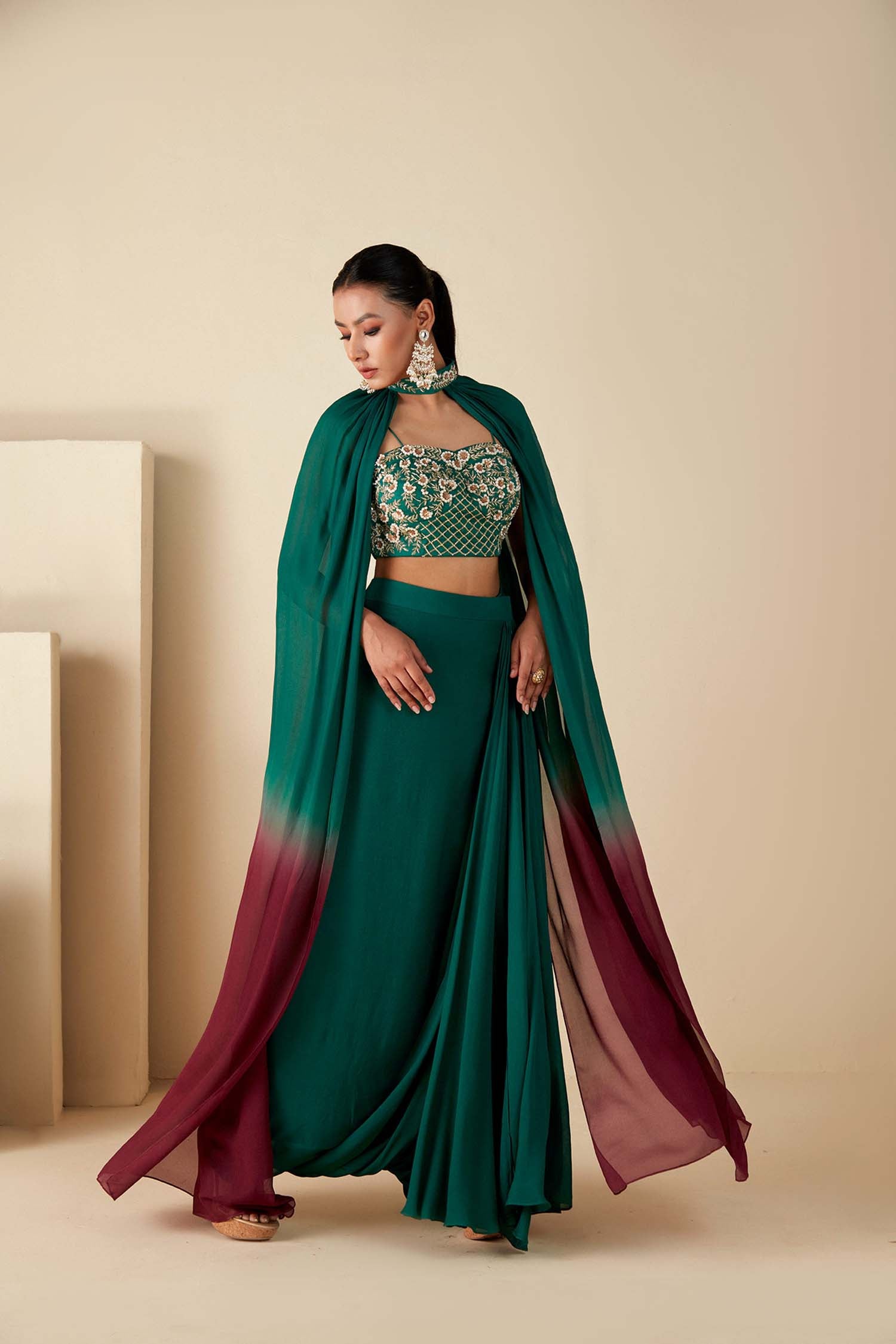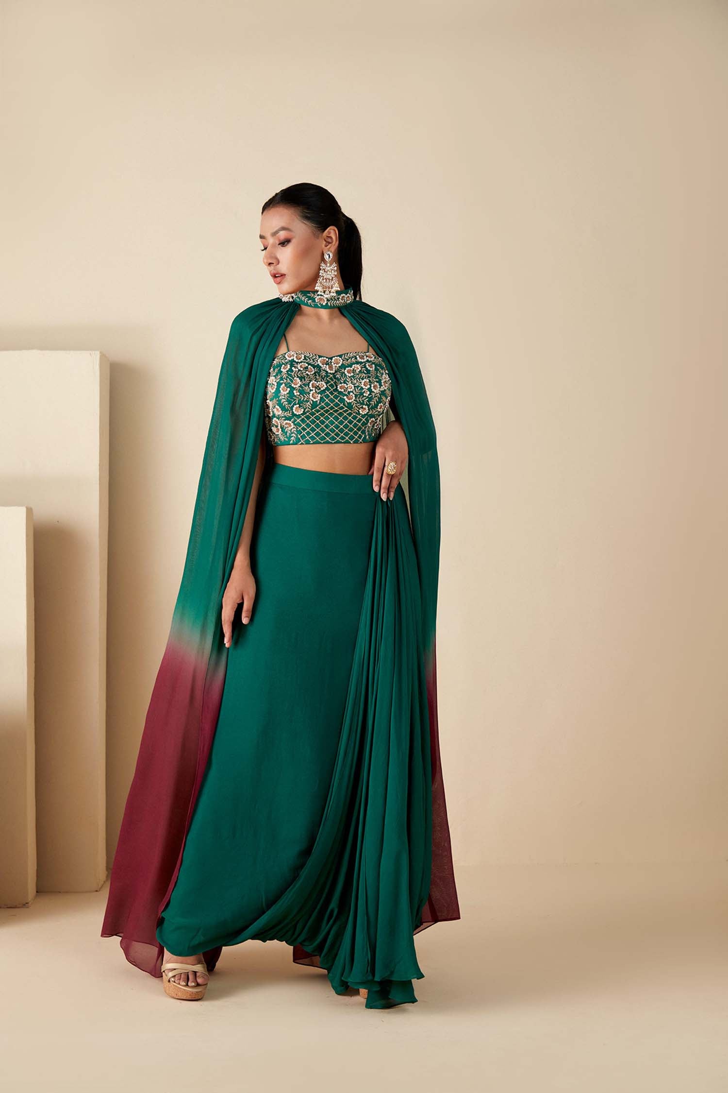 Drape Skirt Set with Ruffle Dupatta and Crop Top