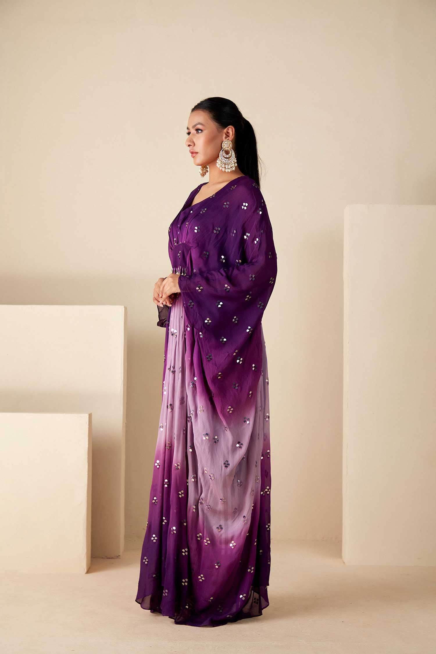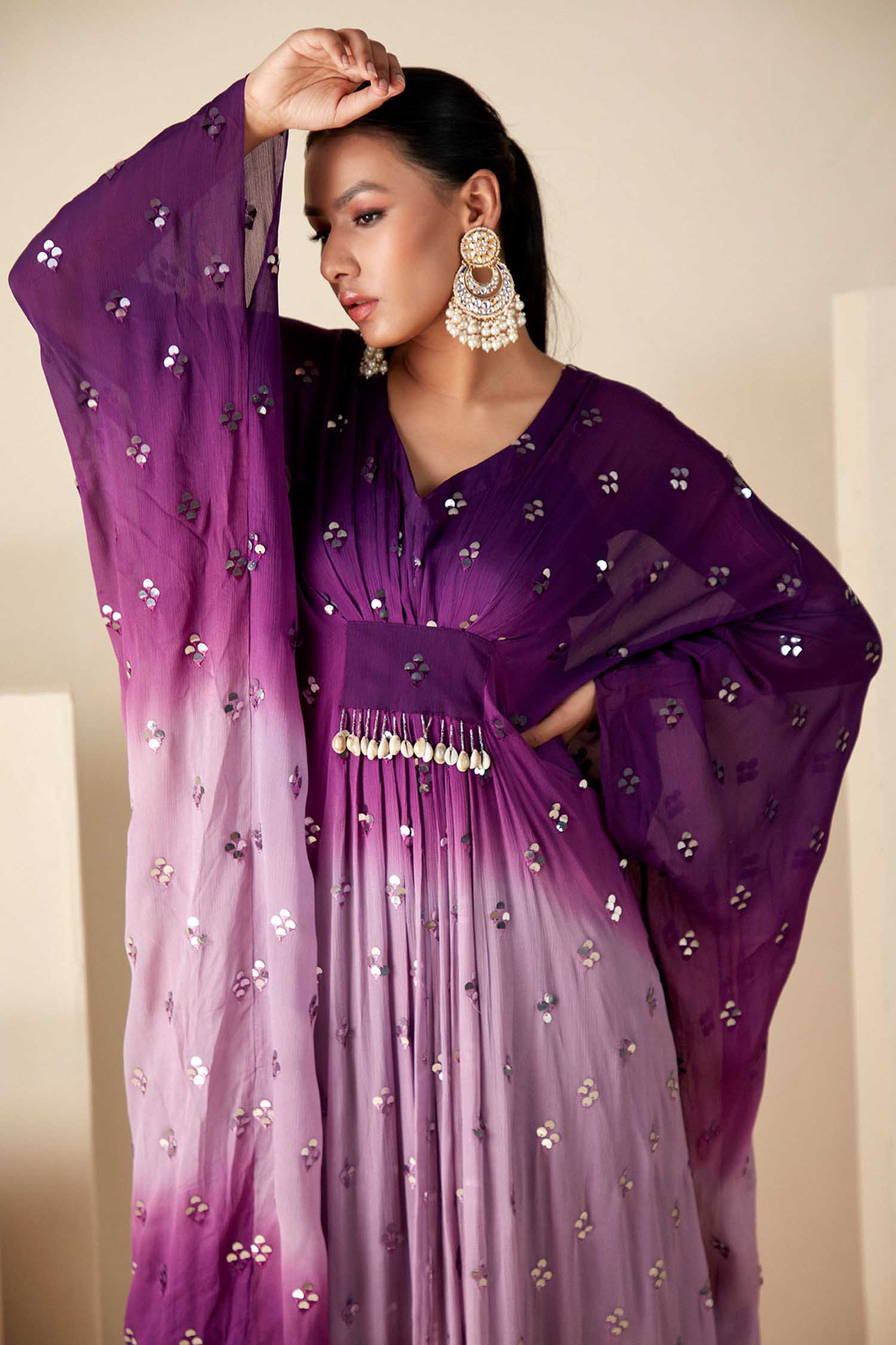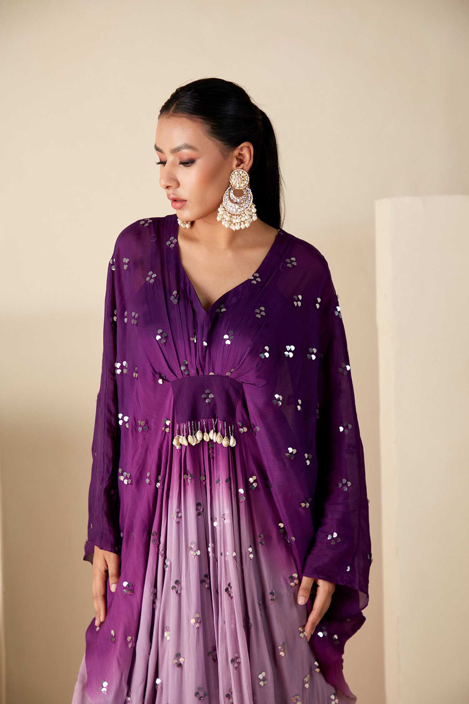 Sequin Embroidered Ombre Anarkali with Pleated Flare