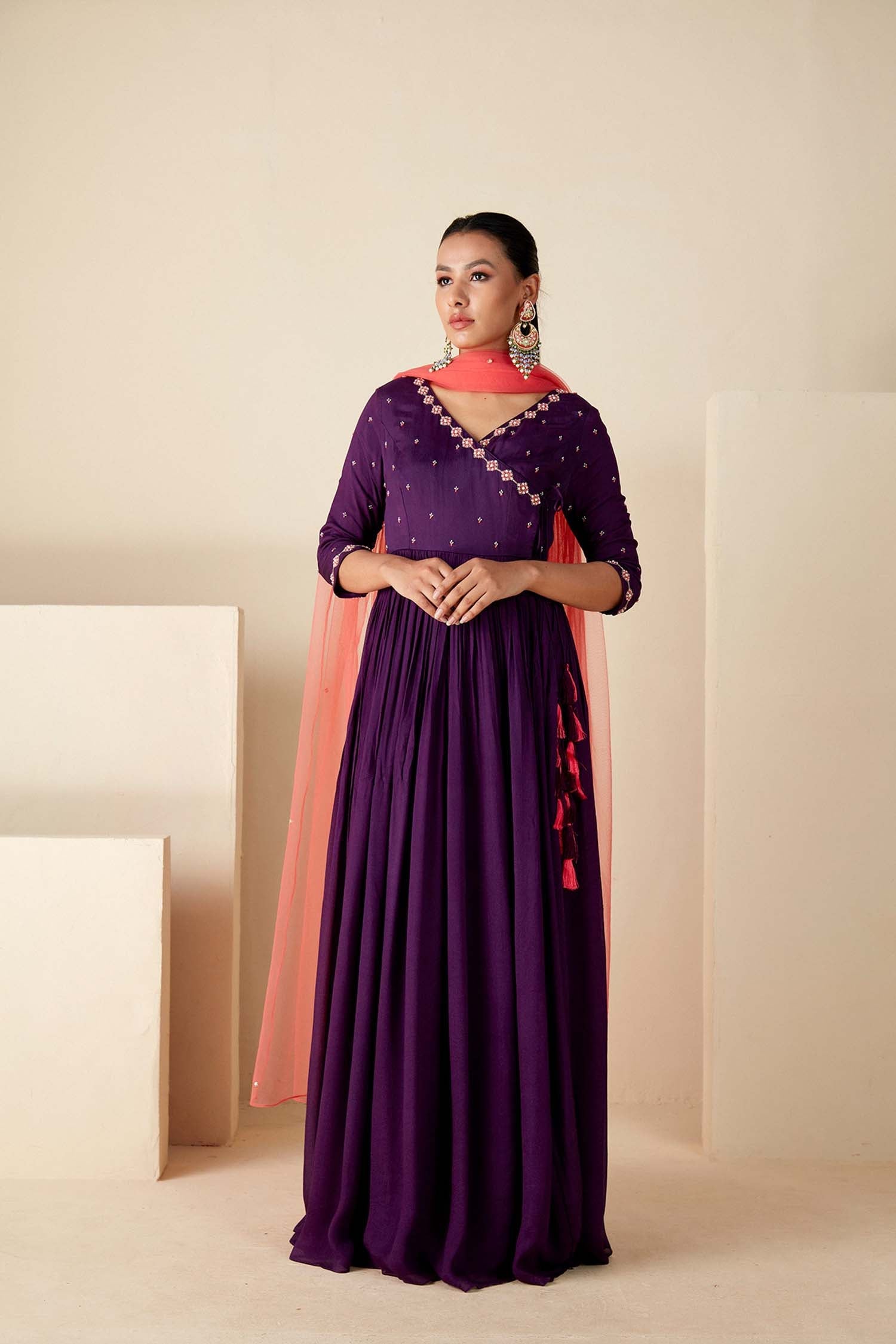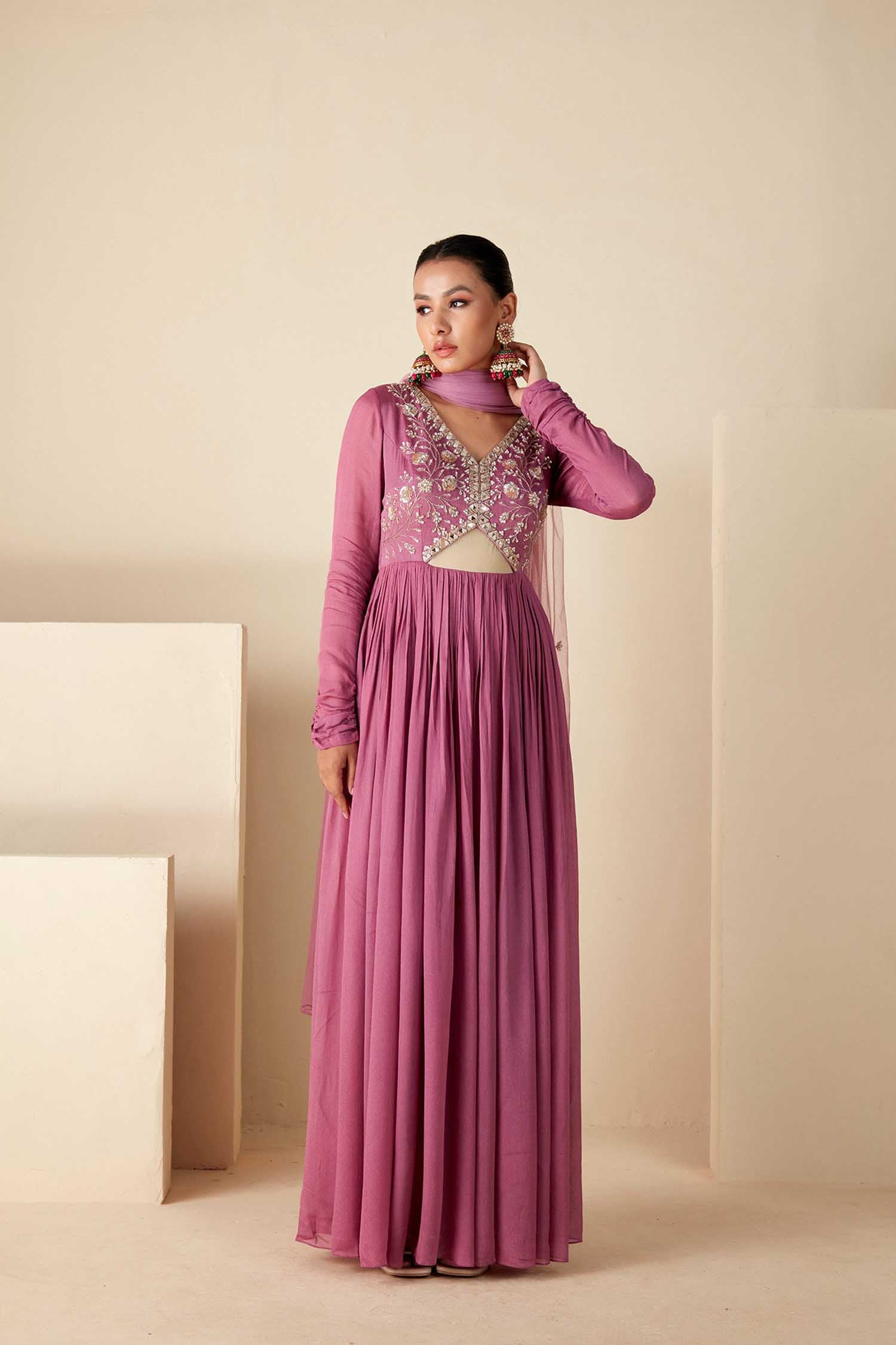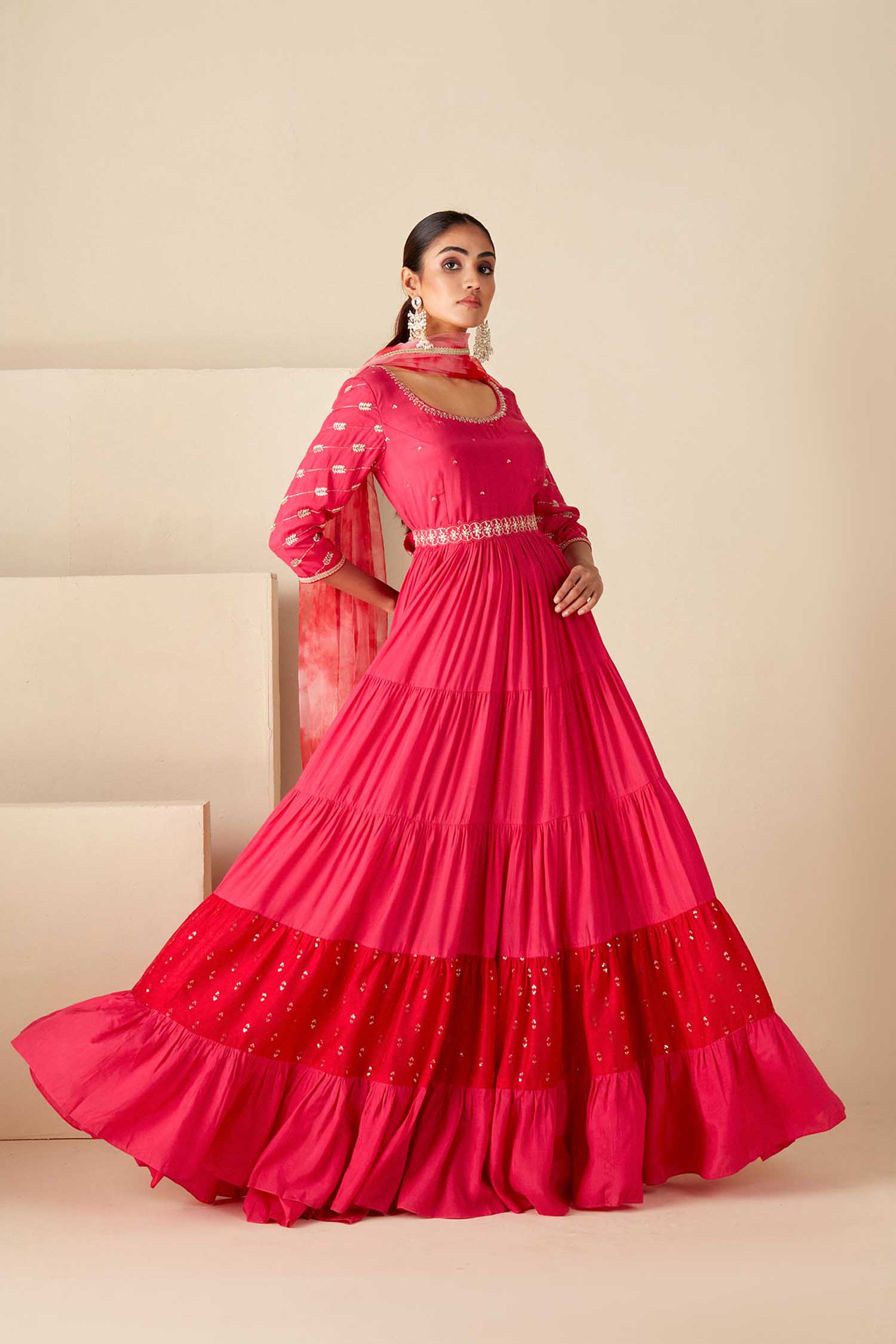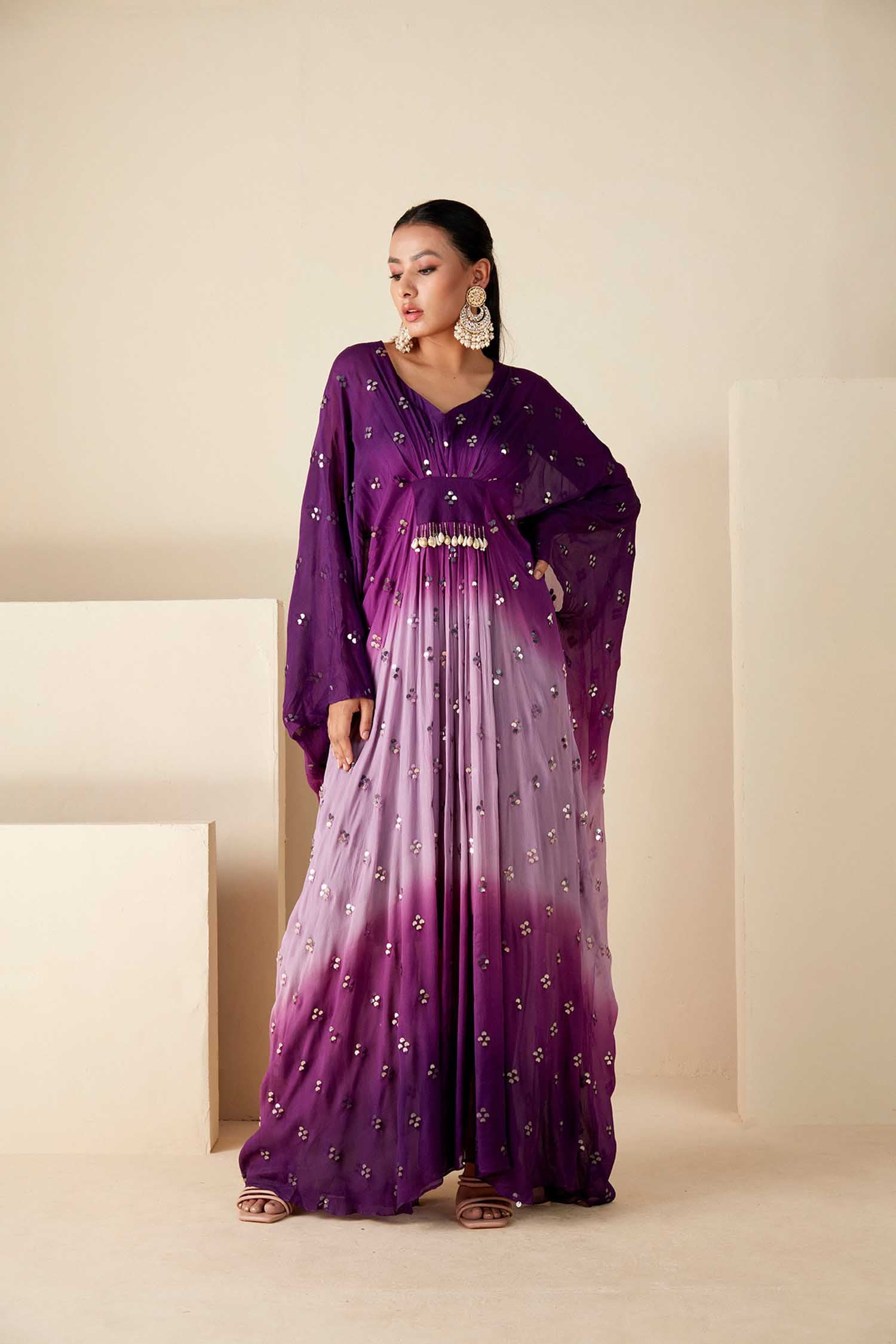 Sequin Embroidered Ombre Anarkali with Pleated Flare