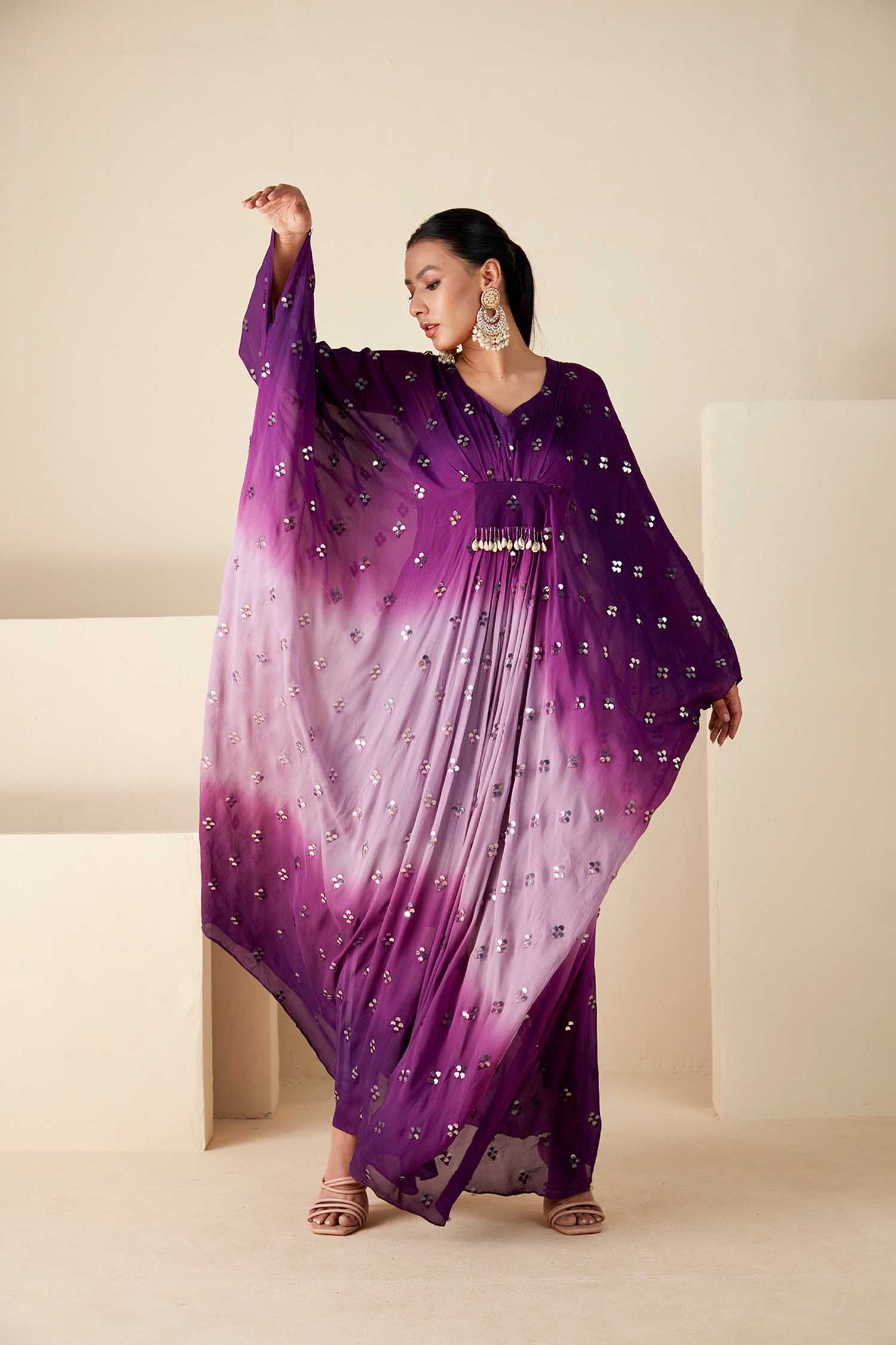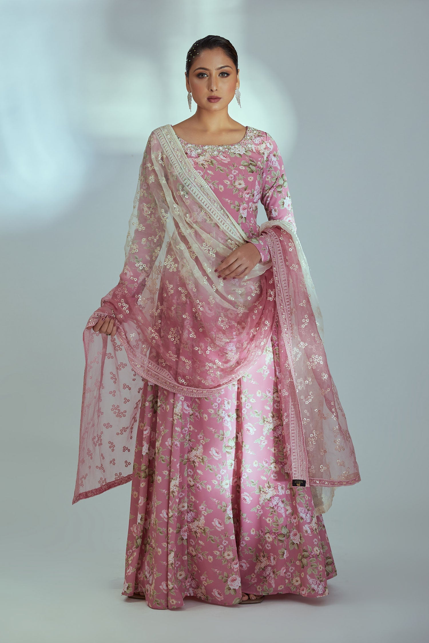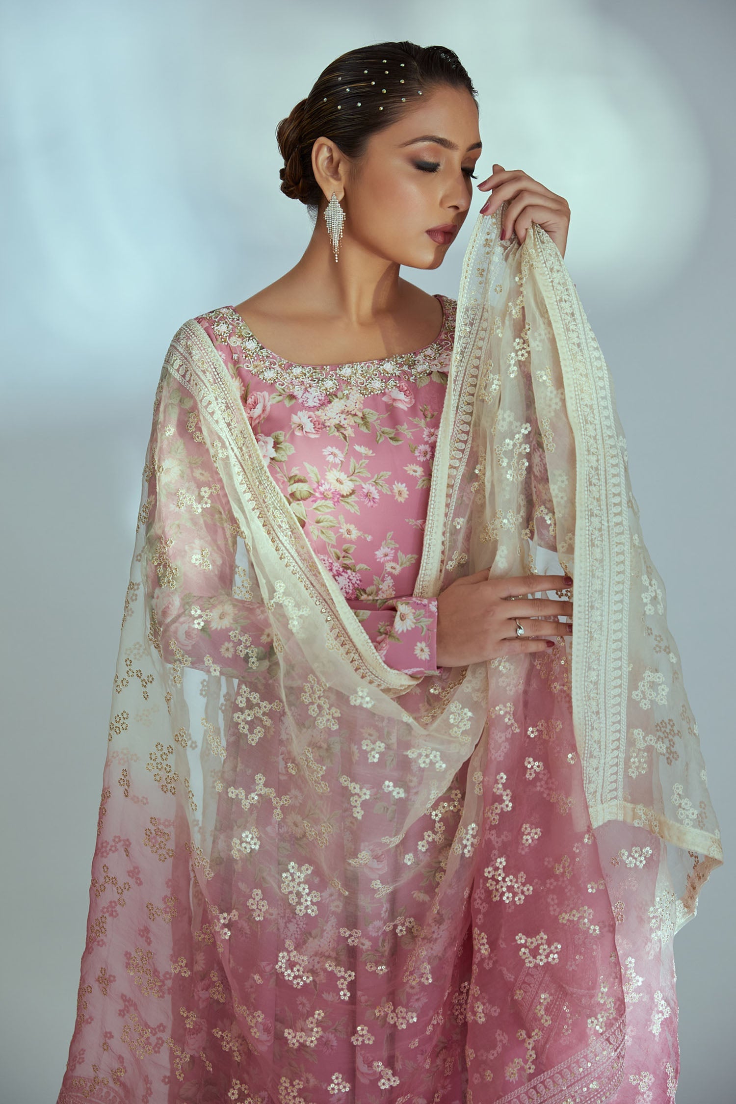 Intricately Sequin Embroidered Ombre Anarkali Set