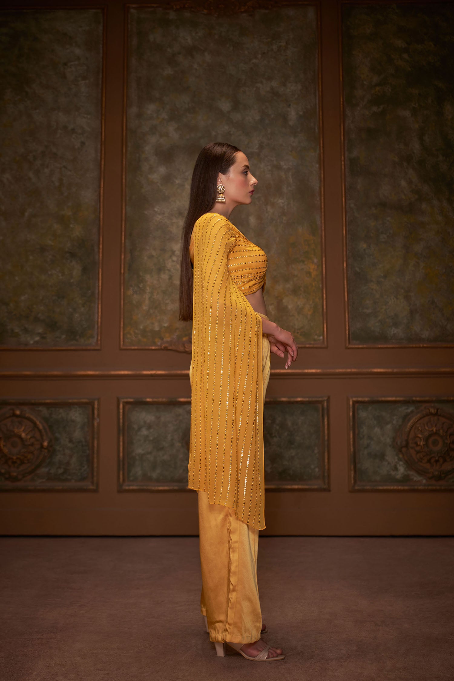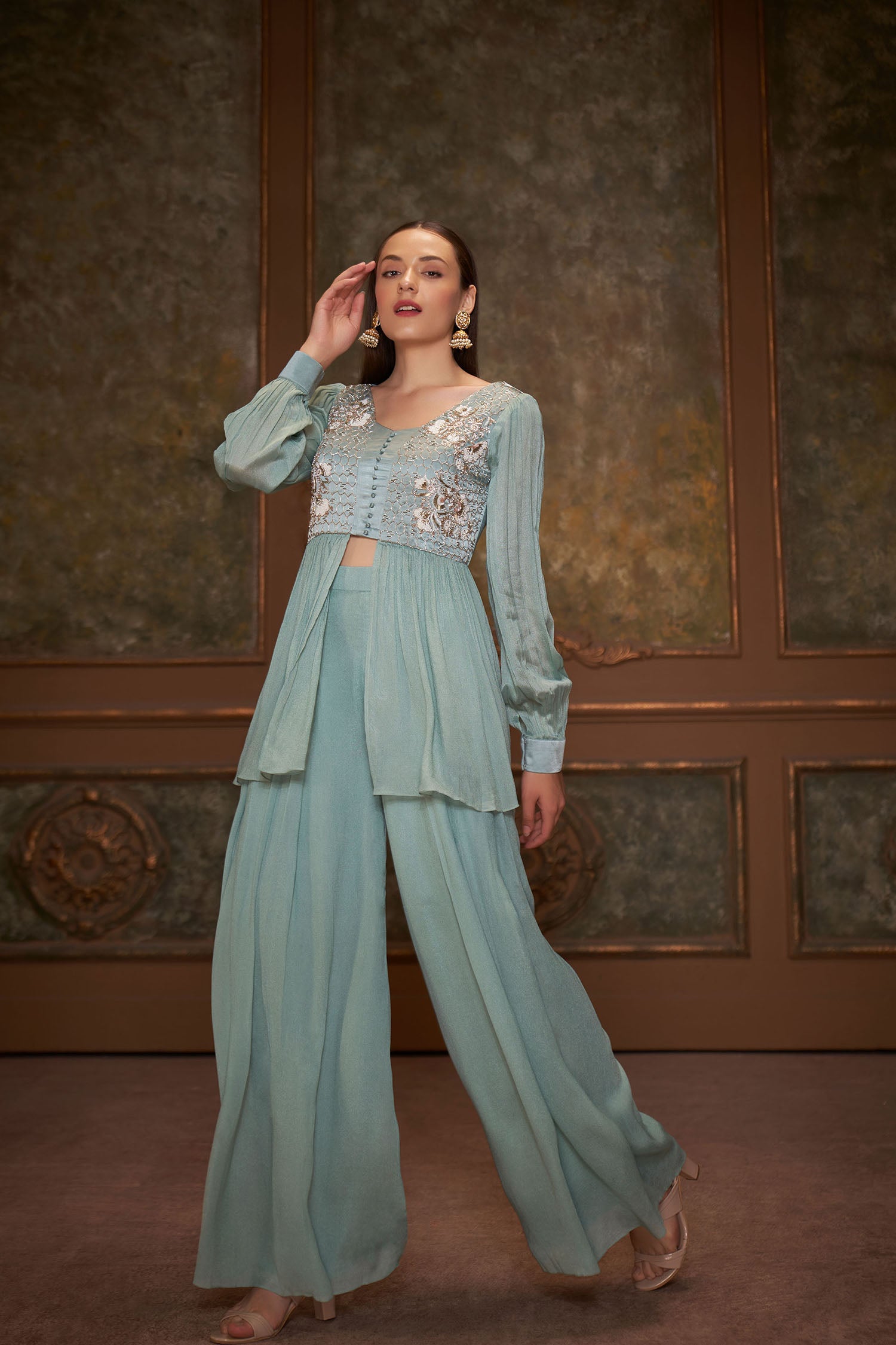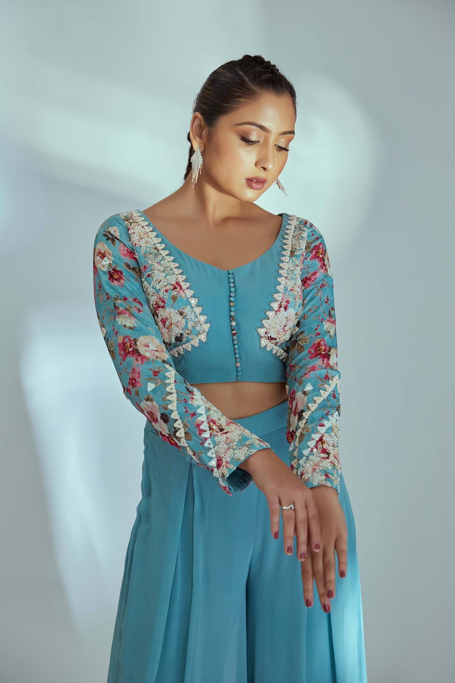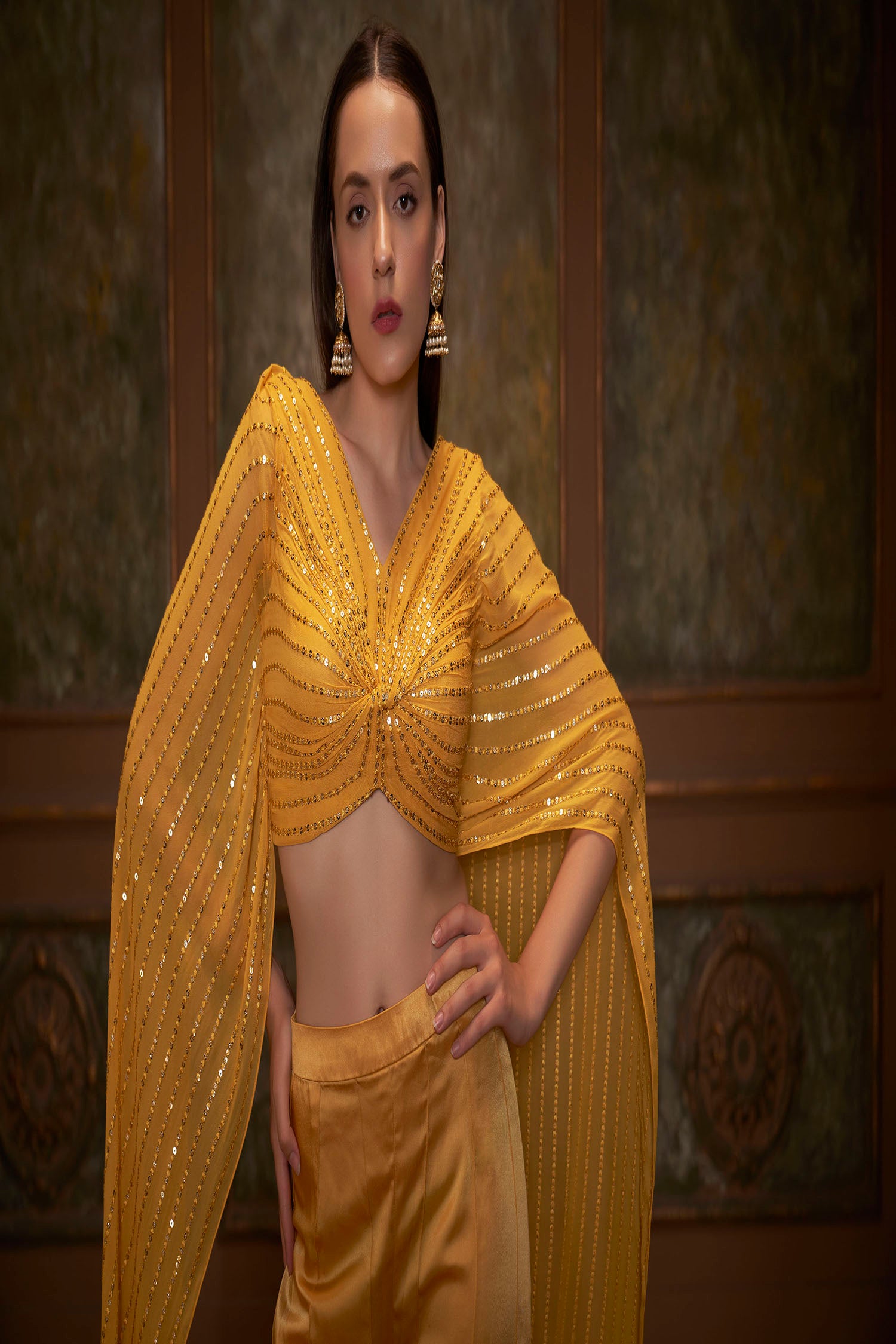 Crop Top and Flared Pants Fusion Set with Sequin Embroidery