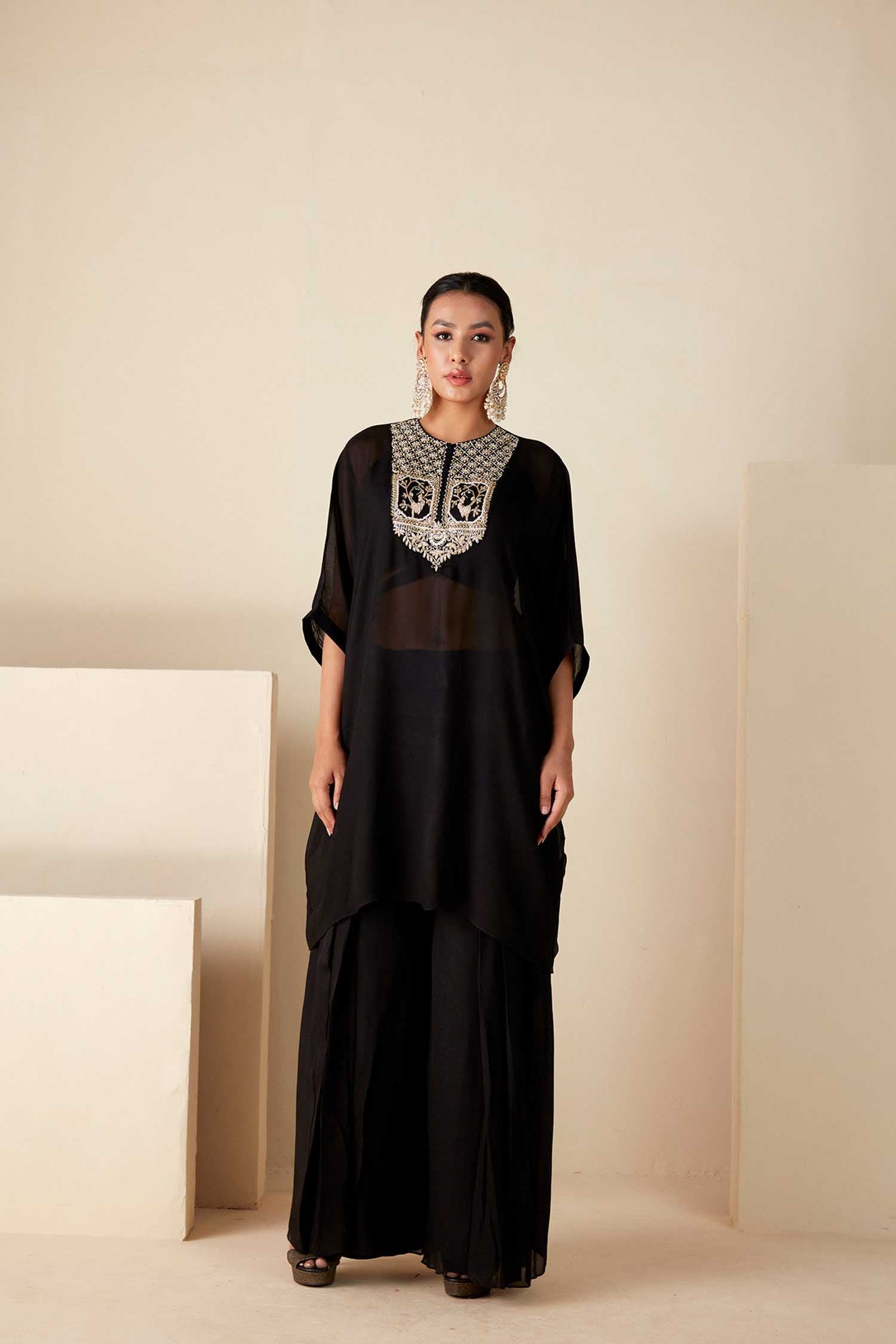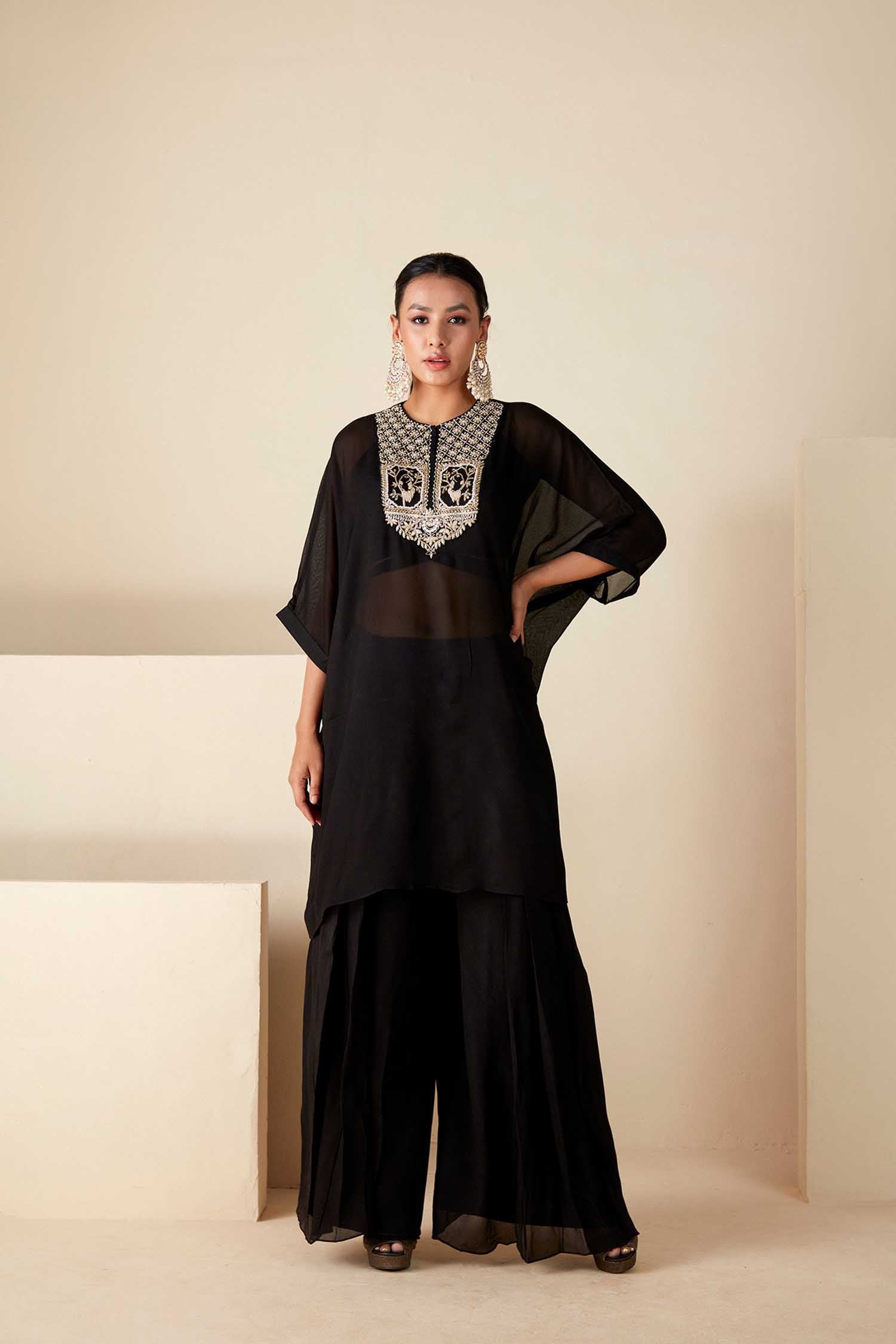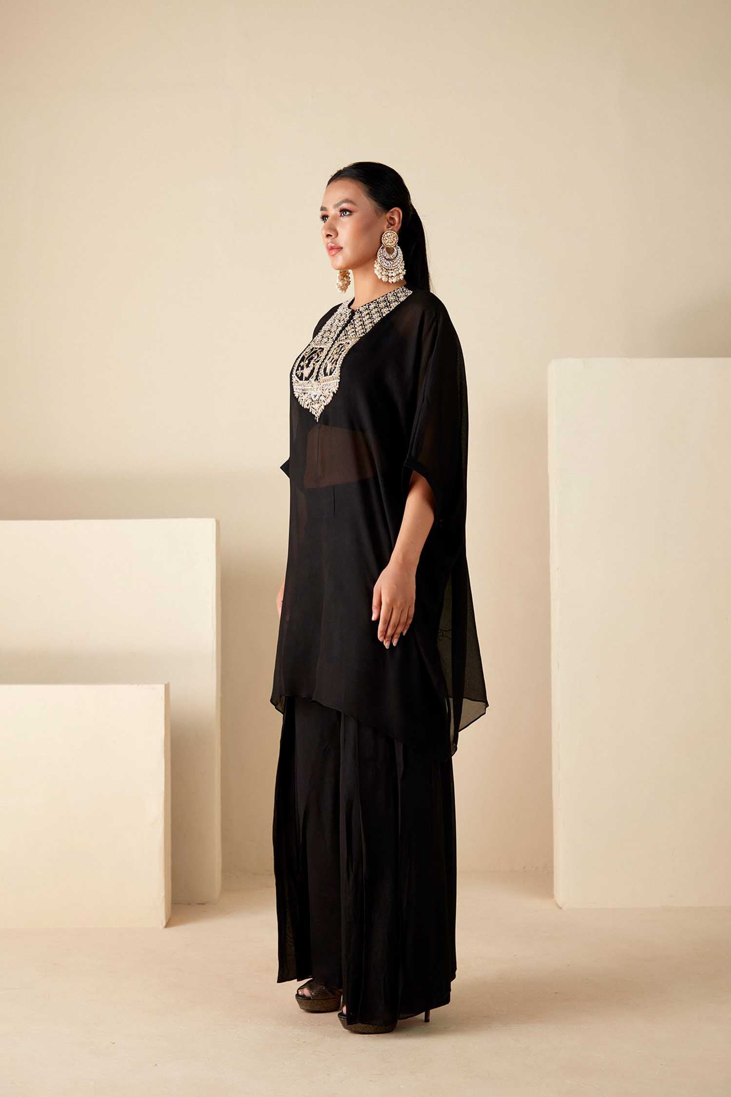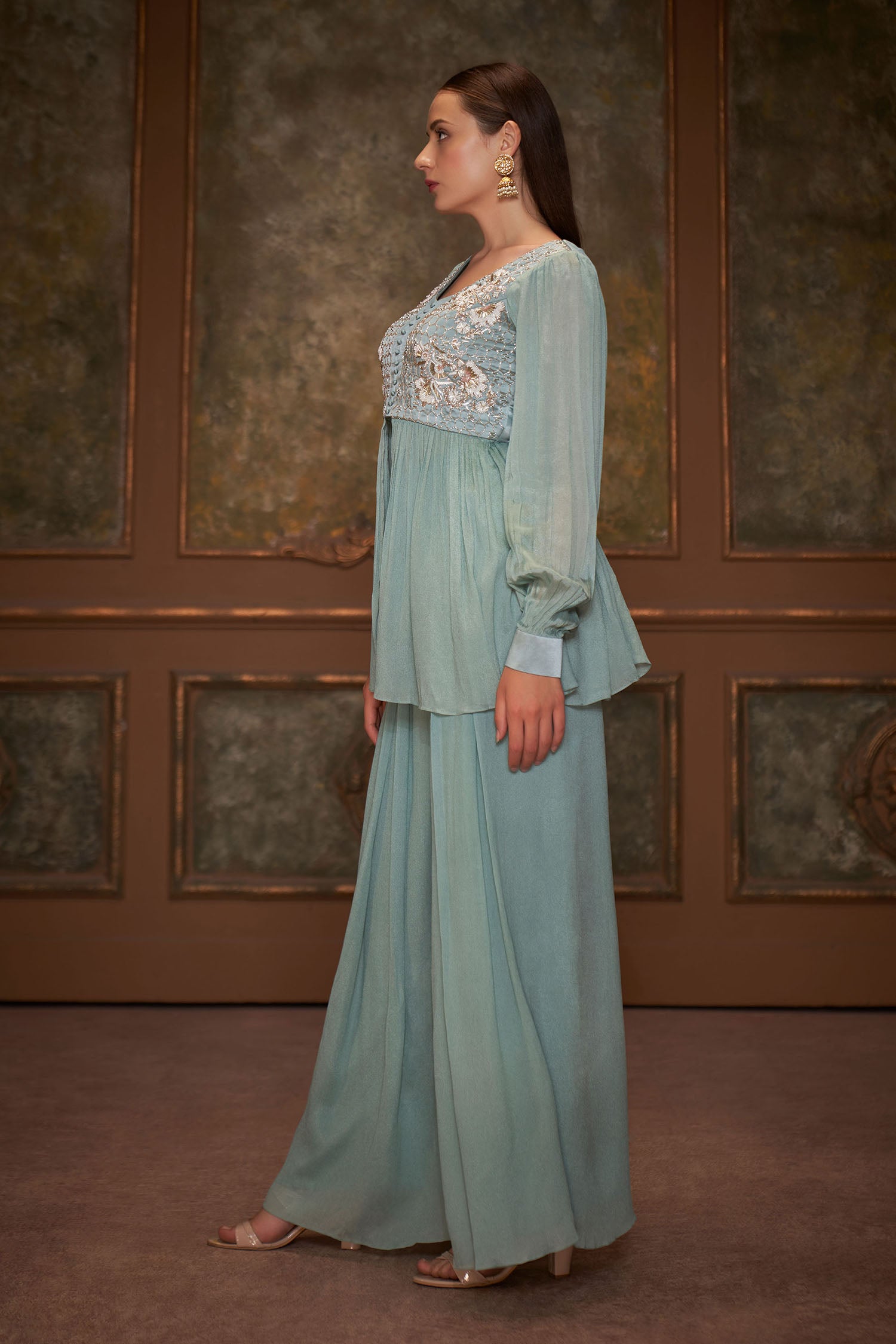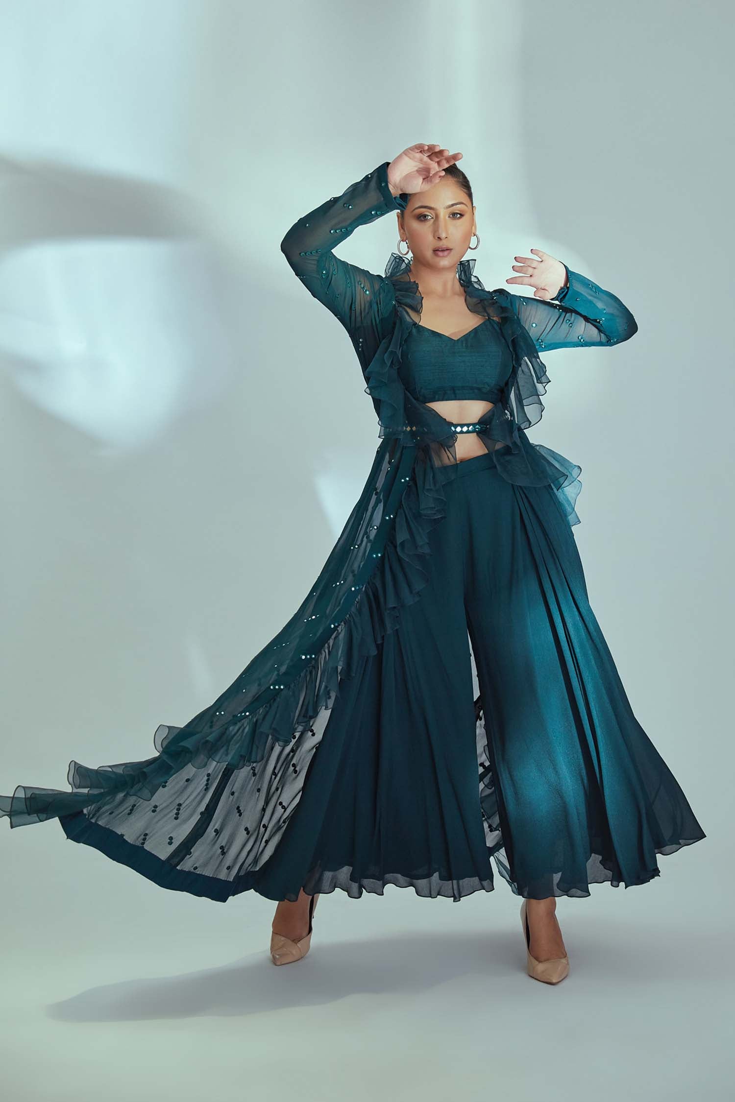 Crop Top and Flared Pants Fusion Set with Sequin Embroidery