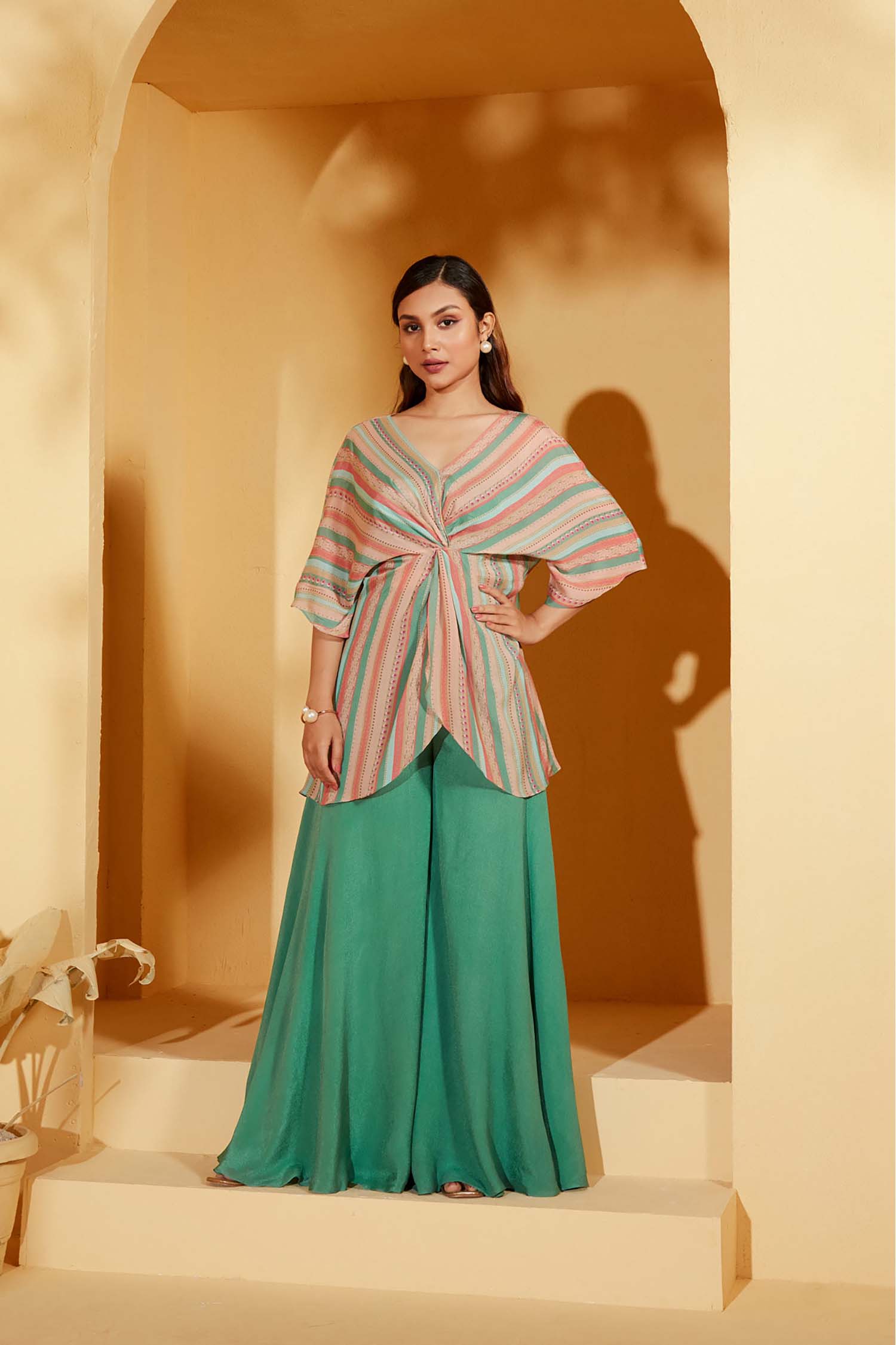 Mint Green Ruffle Drape Skirt Set with Crop Top