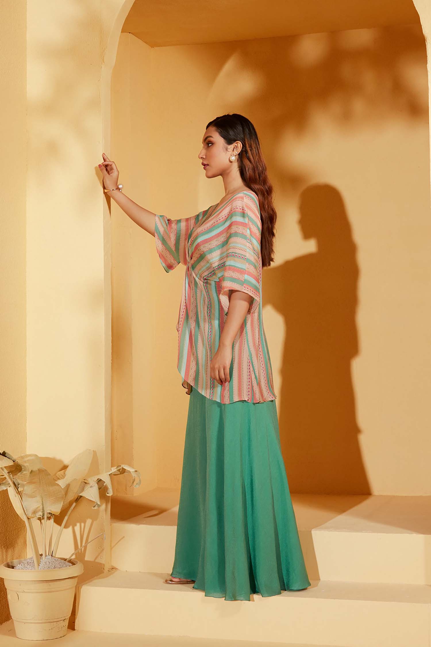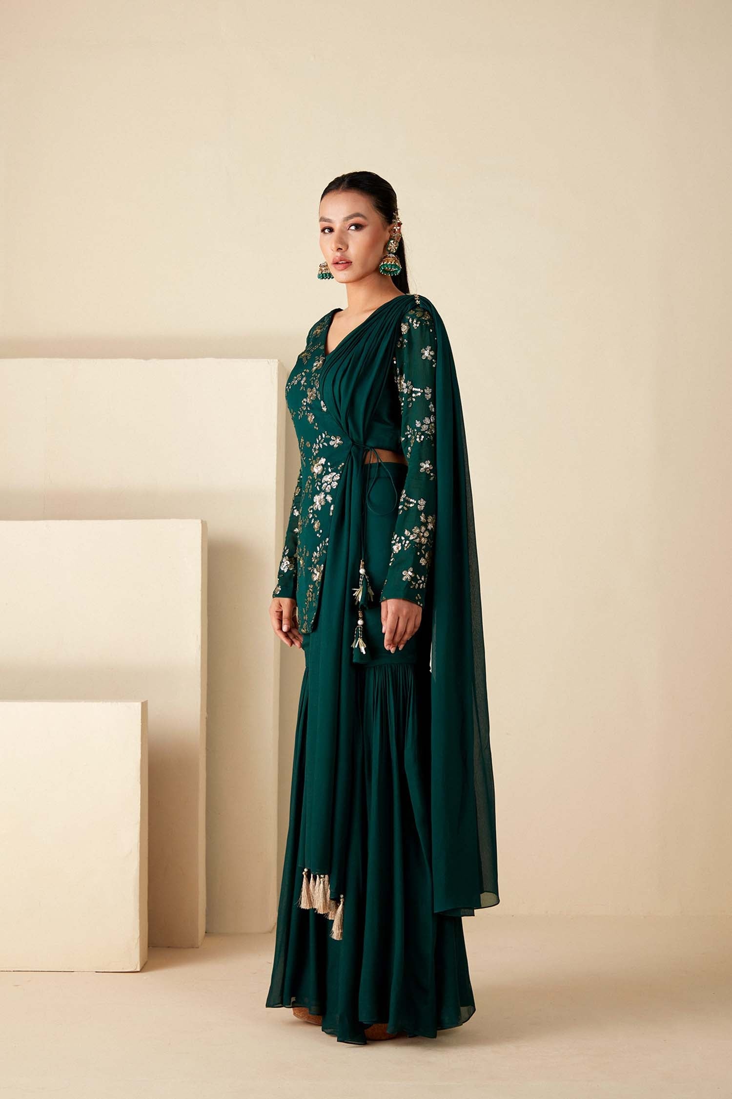 Mint Green Crepe and Organza Drape Skirt Set with Ruffle Dupatta