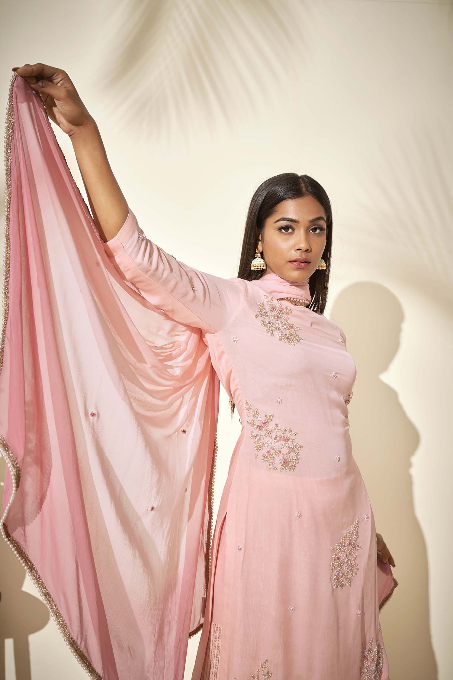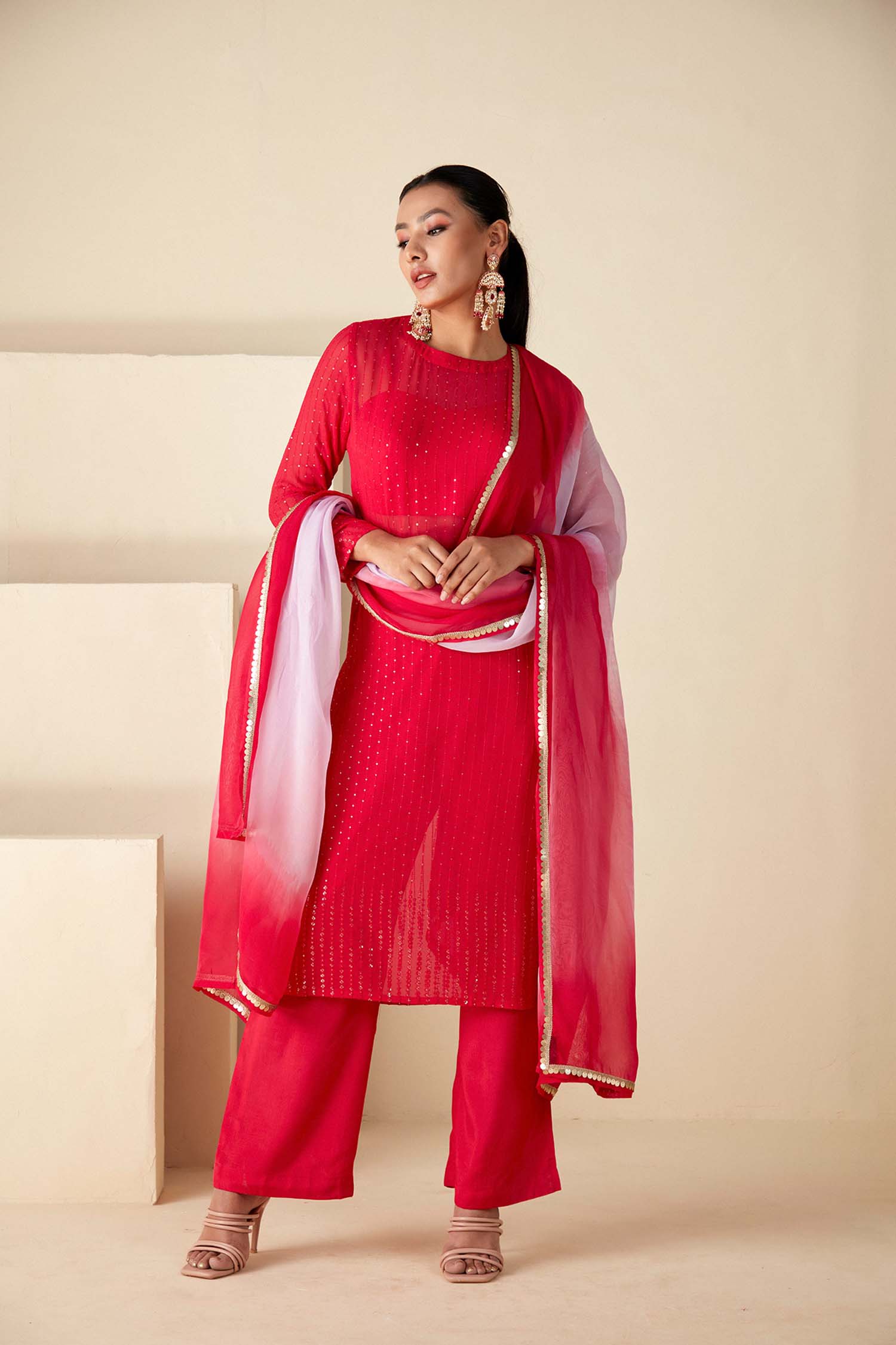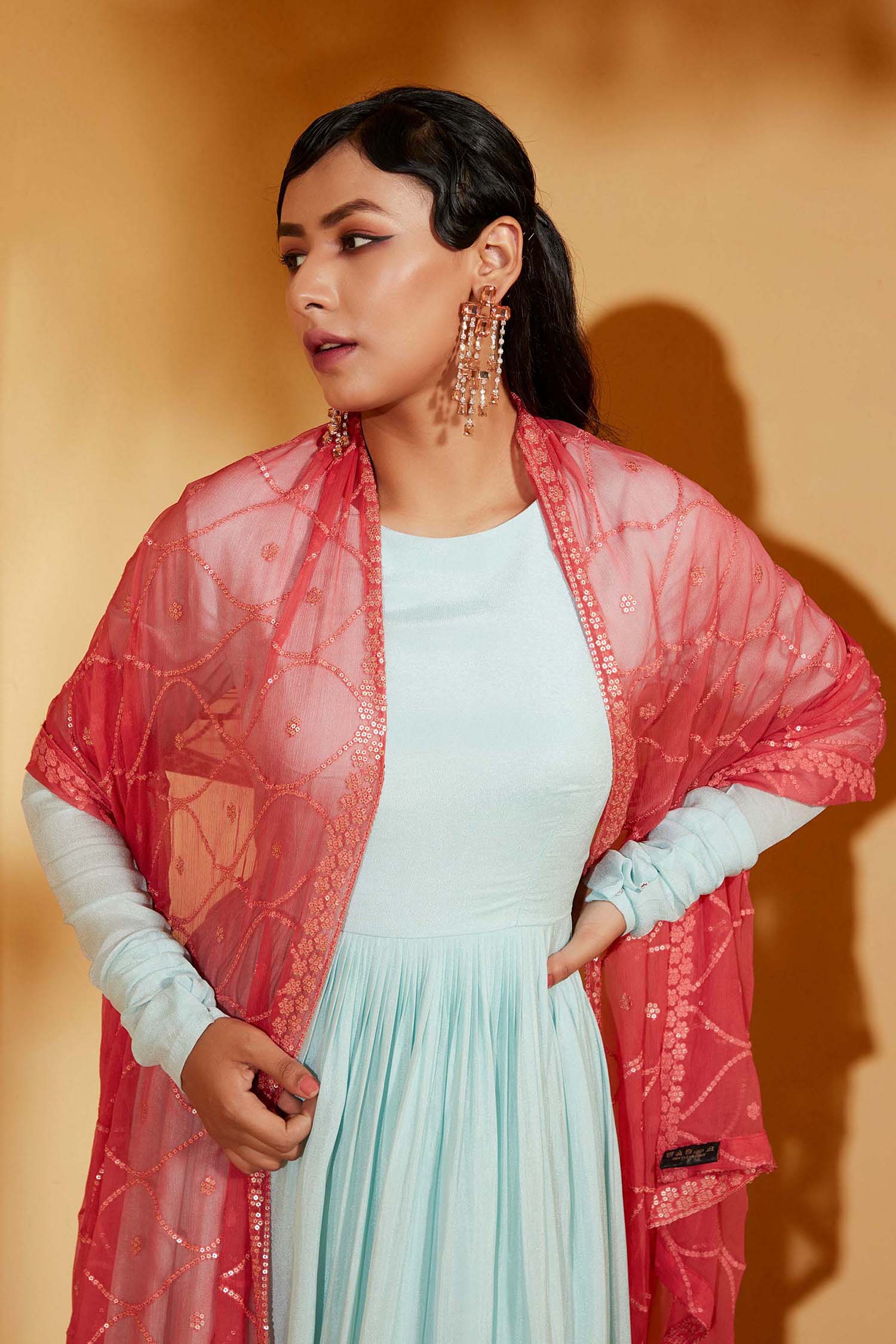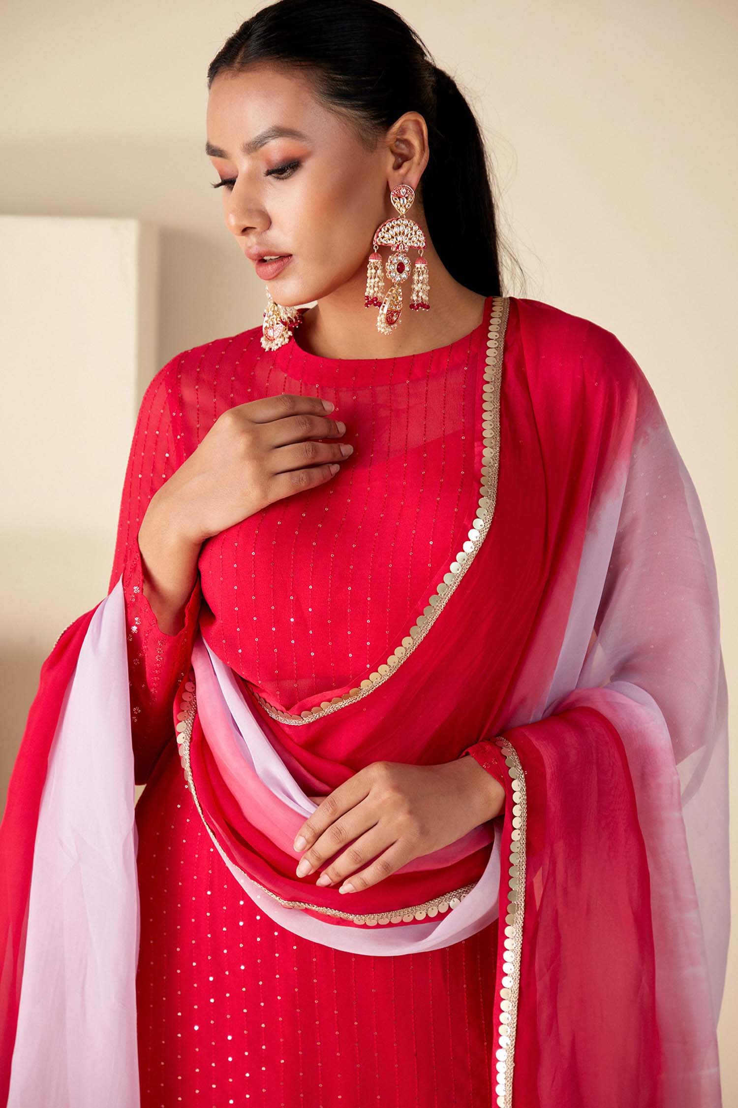 Intricately Sequin Embroidered Ombre Georgette Anarkali Set