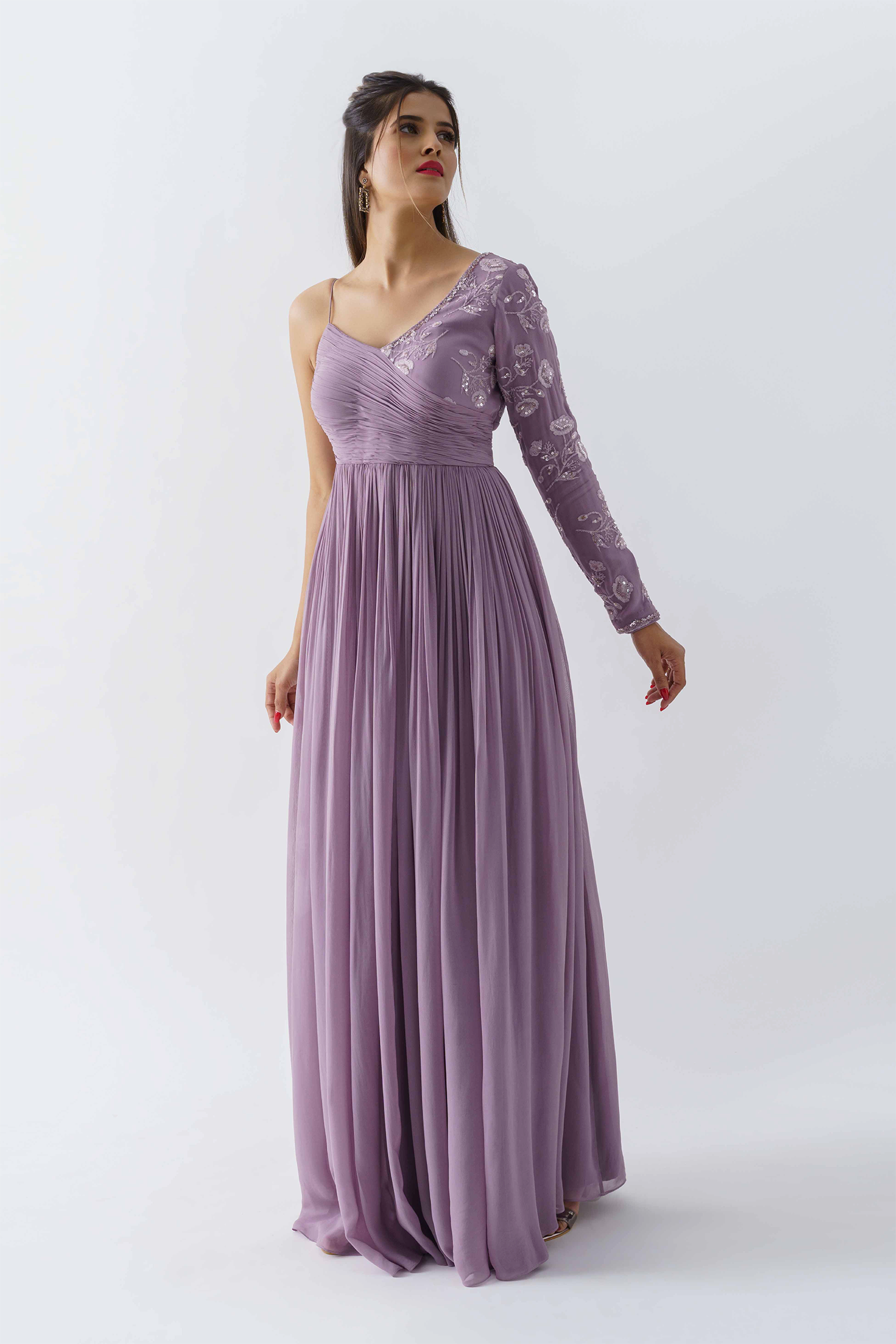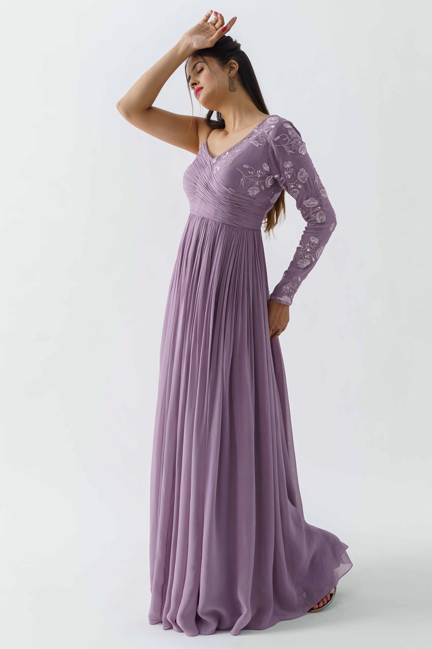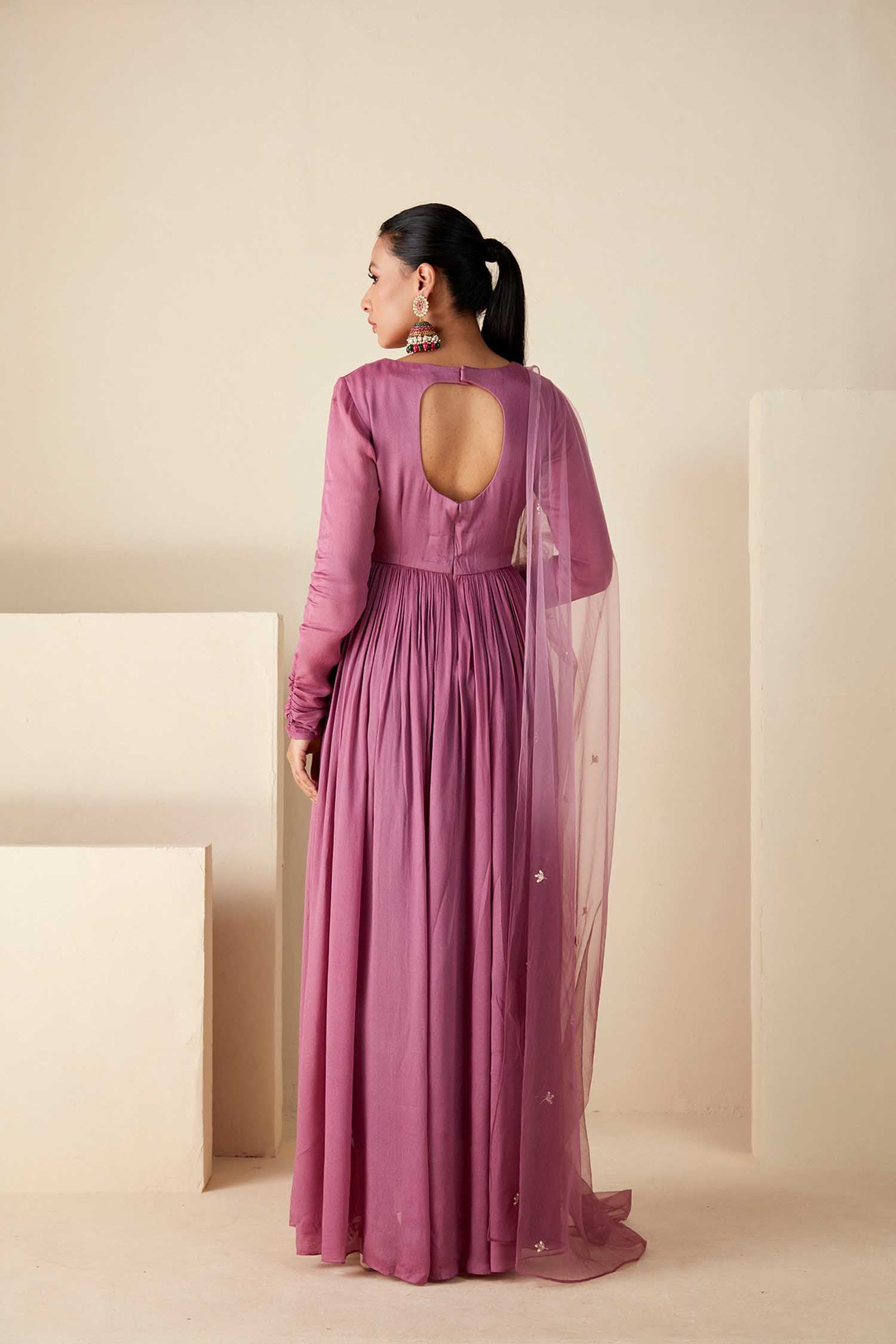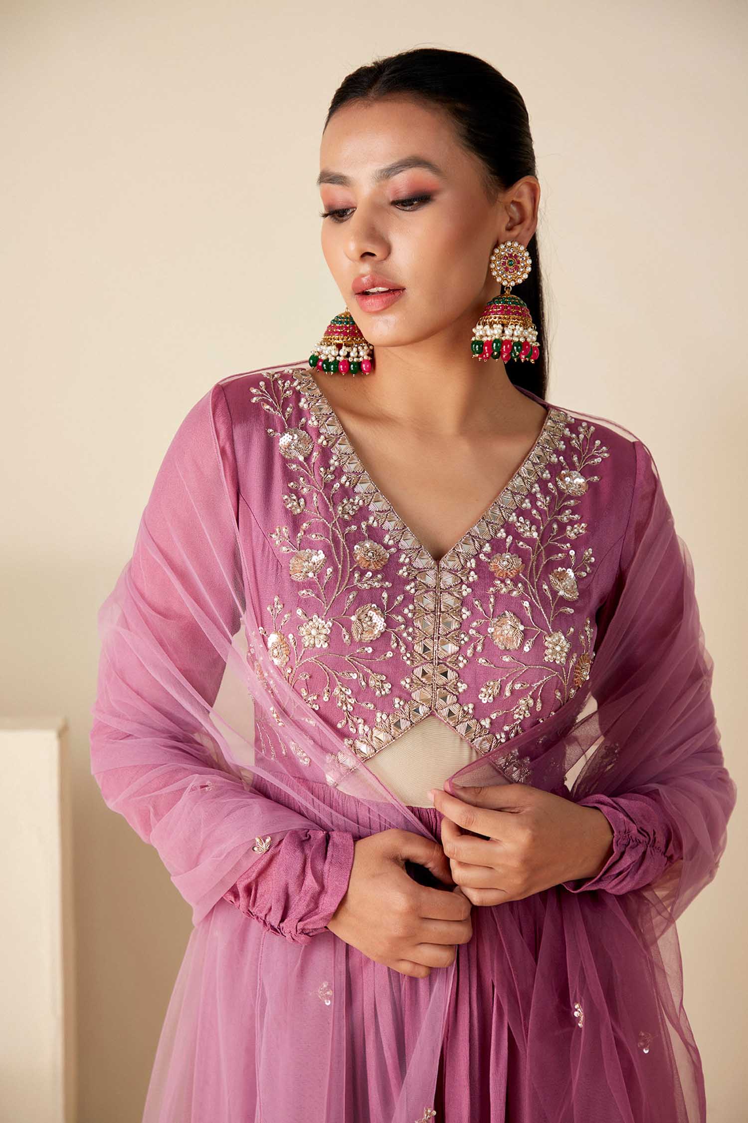 Sequin Embroidered Ombre Anarkali with Pleated Flare and Gathered Sleeves