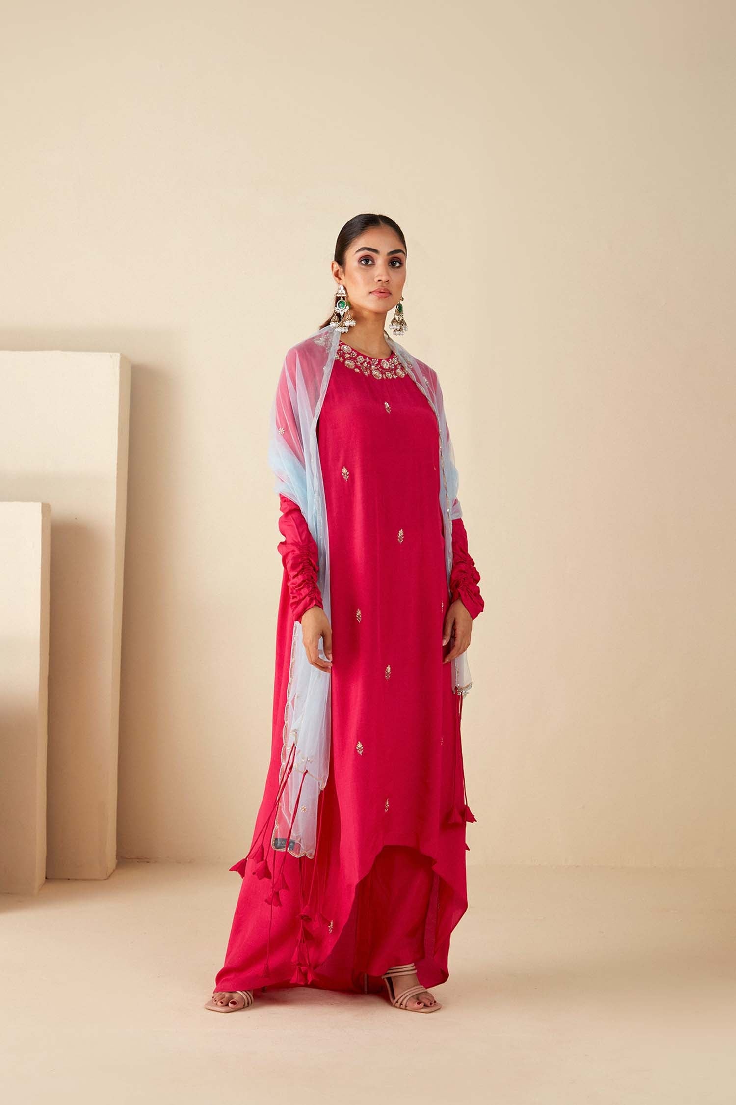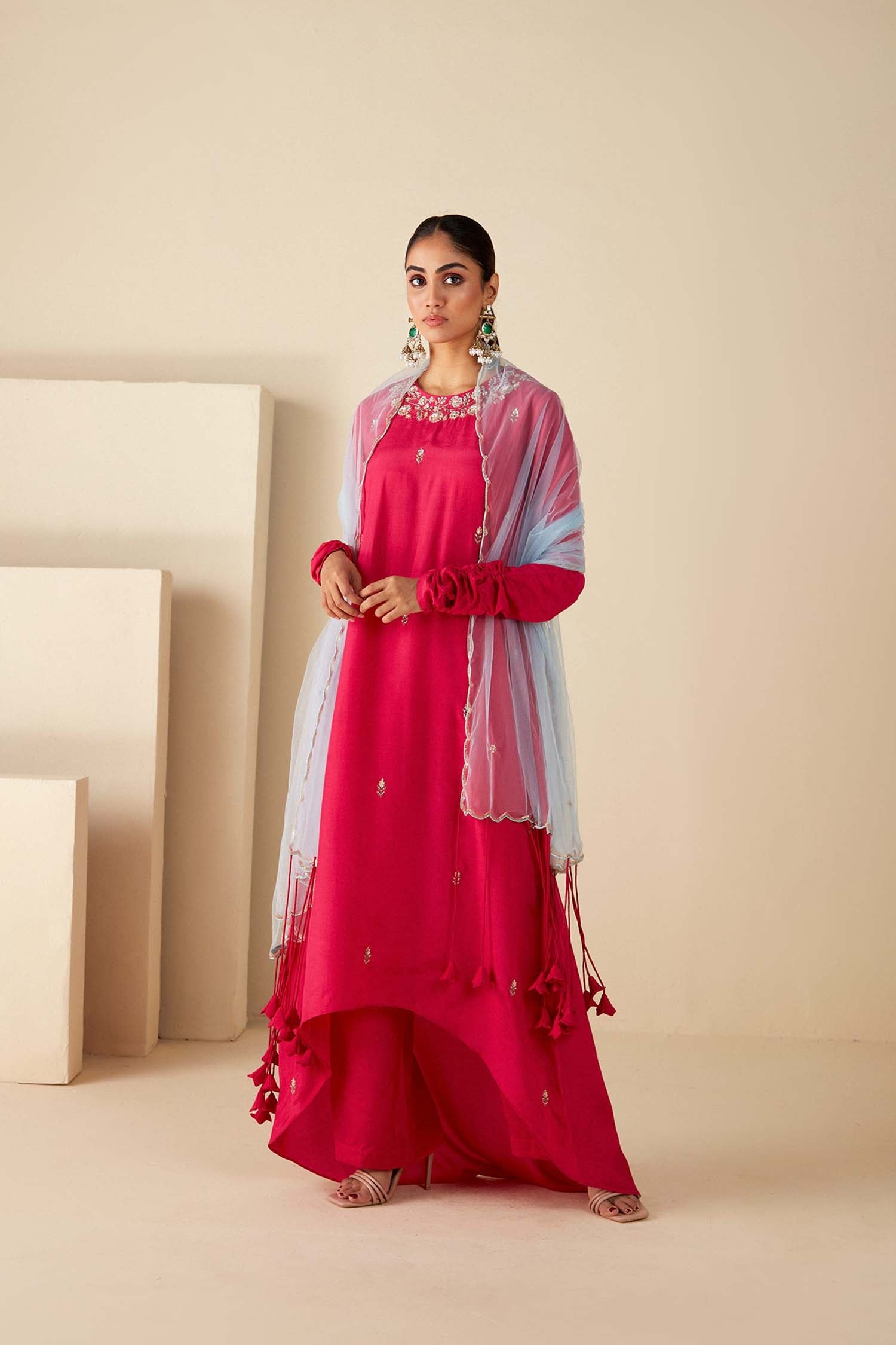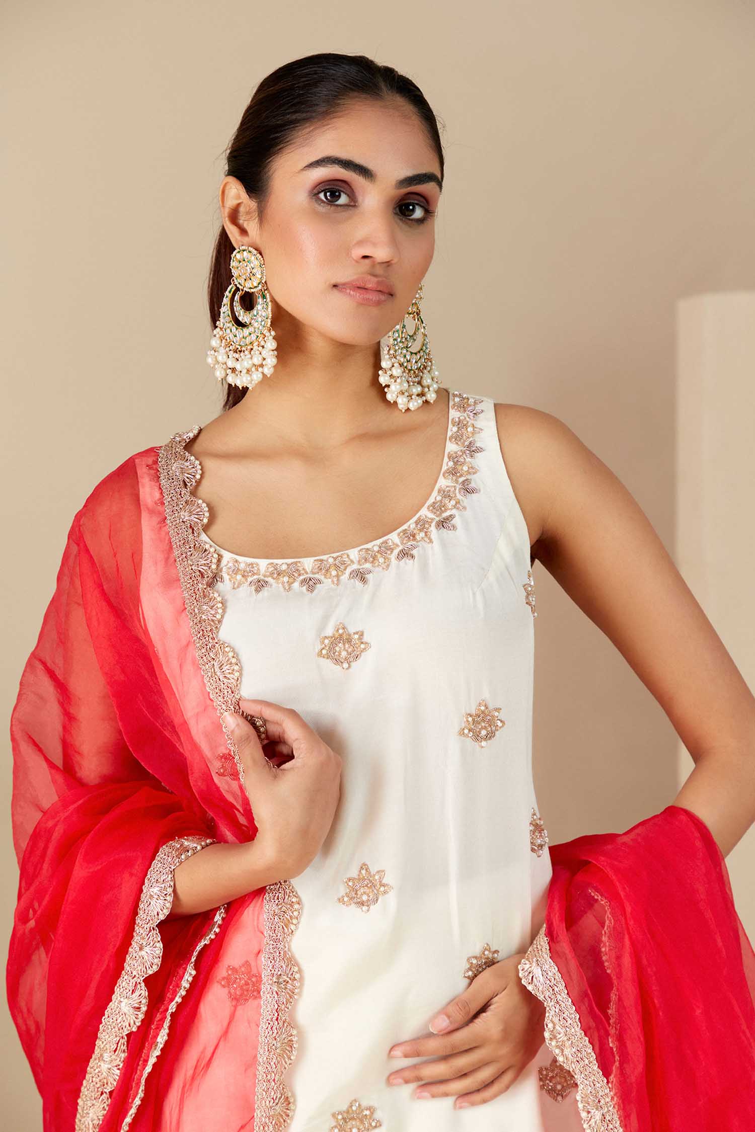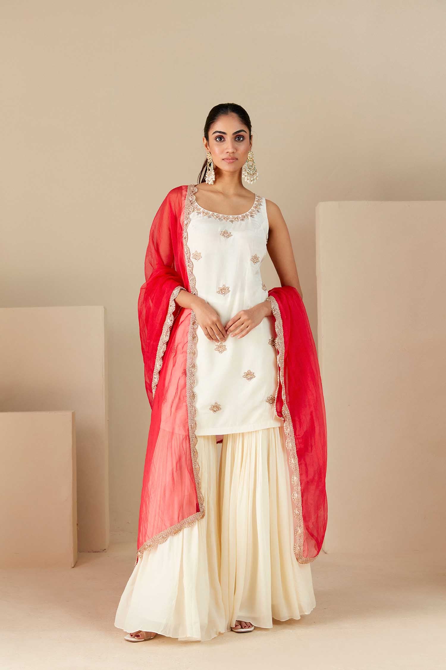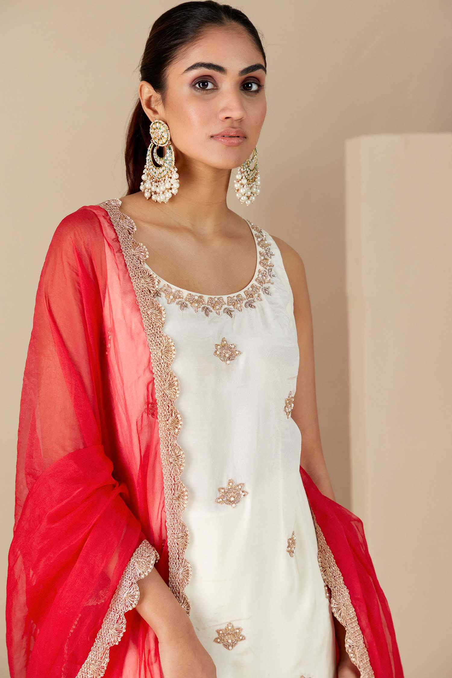 Intricately Handcrafted Kurta with A Printed Contrasting Dupatta