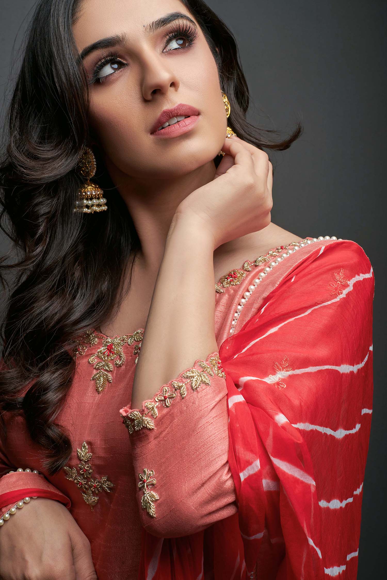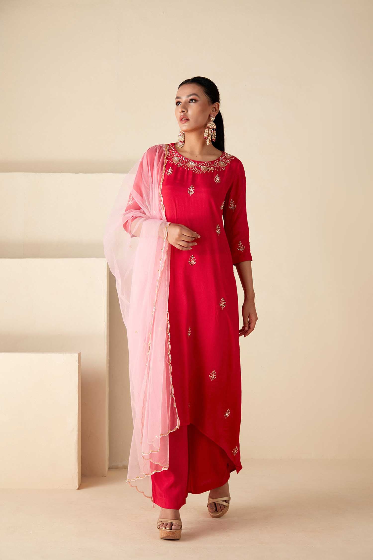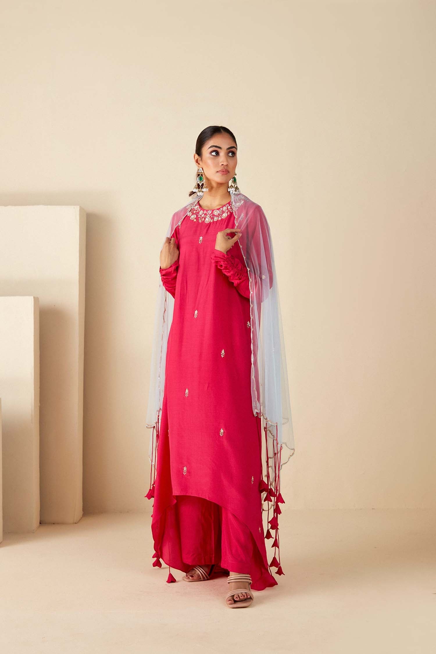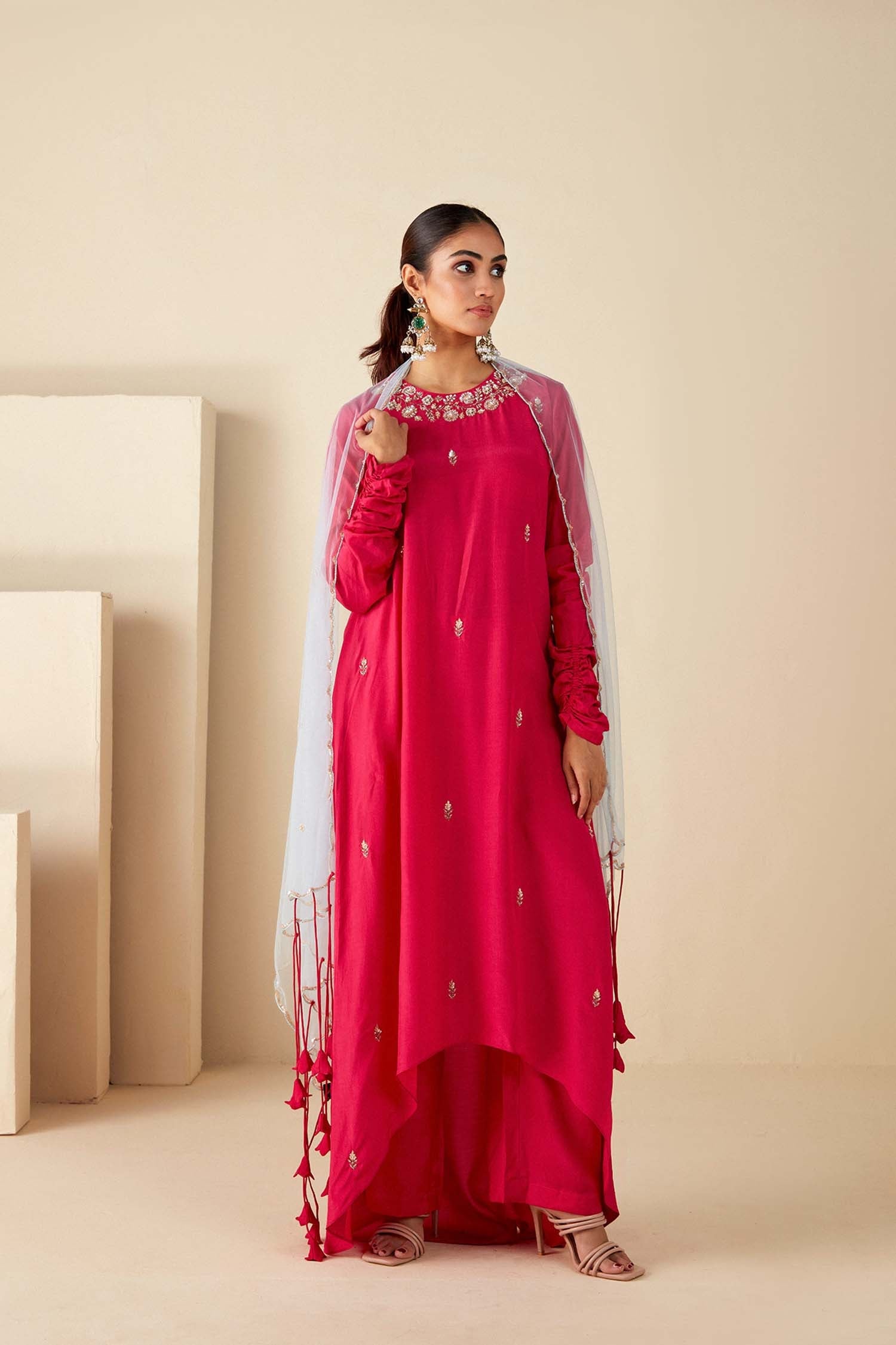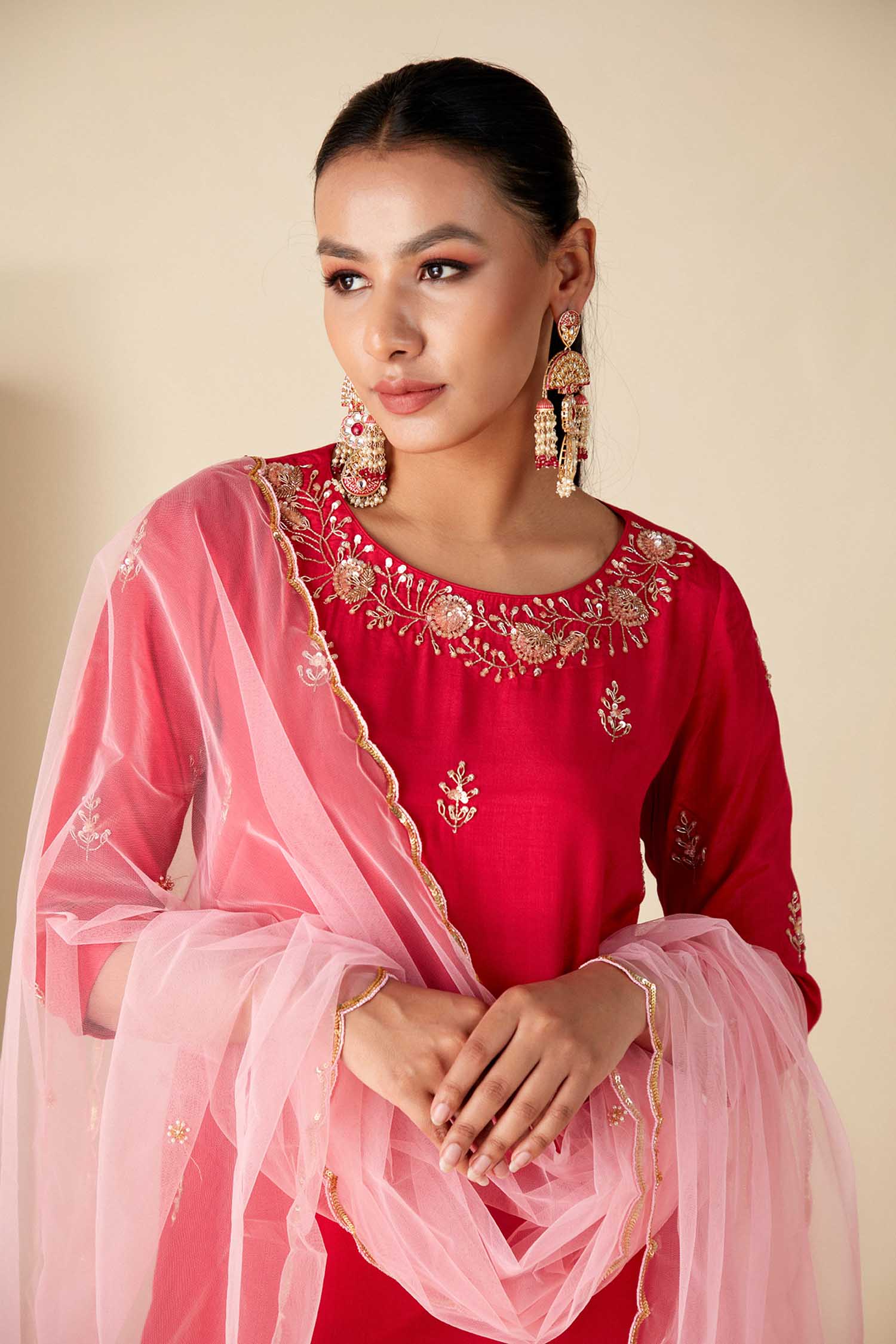 Intricately Handcrafted Kurta with A Printed Contrasting Dupatta