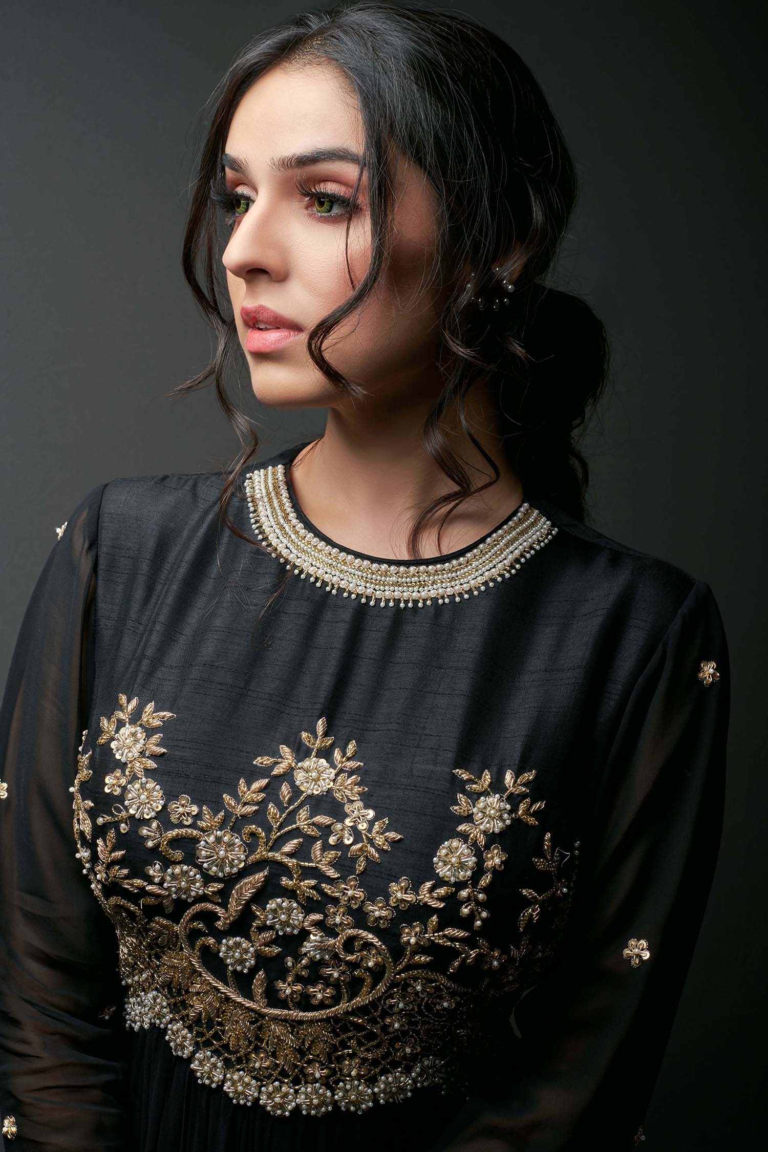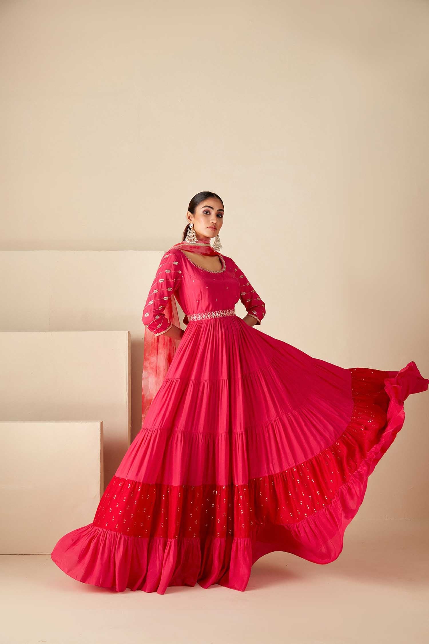 Intricately Sequin Embroidered Anarkali with Pleated Ombre Flare