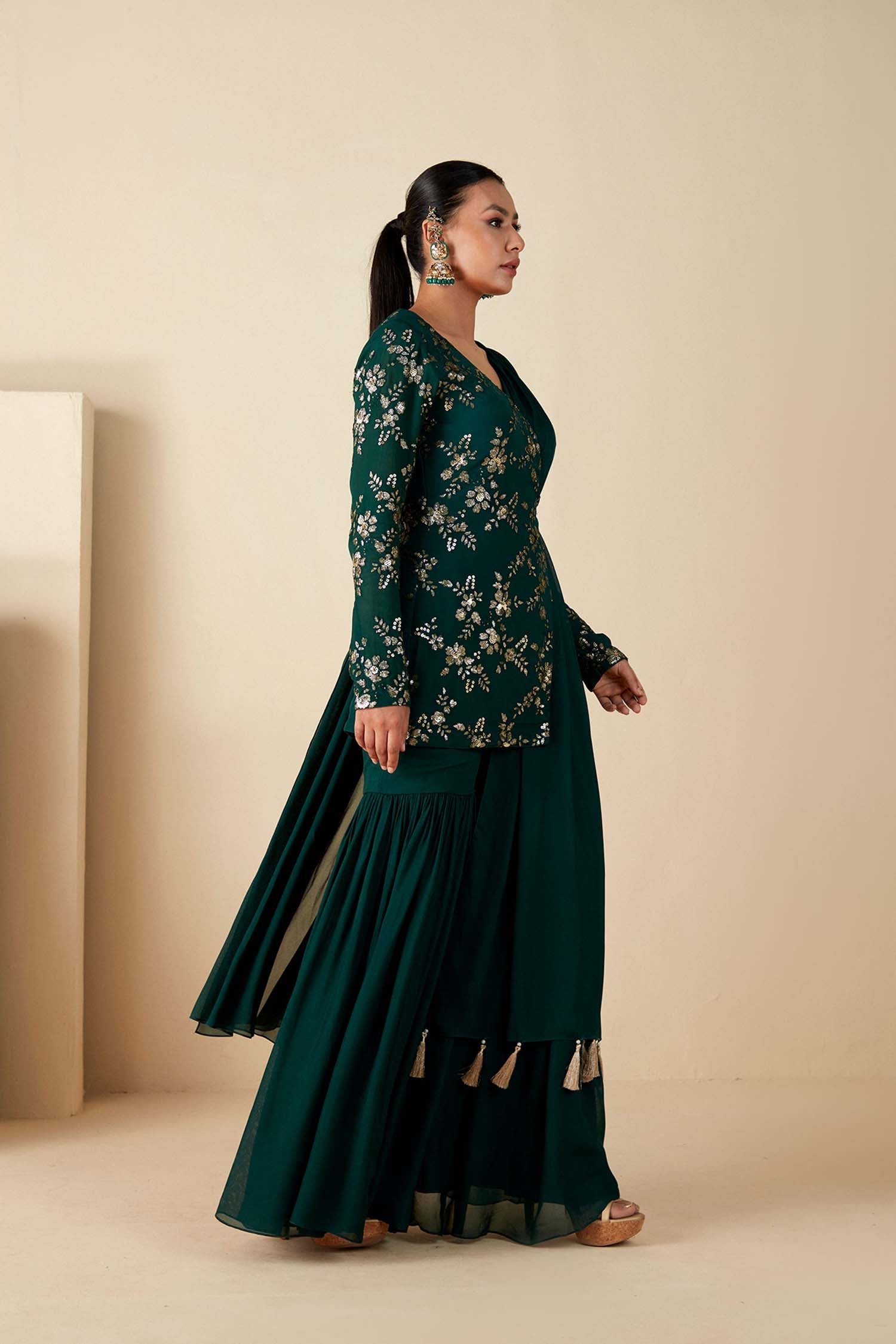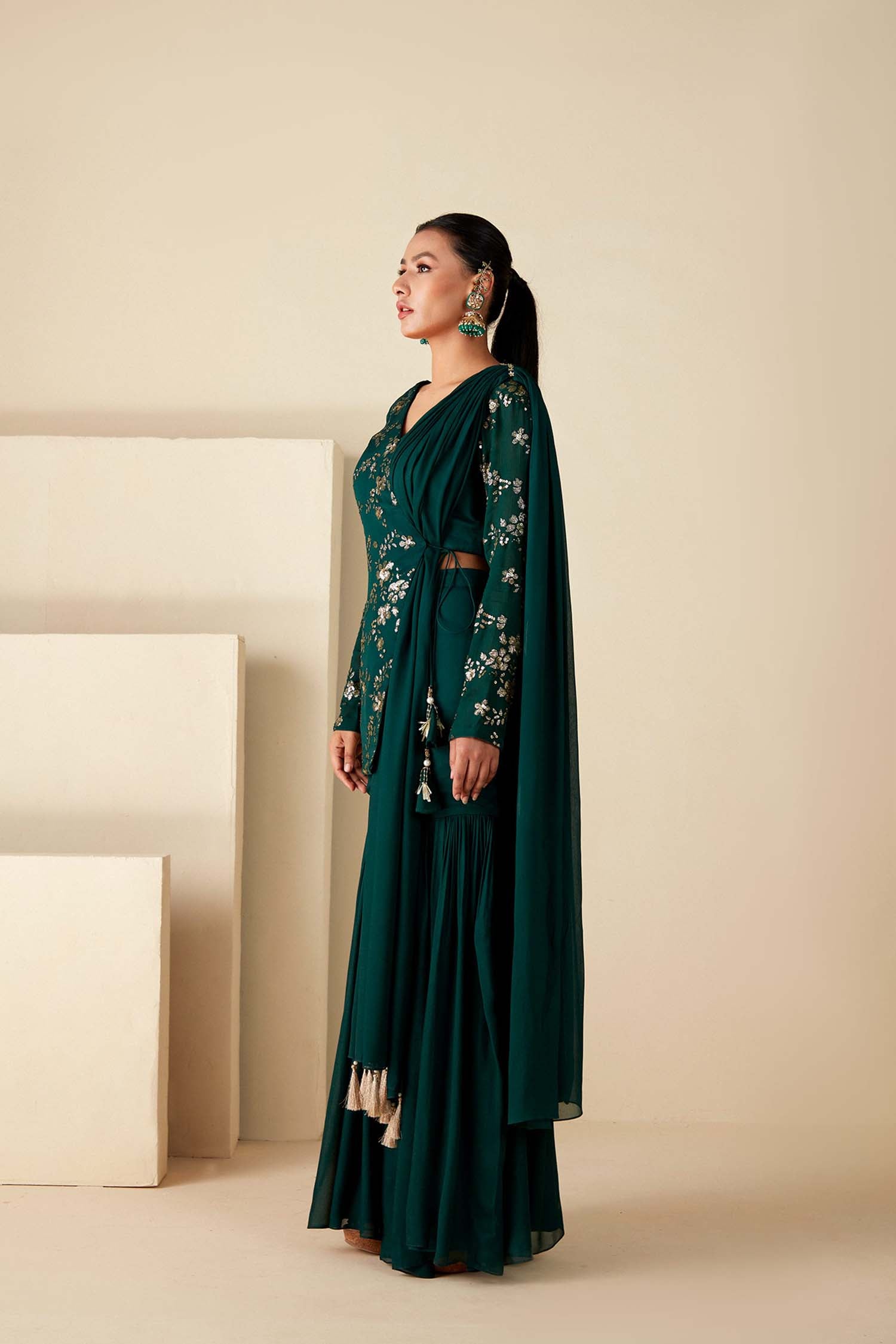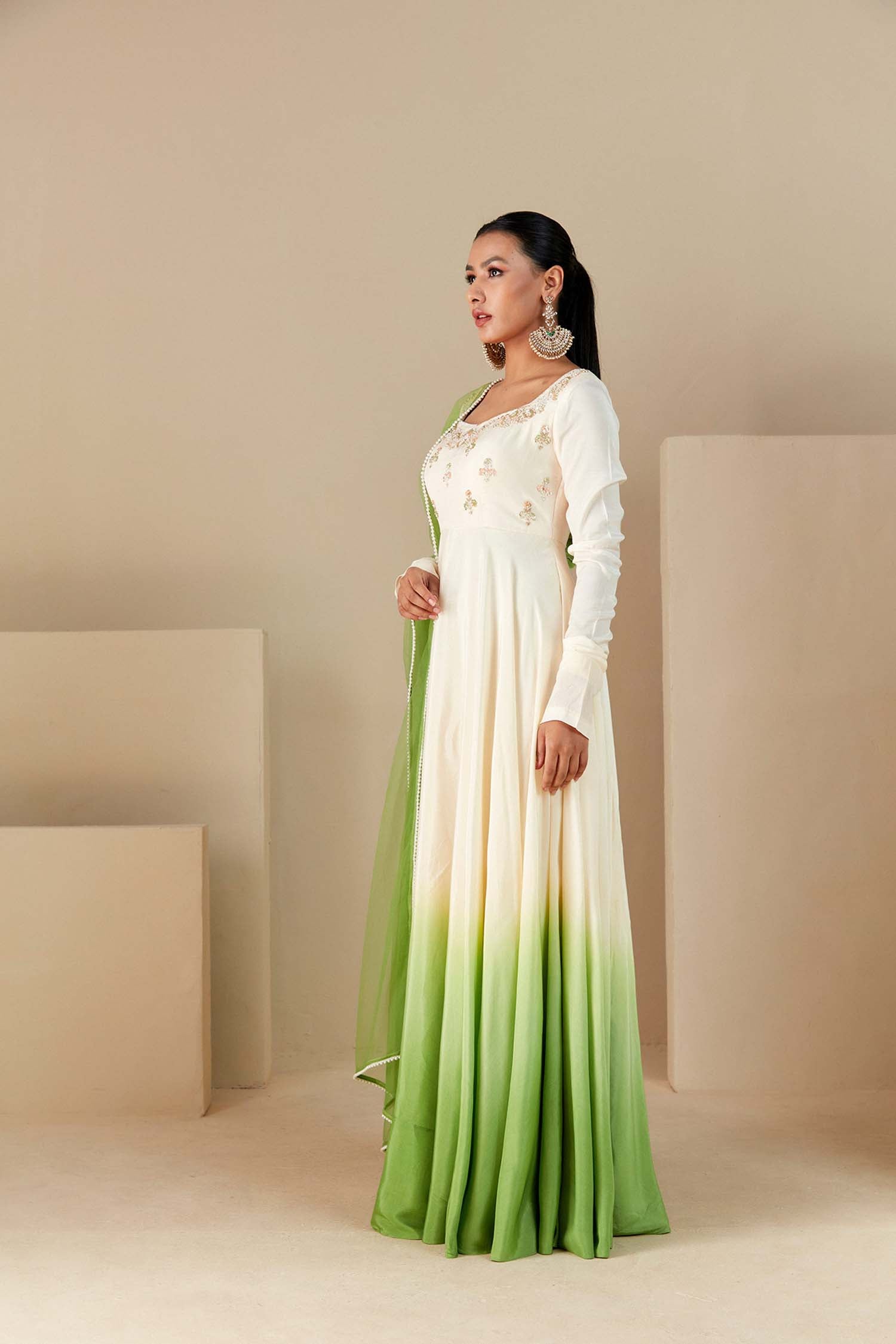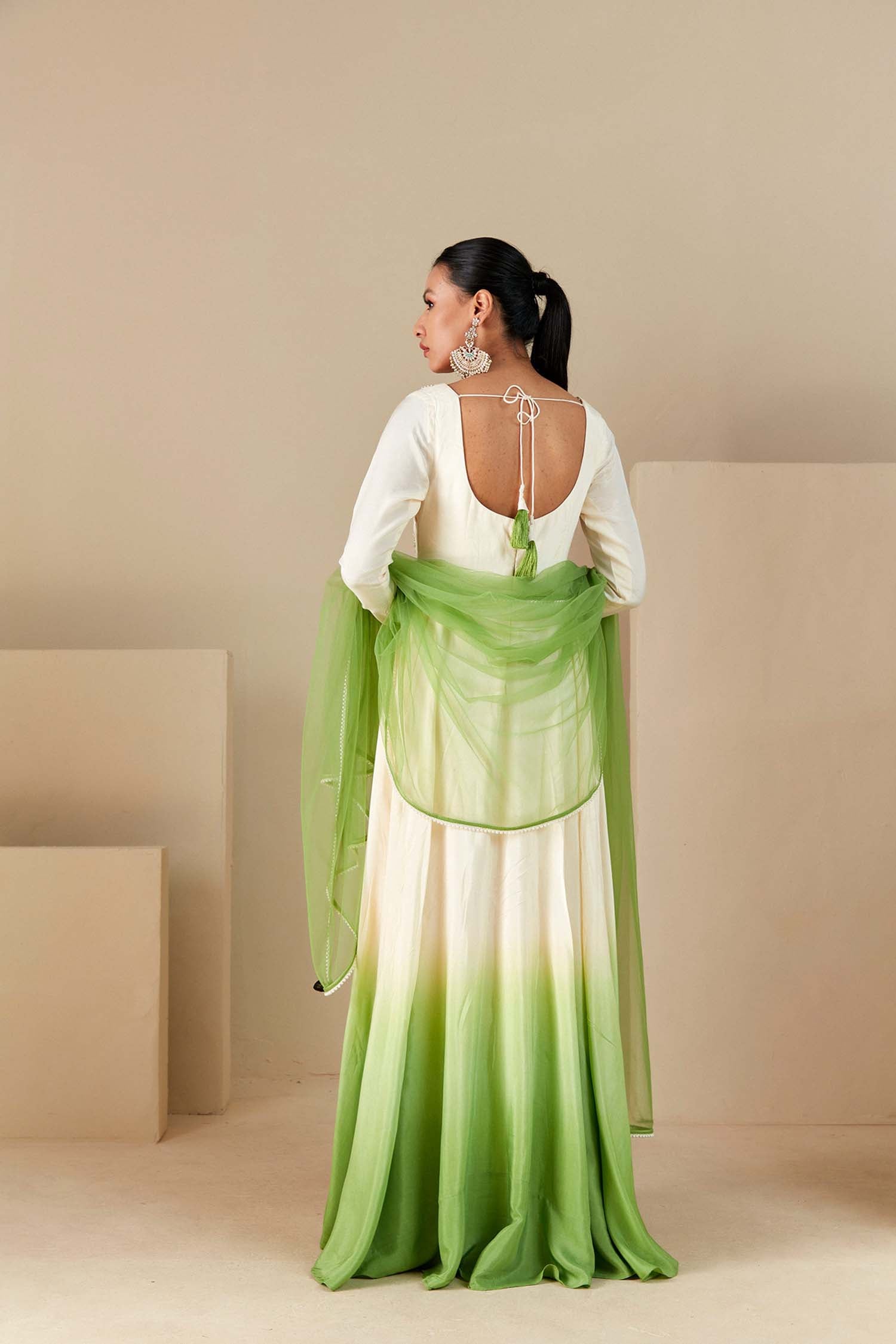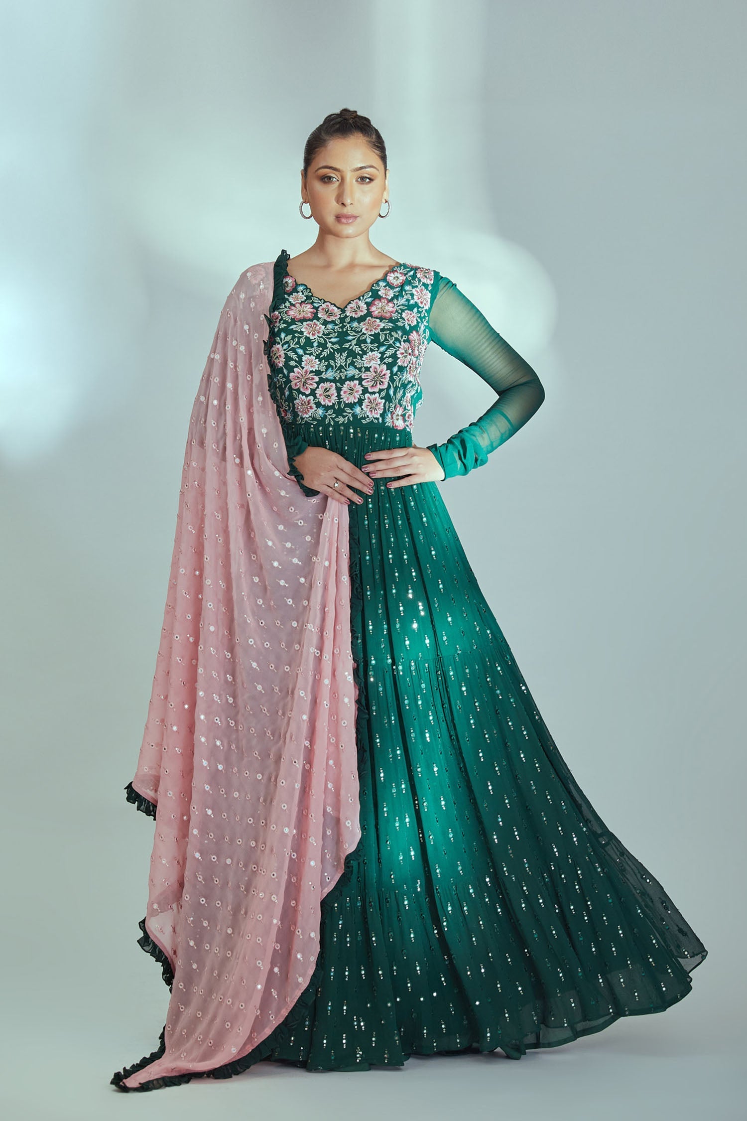 Intricately Sequin Embroidered Green Ombre Anarkali Set