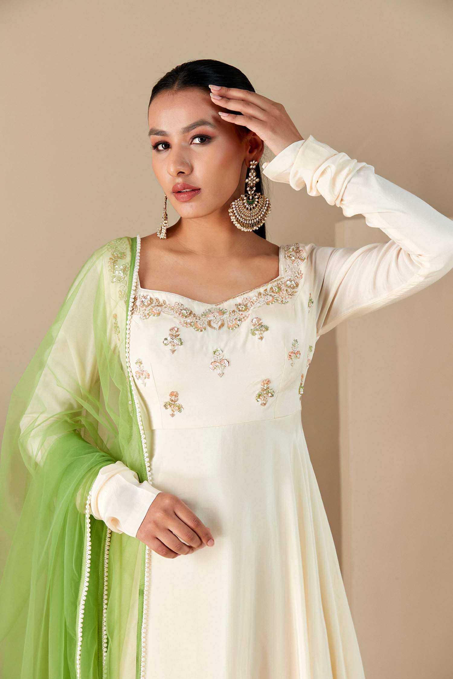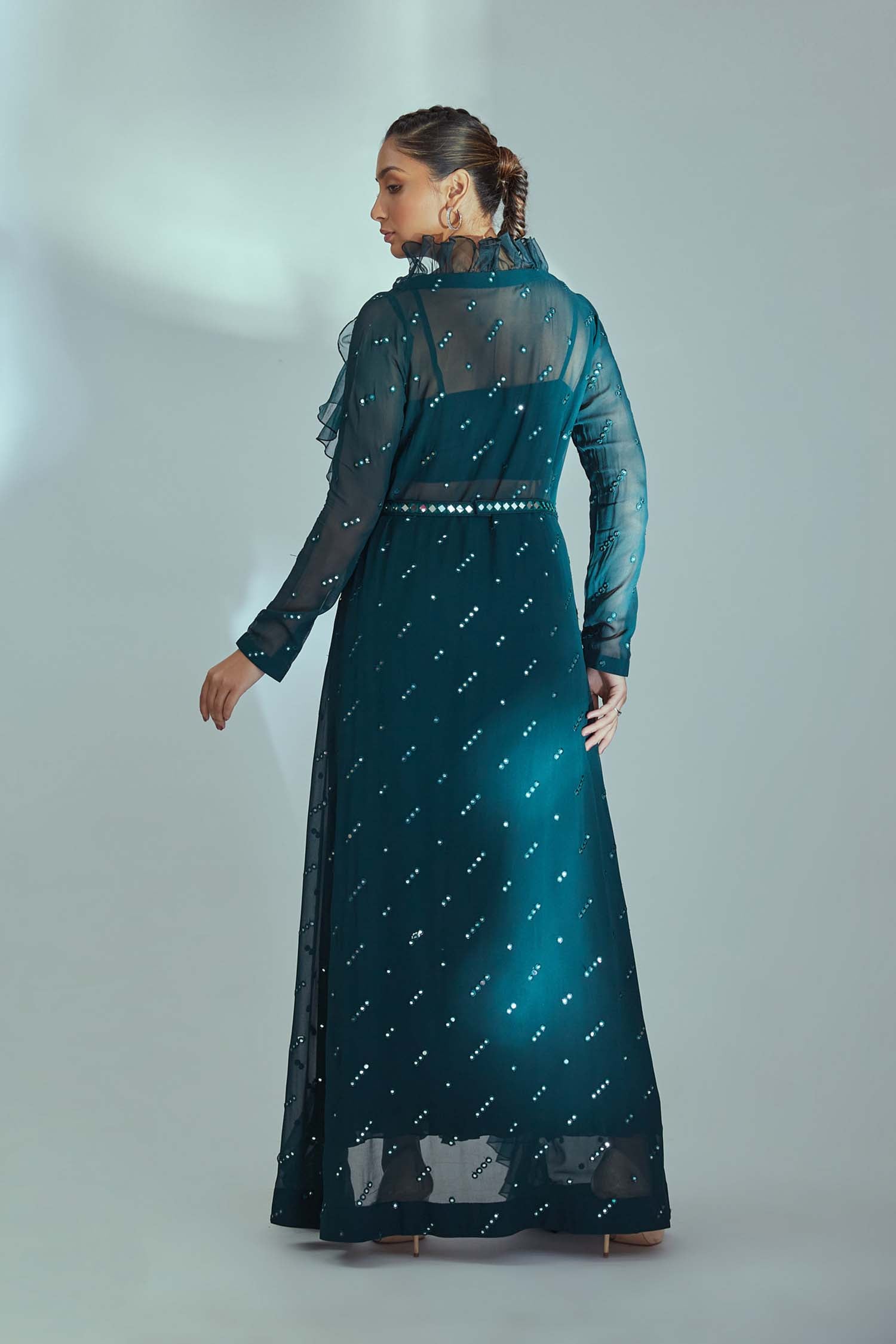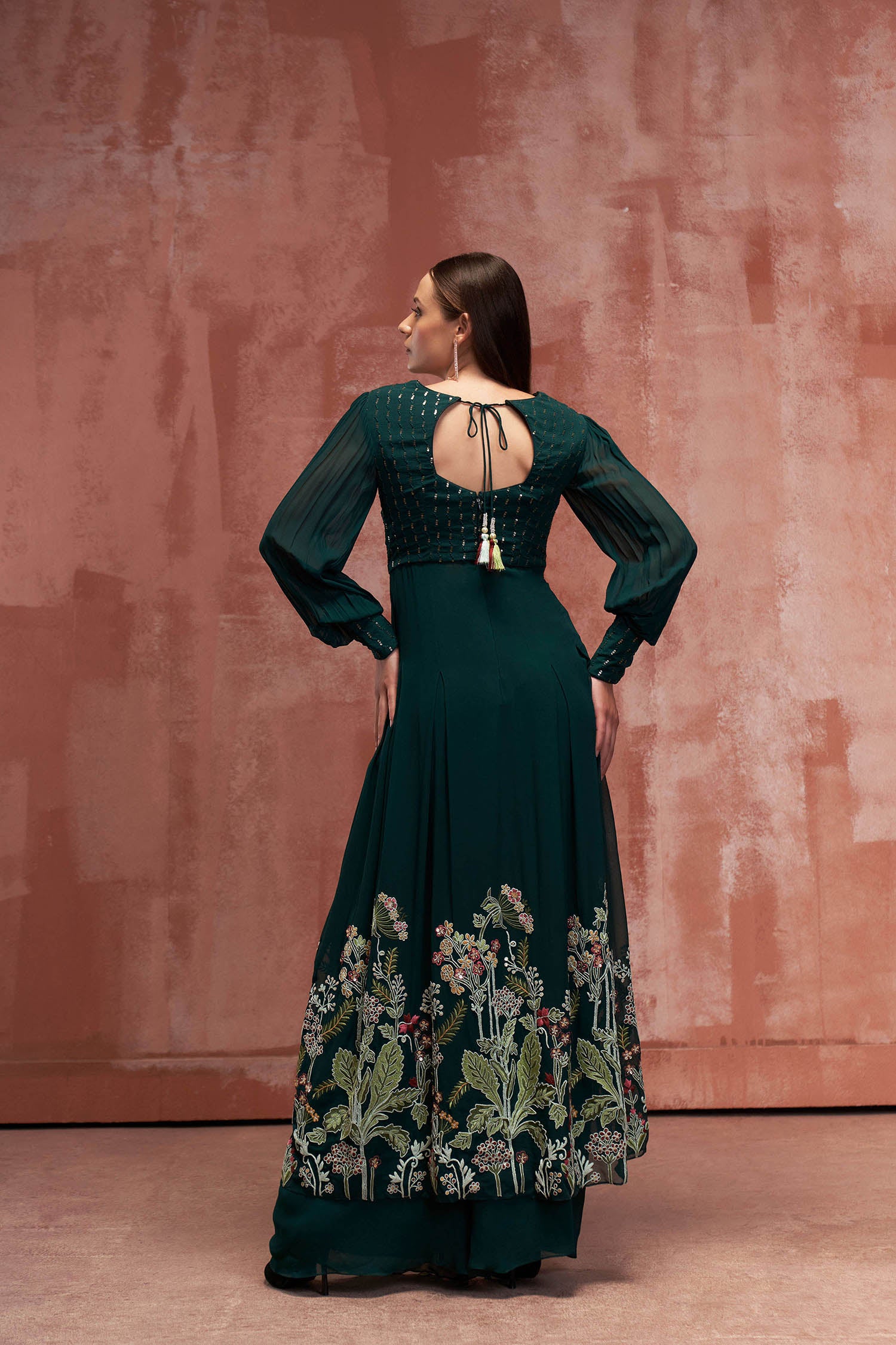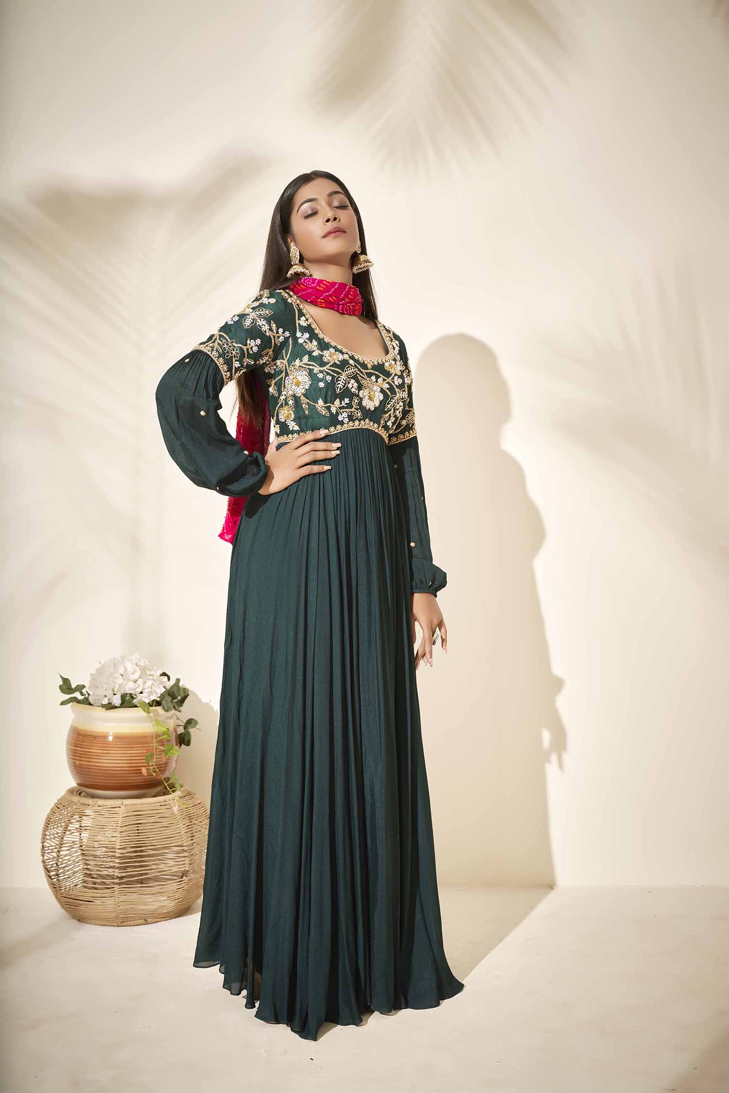 Intricate Sequin Embroidered Green Georgette Anarkali Dress