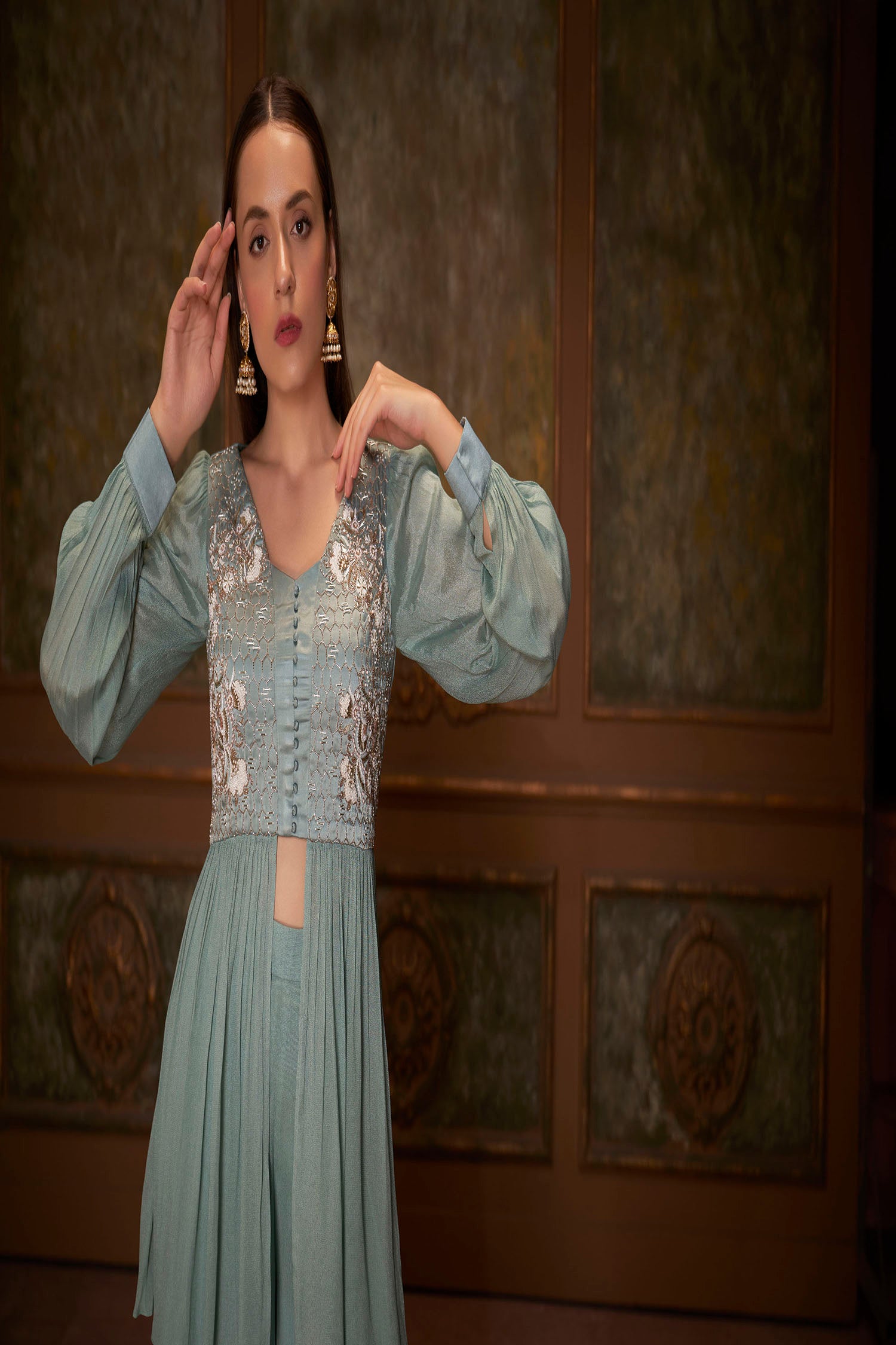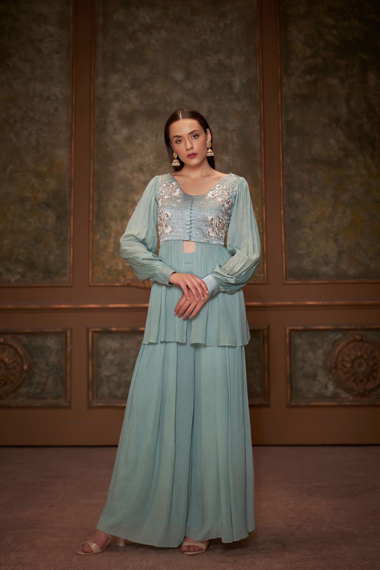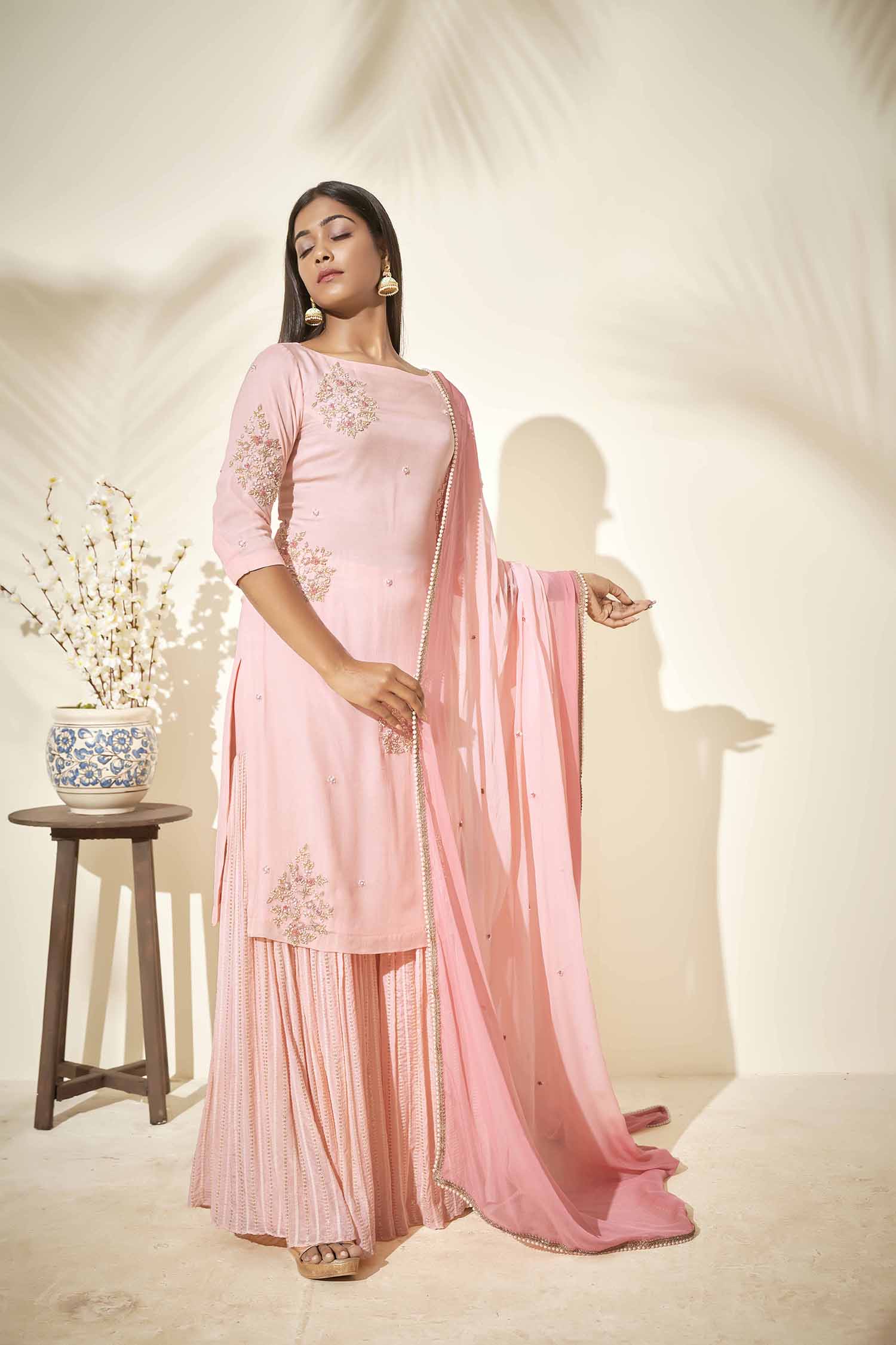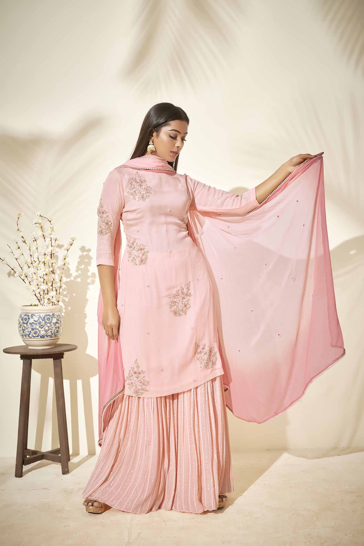 Intricately Handcrafted Anarkali/Sharara Set with Embroidery Details