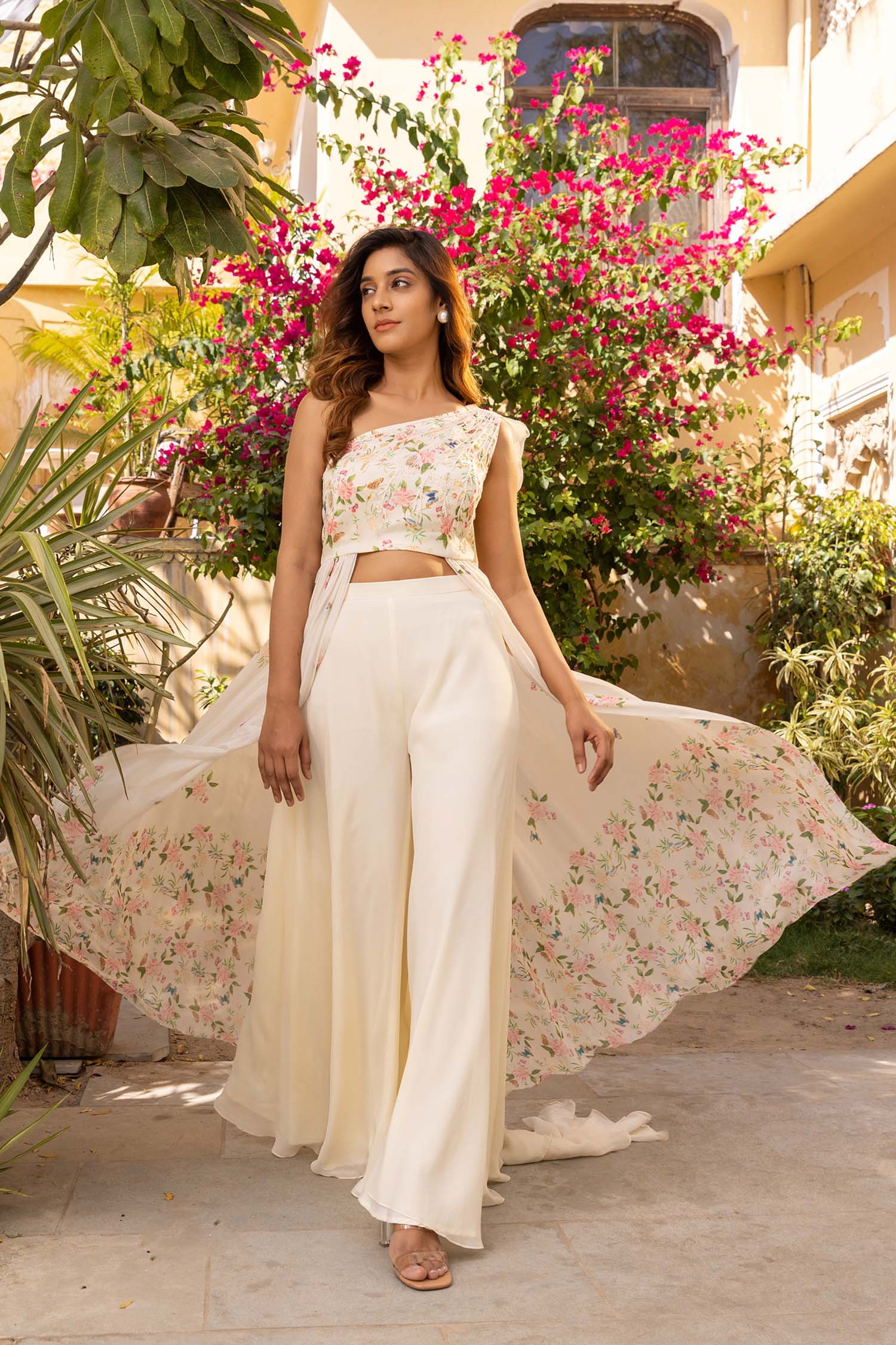 Beautiful Four Piece Set with Printed Pants and Bustier