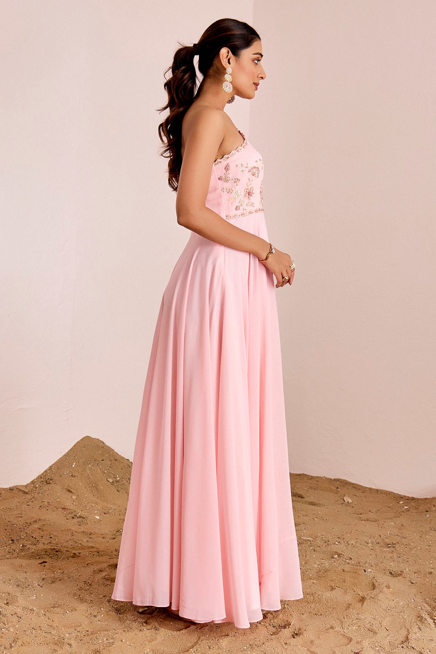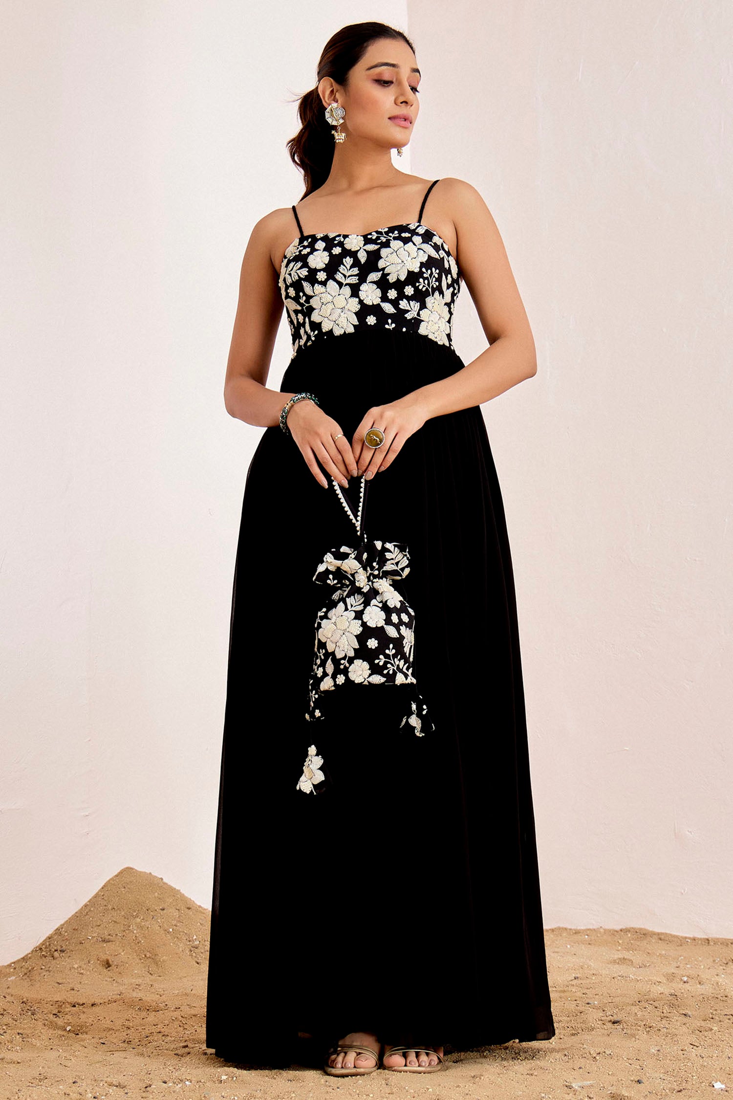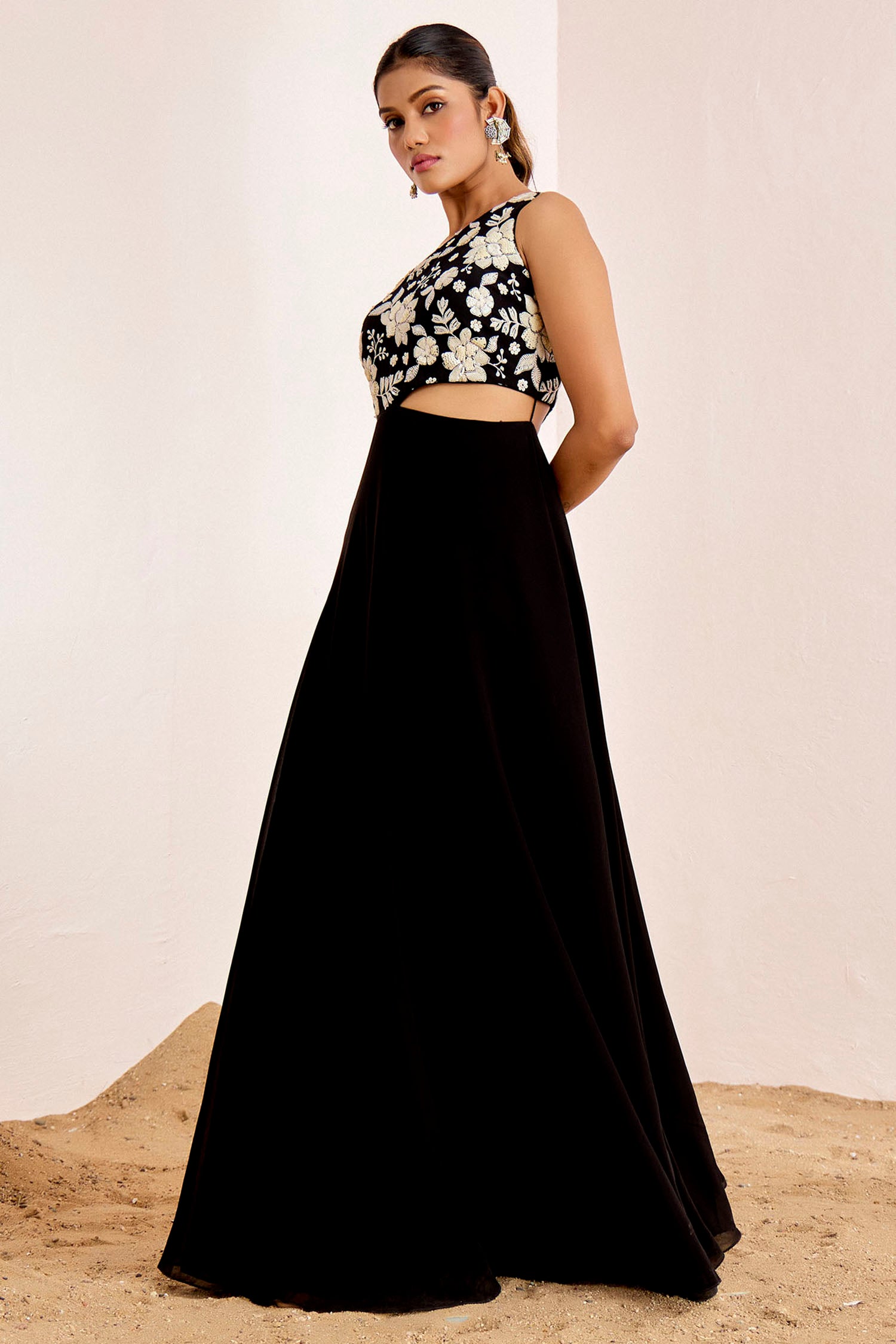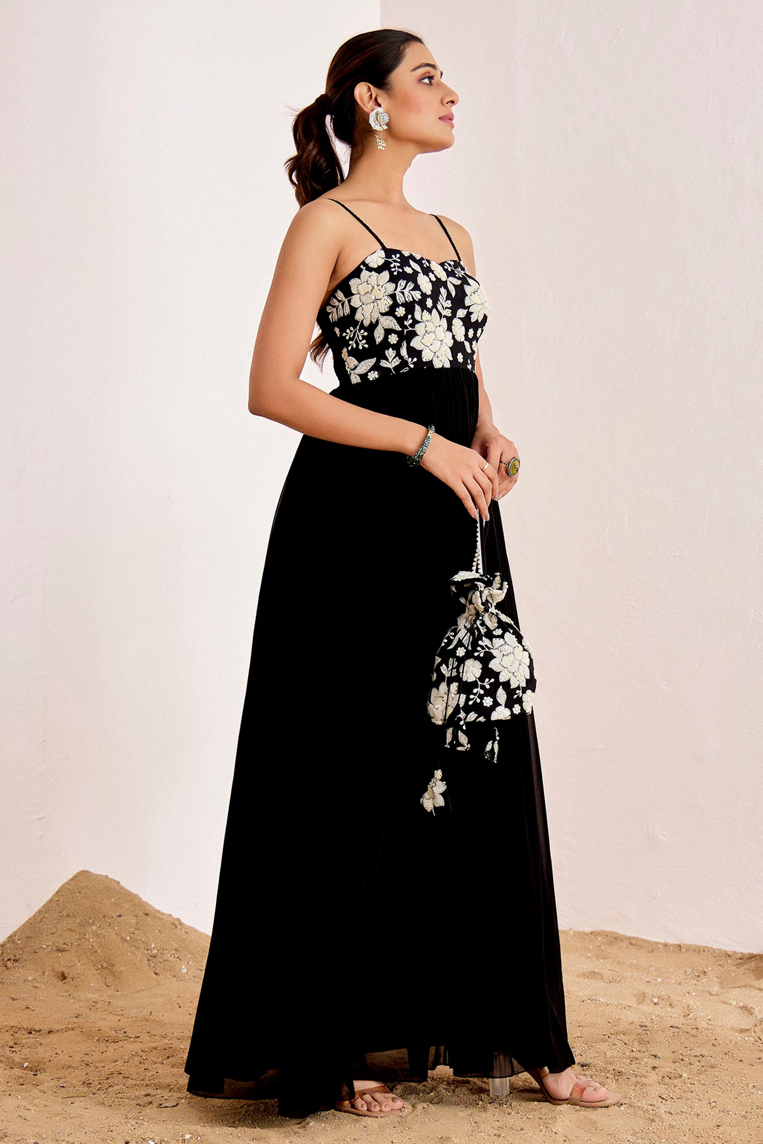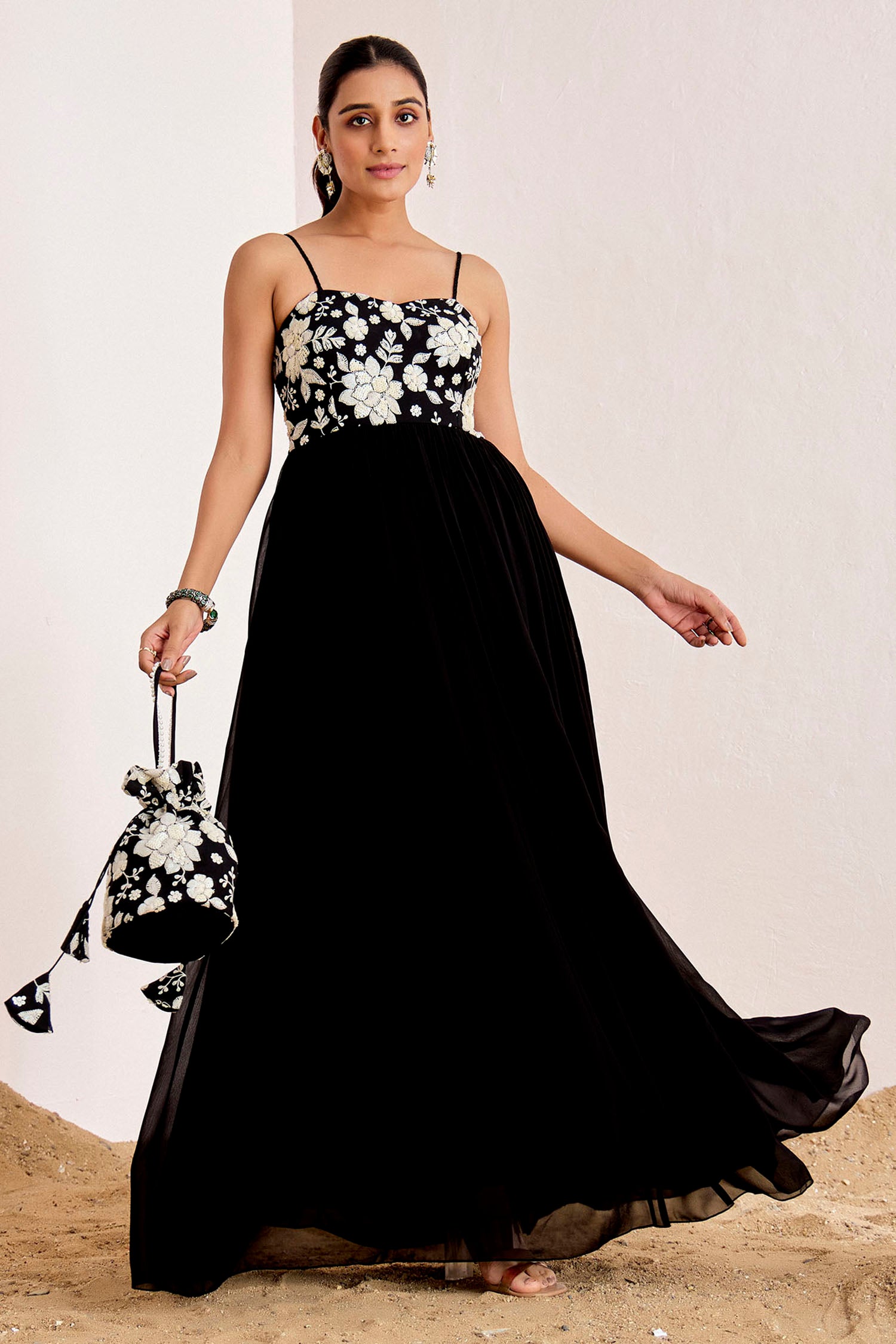 Thread Embroidered Floral Gown with Gathers and Chudi Sleeves