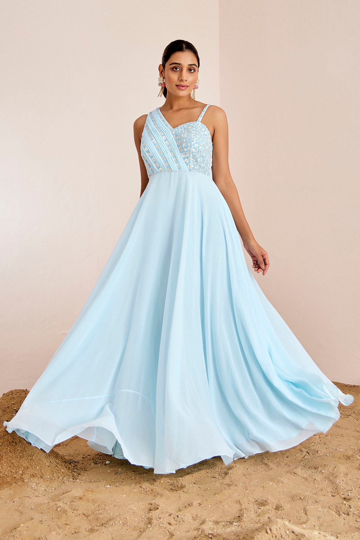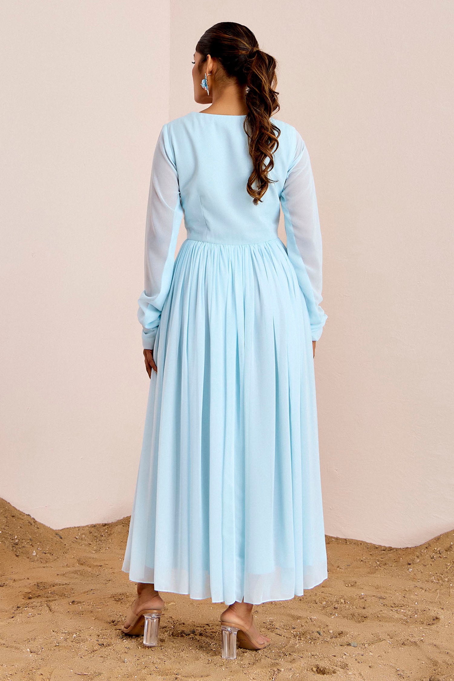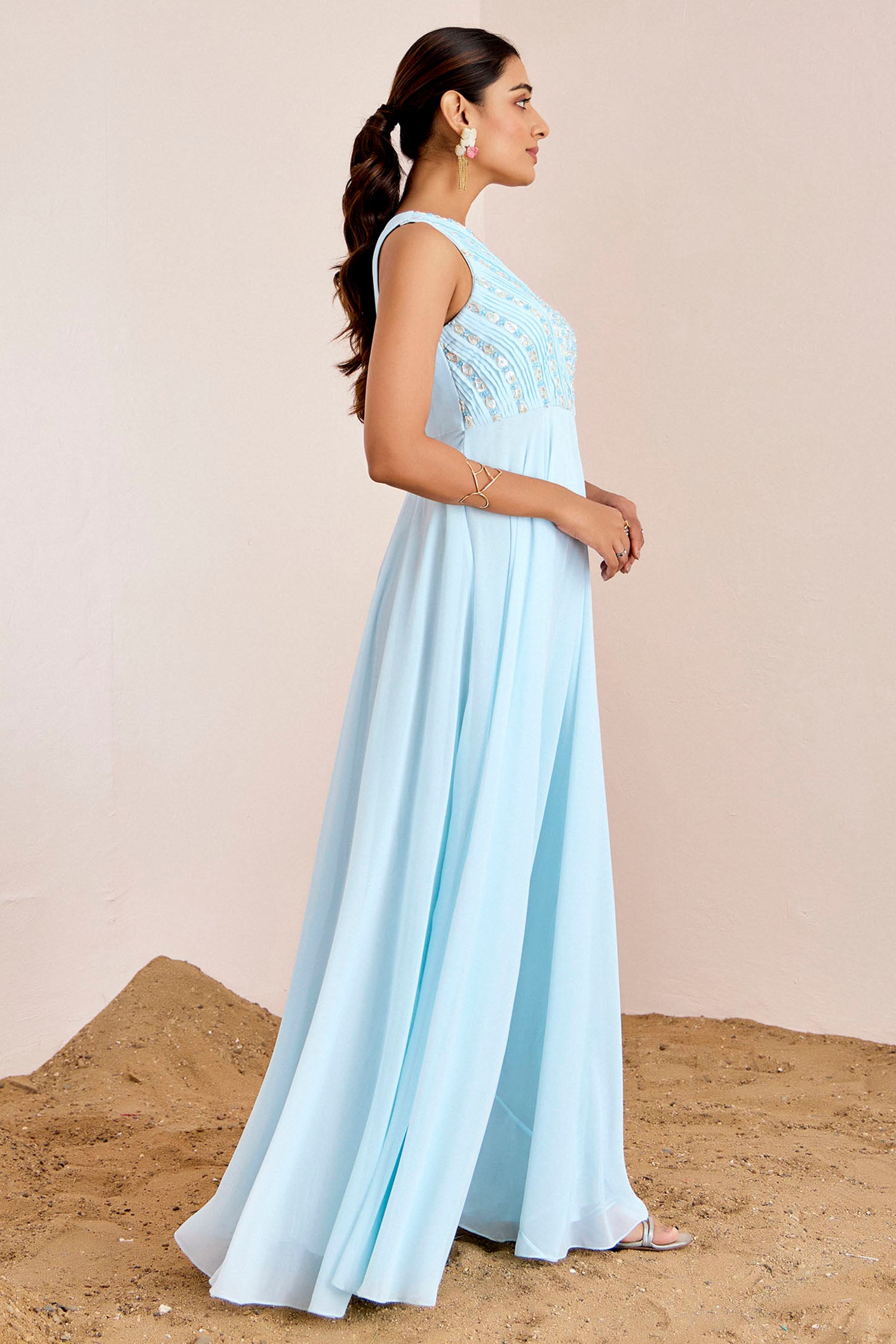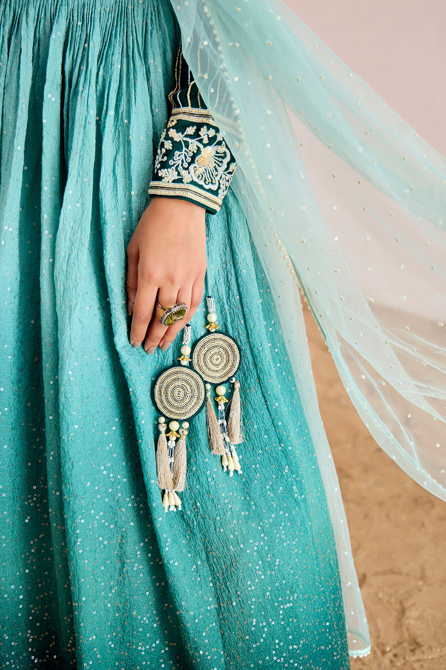 Thread Embroidered Floral Gown with Gathers and Chudi Sleeves