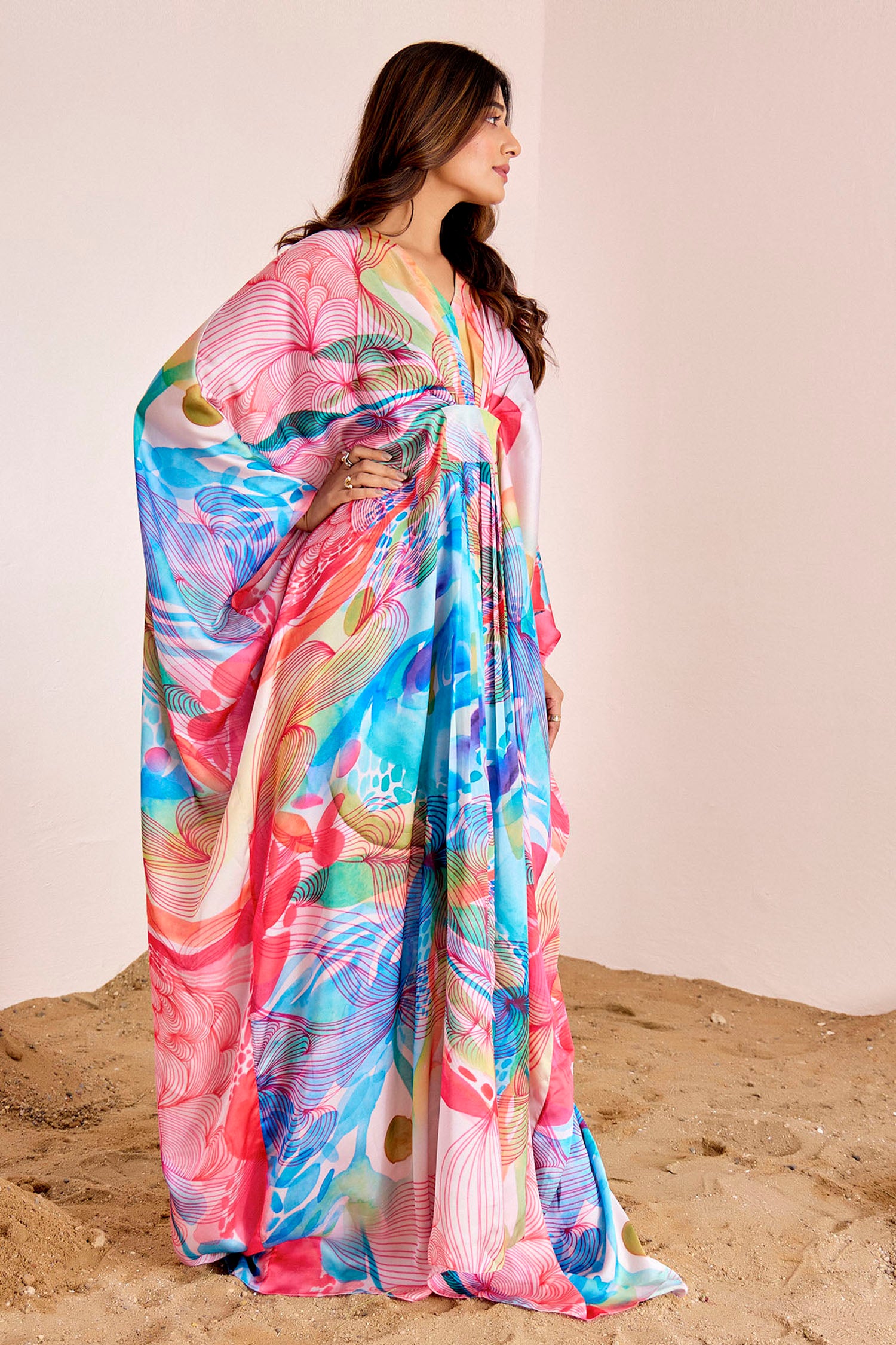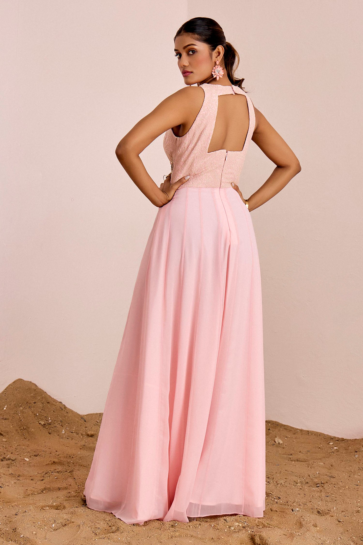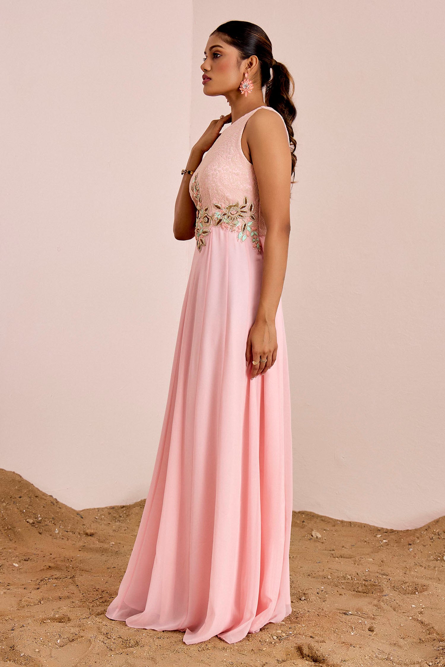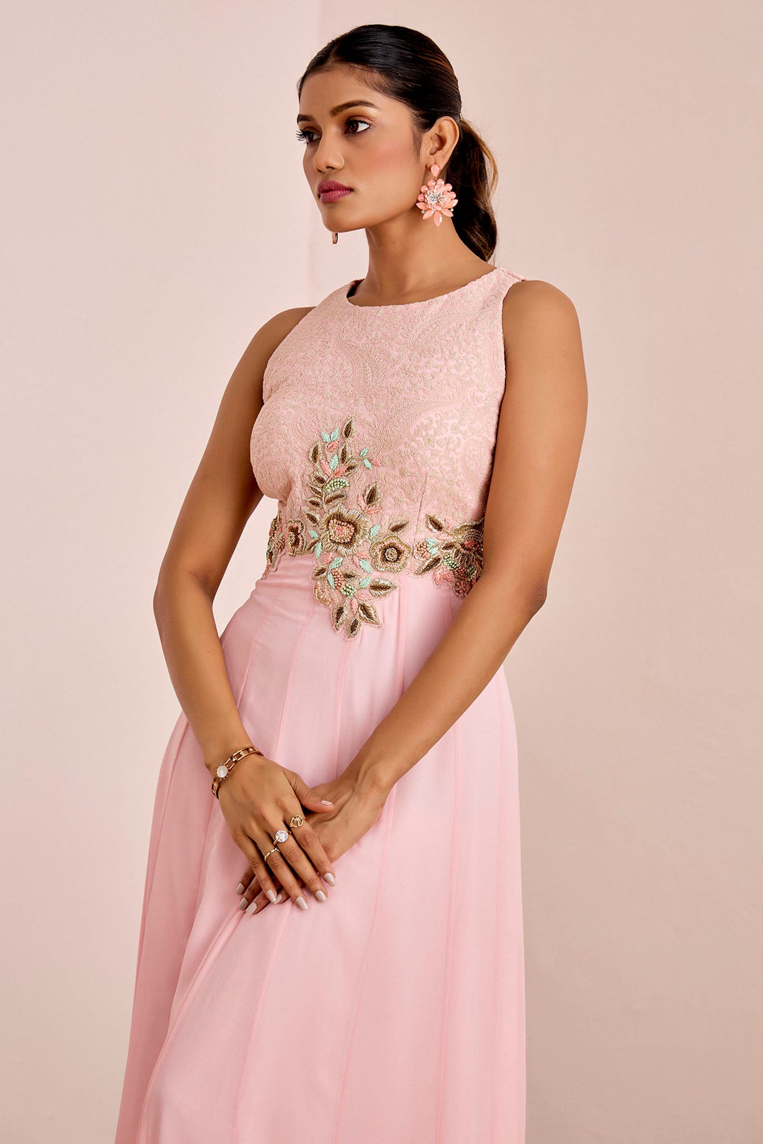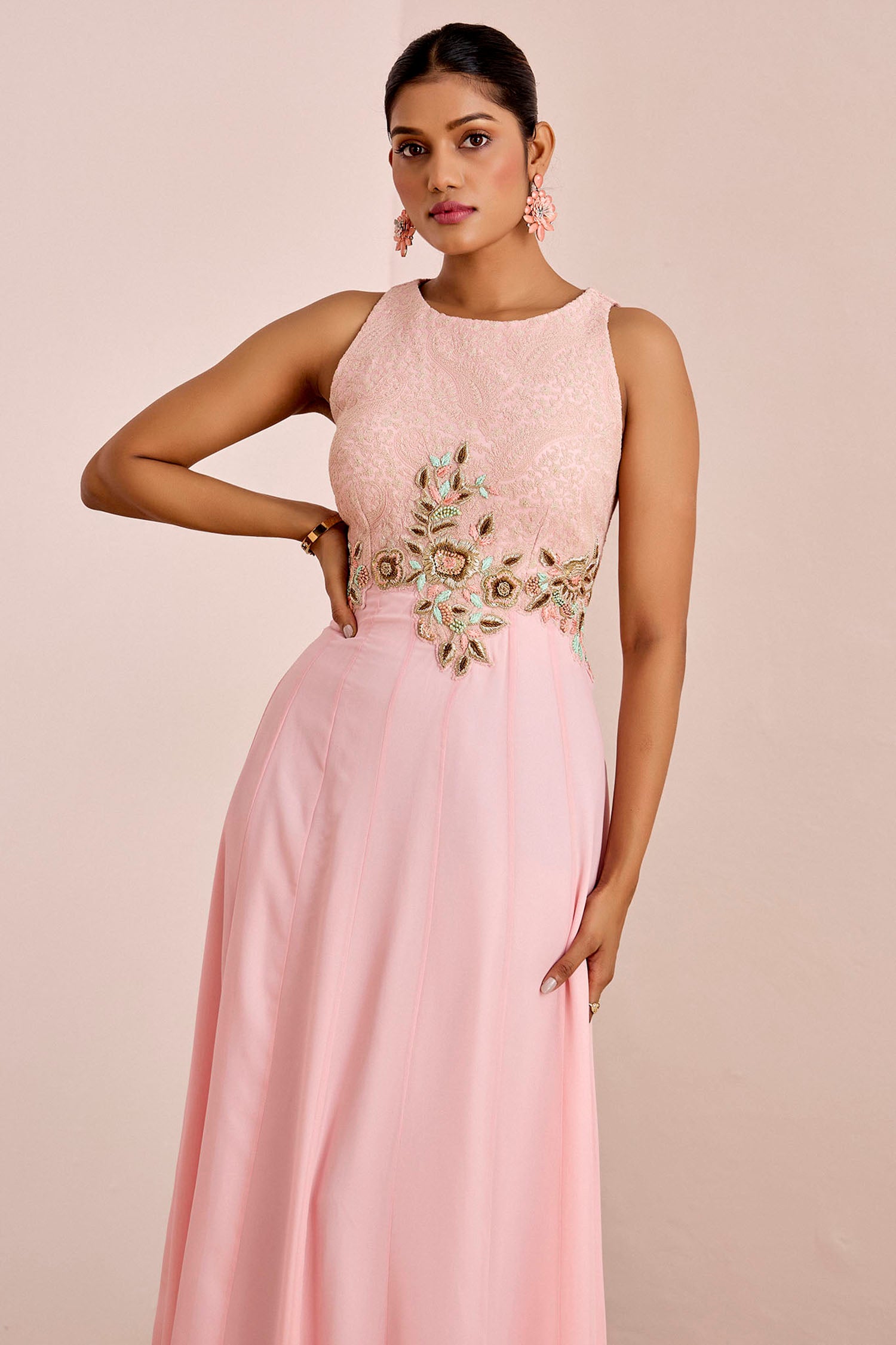 Thread Embroidered Floral Gown with Gathers and Chudi Sleeves