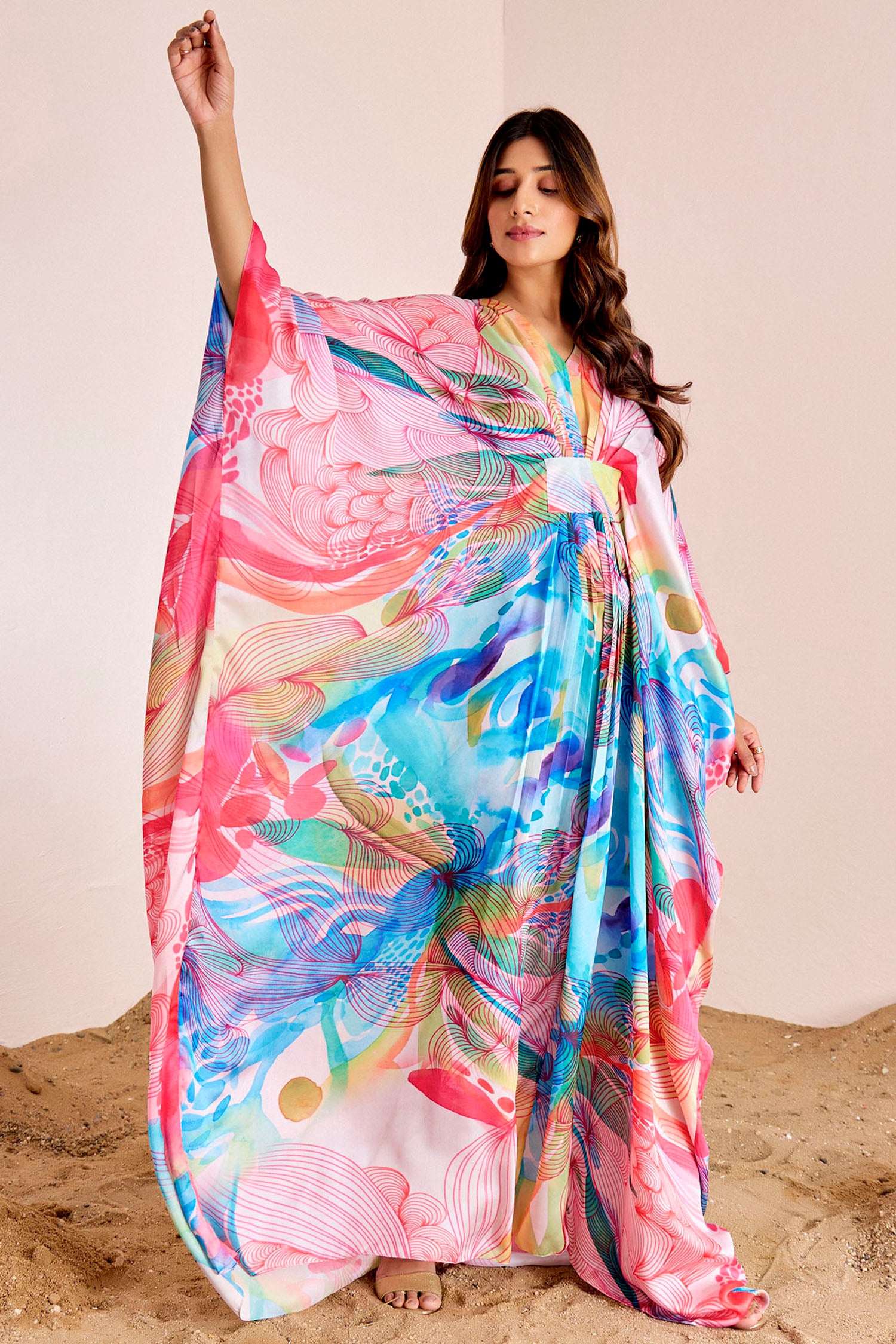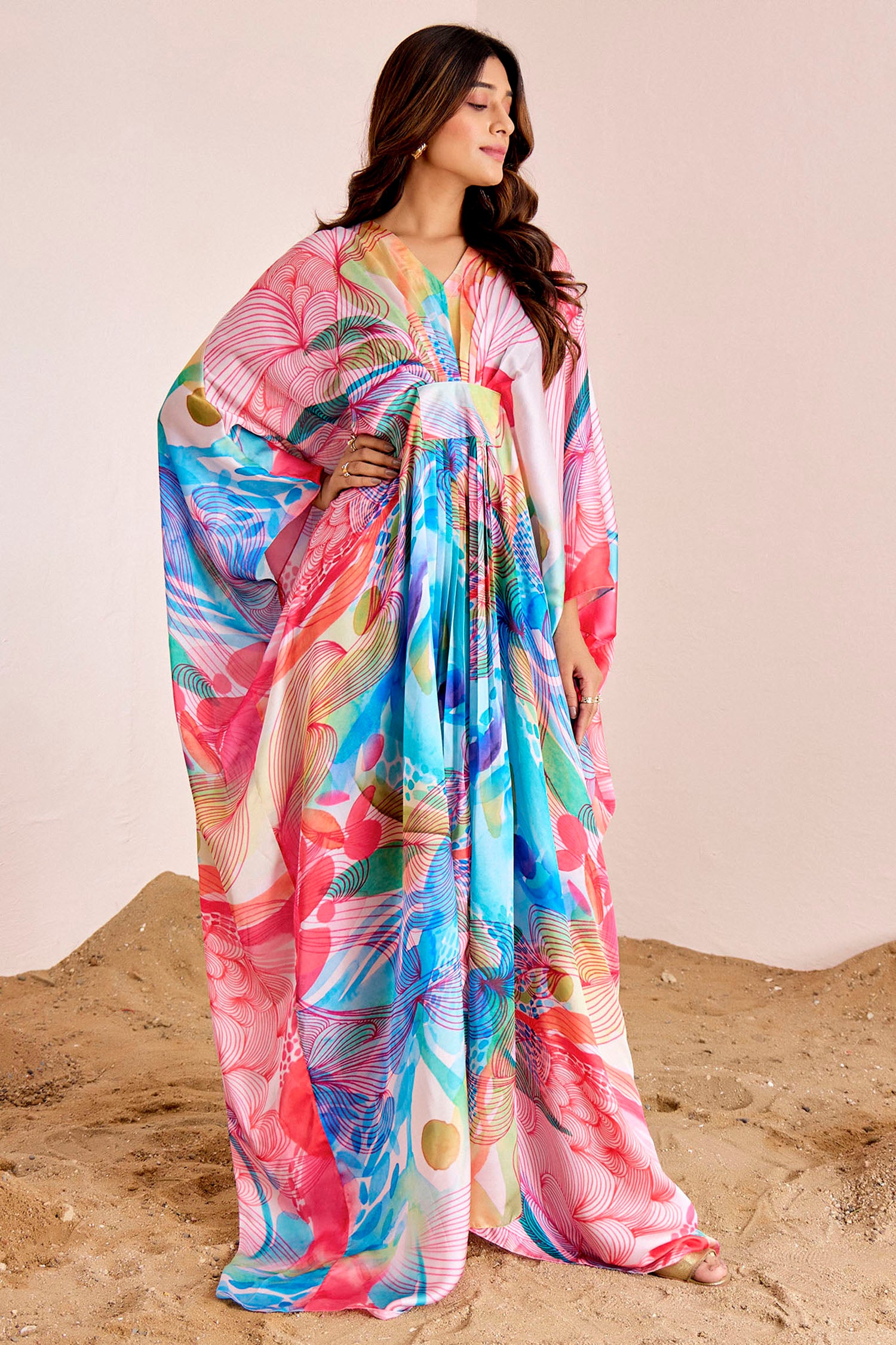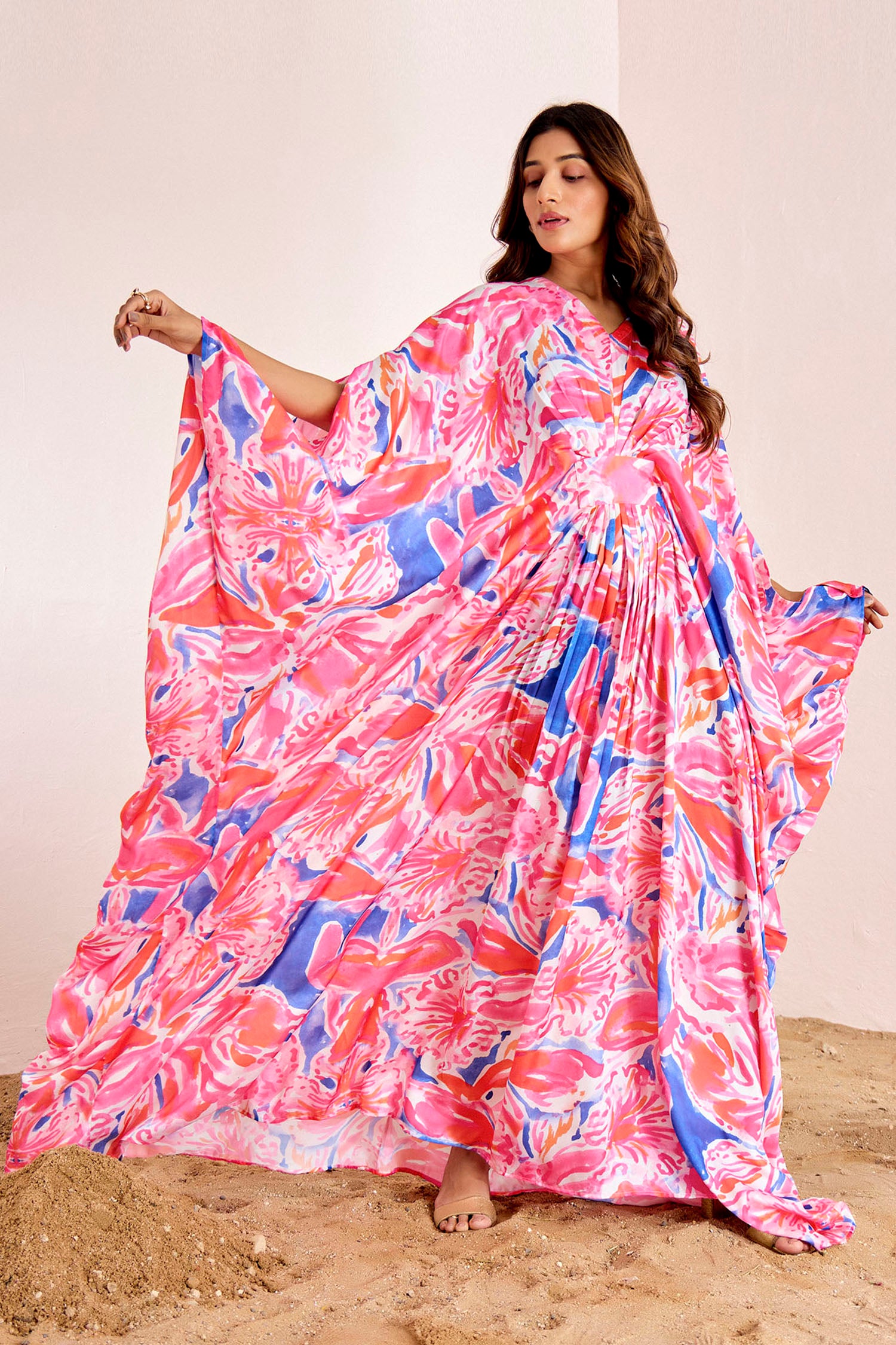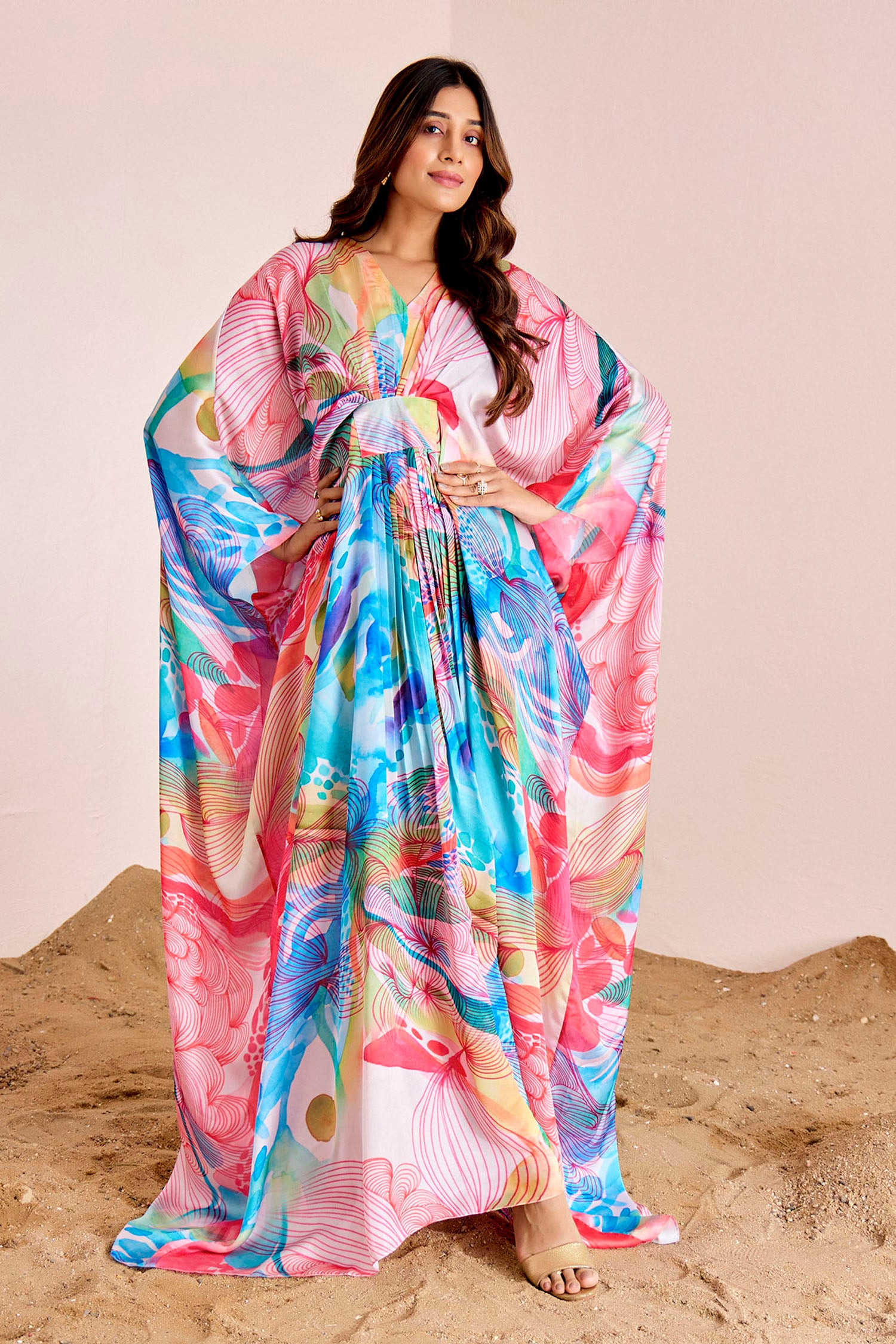 Thread Embroidered Floral Gown with Gathers and Chudi Sleeves